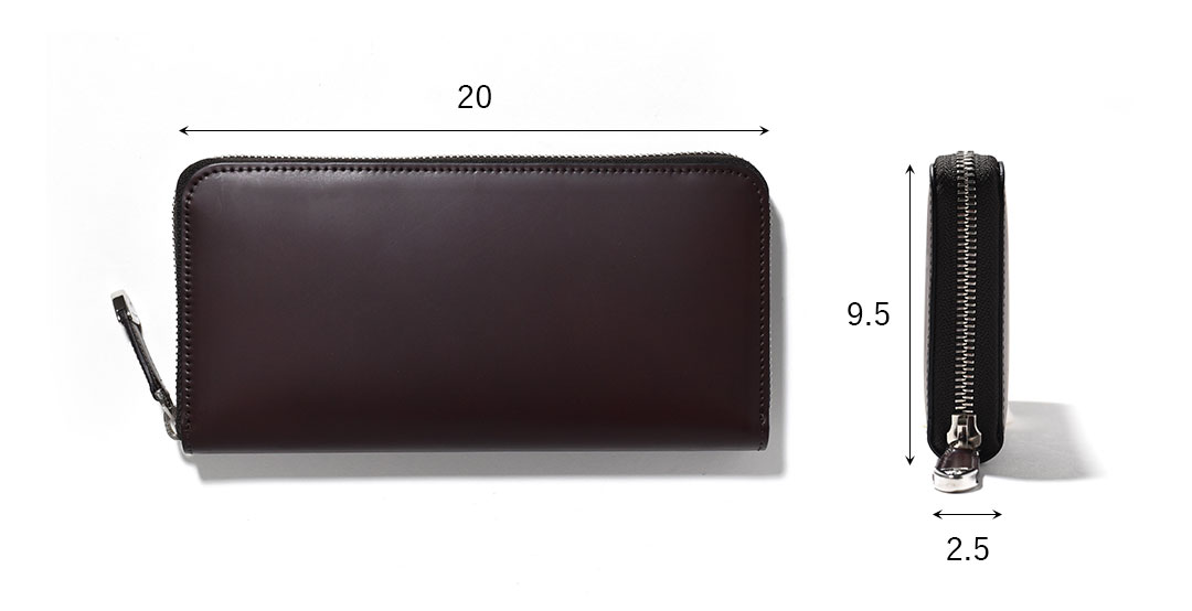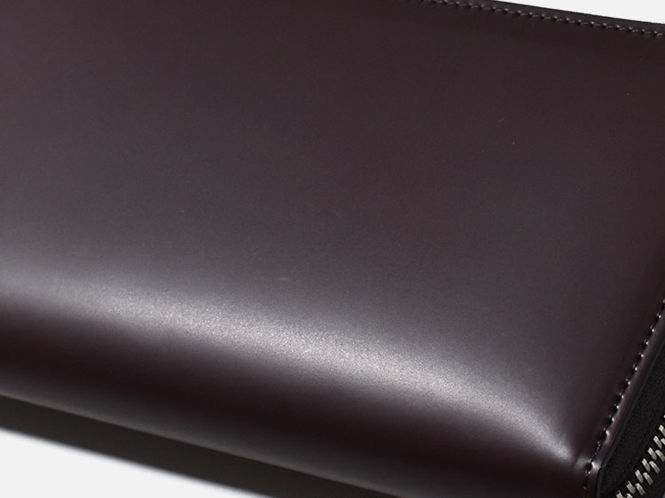 この2つがも合わさり長い年月により、他の革にはない自分だけの深いツヤを生み出します。 それまでの過程とその後の永い革との付き合いを楽しんでいただけるコードバン素材のラウンドファスナー長財布です。 |