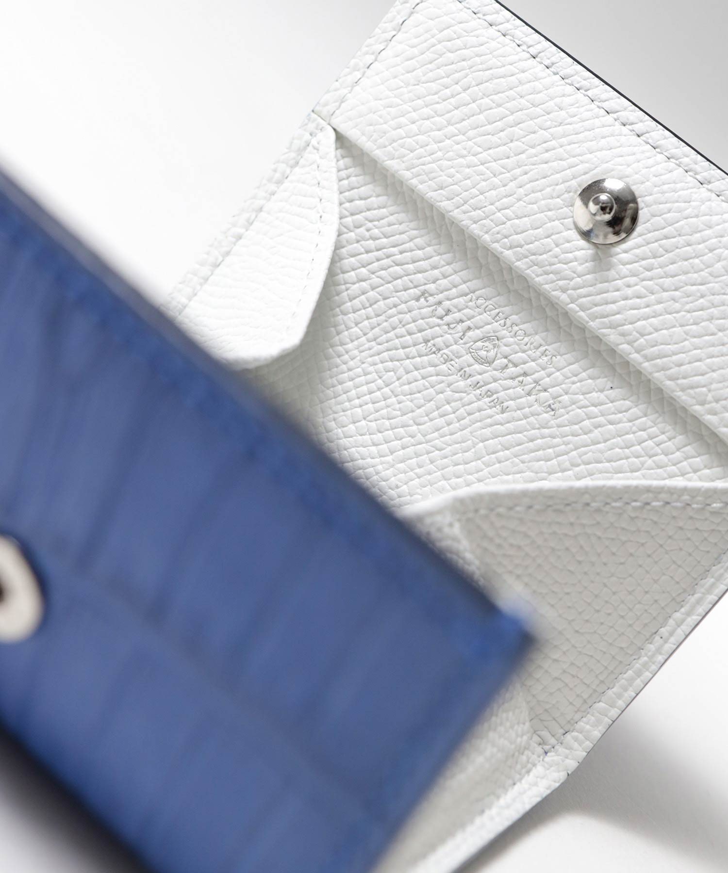硬貨の確認が容易なボックス型タイプの高級感ある小銭入れです。内革のワープロラックスには、箔押しのブランドロゴが施されています。