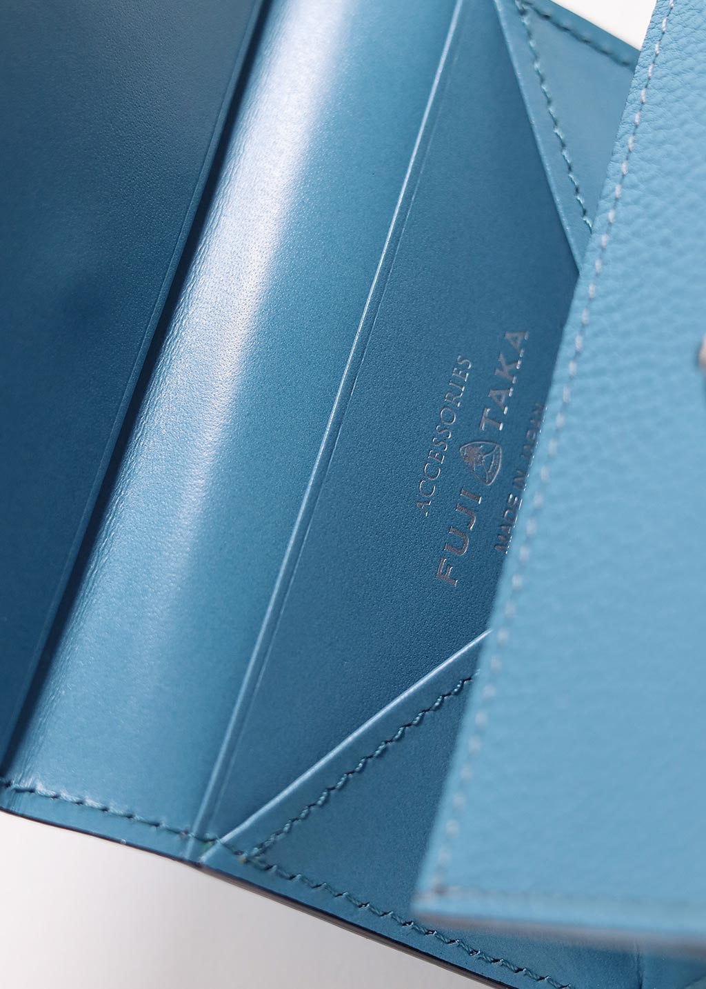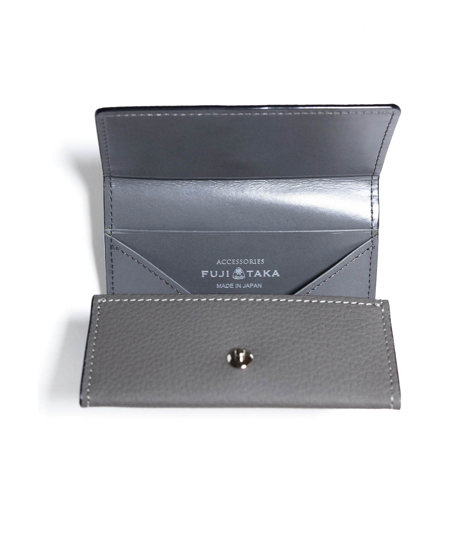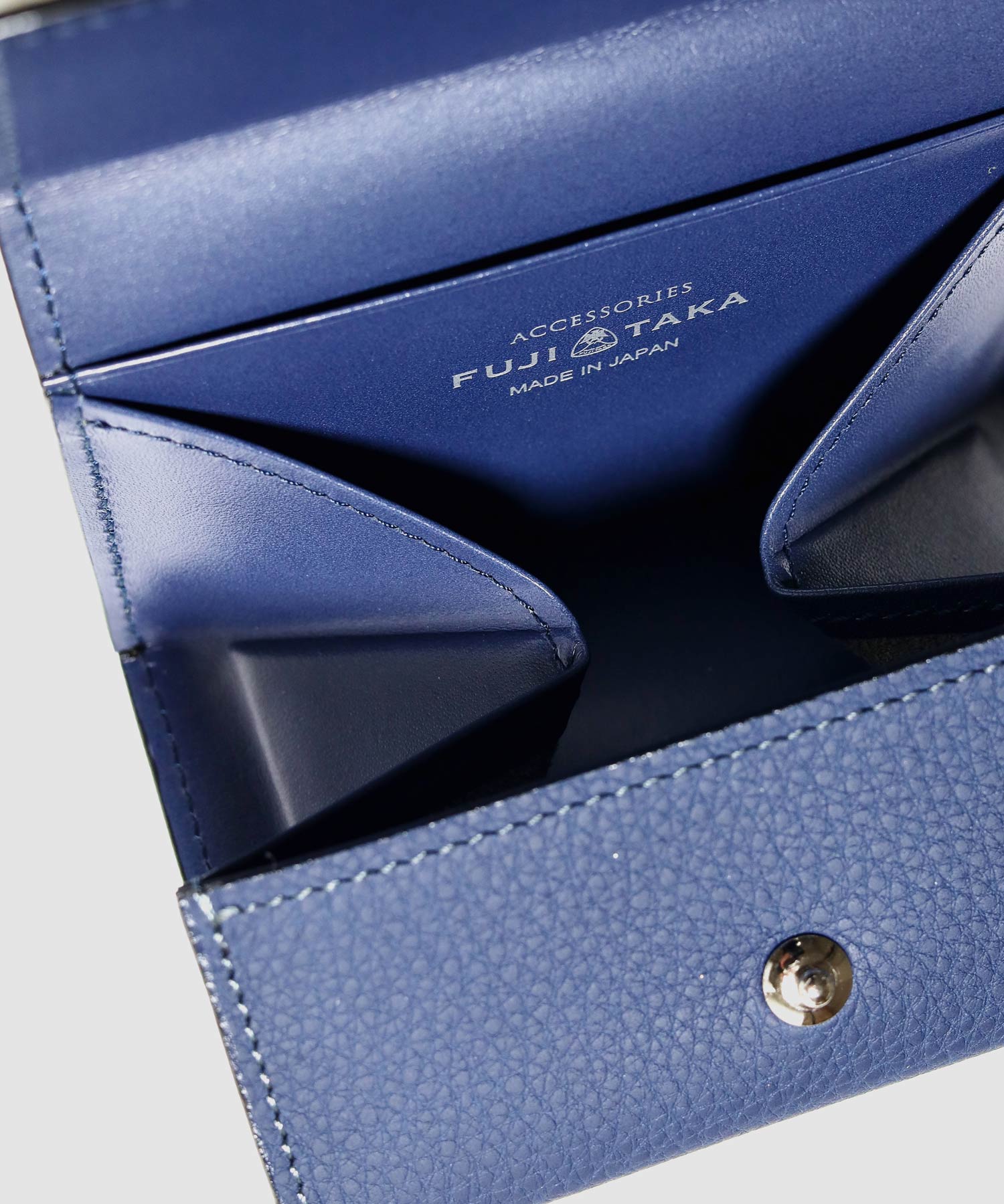 フランス、デュプイ社のカーフレザーを使用したフジタカアクセサリーズの小銭入れ。内装には国産スムース牛革を国内生産ならではの特殊なベタ貼り仕様で仕上げ、コバ処理は切目にし、薄くてすっきりとしたシャープでミニマルなイメージに仕上げました。