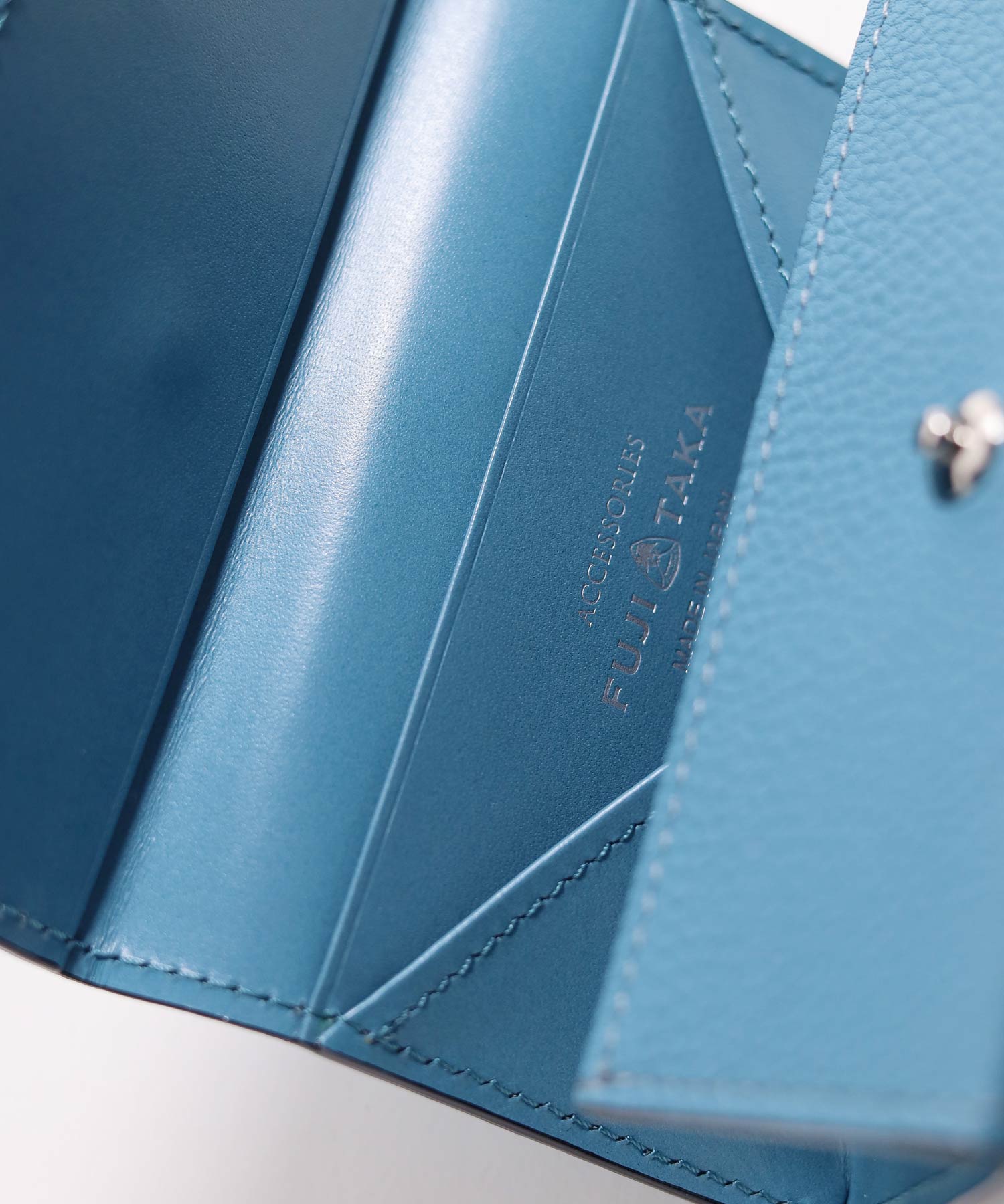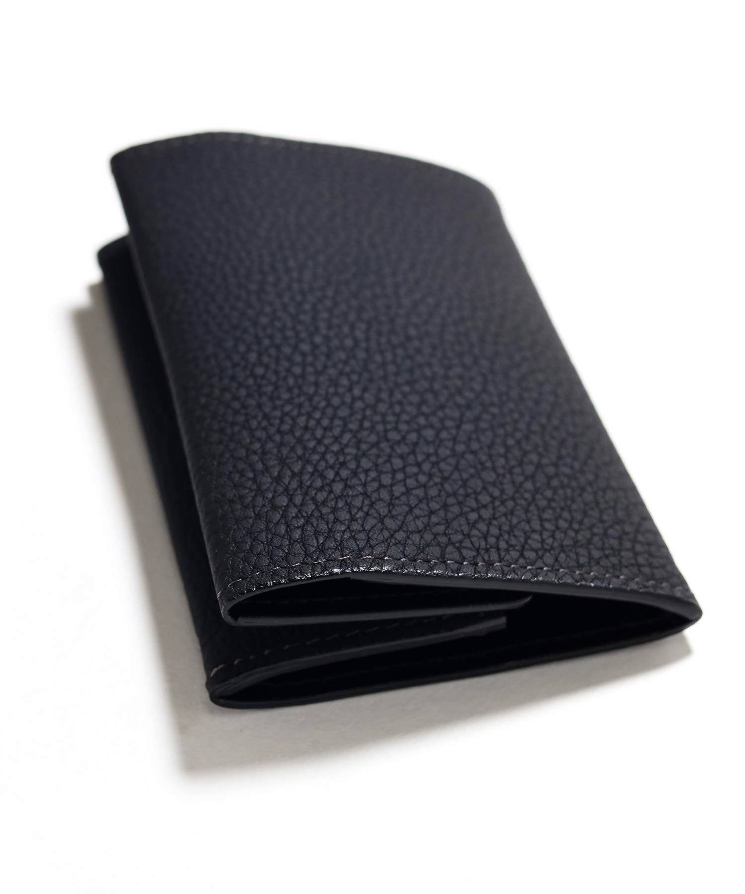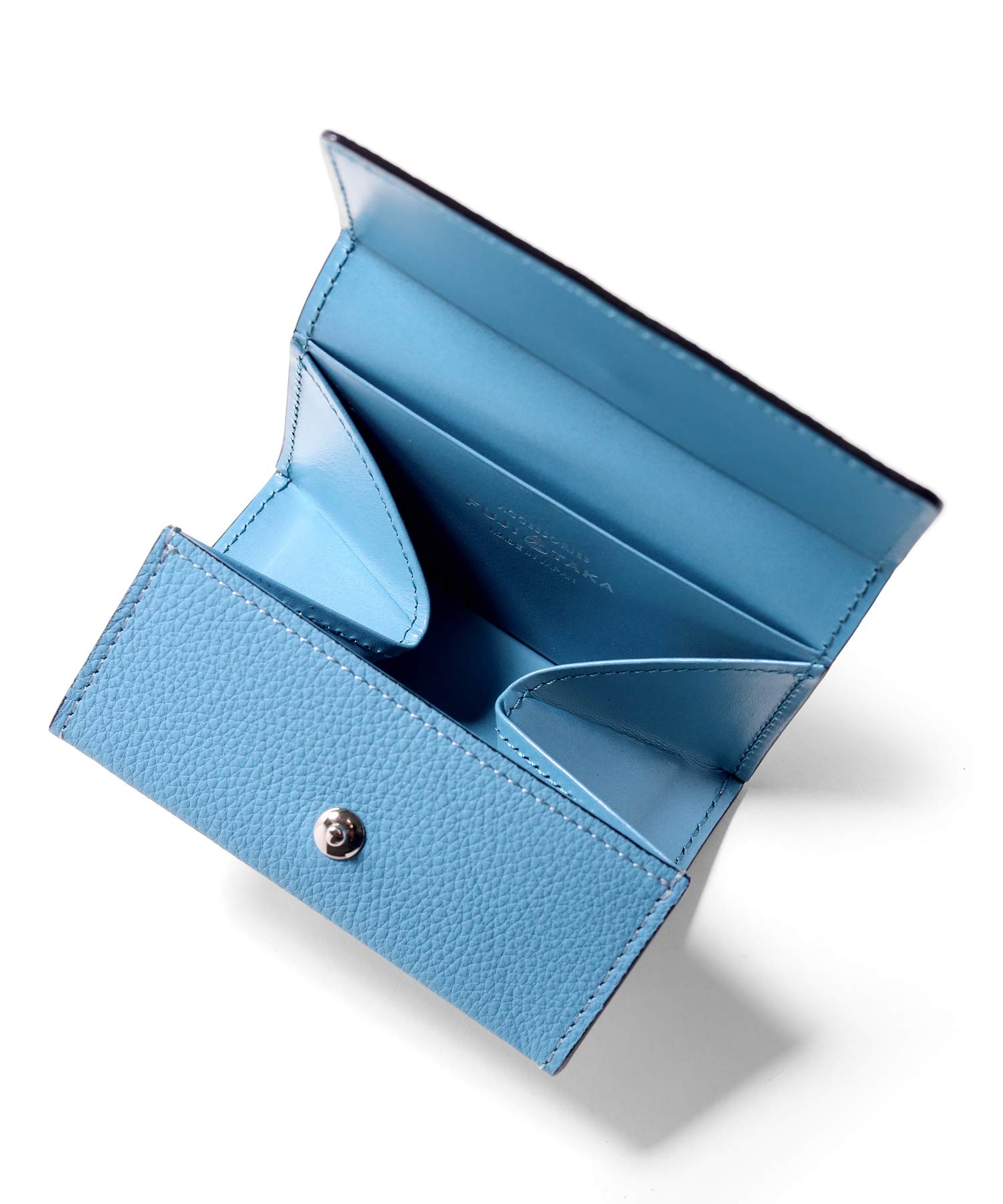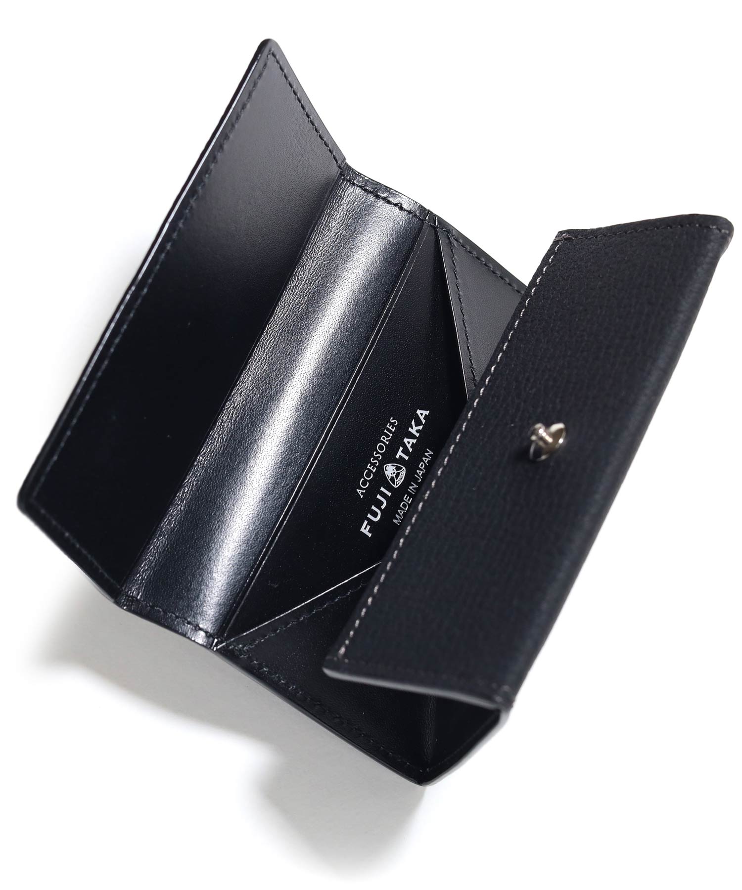 フランス、デュプイ社のカーフレザーを使用したフジタカアクセサリーズの小銭入れ。内装には国産スムース牛革を国内生産ならではの特殊なベタ貼り仕様で仕上げ、コバ処理は切目にし、薄くてすっきりとしたシャープでミニマルなイメージに仕上げました。