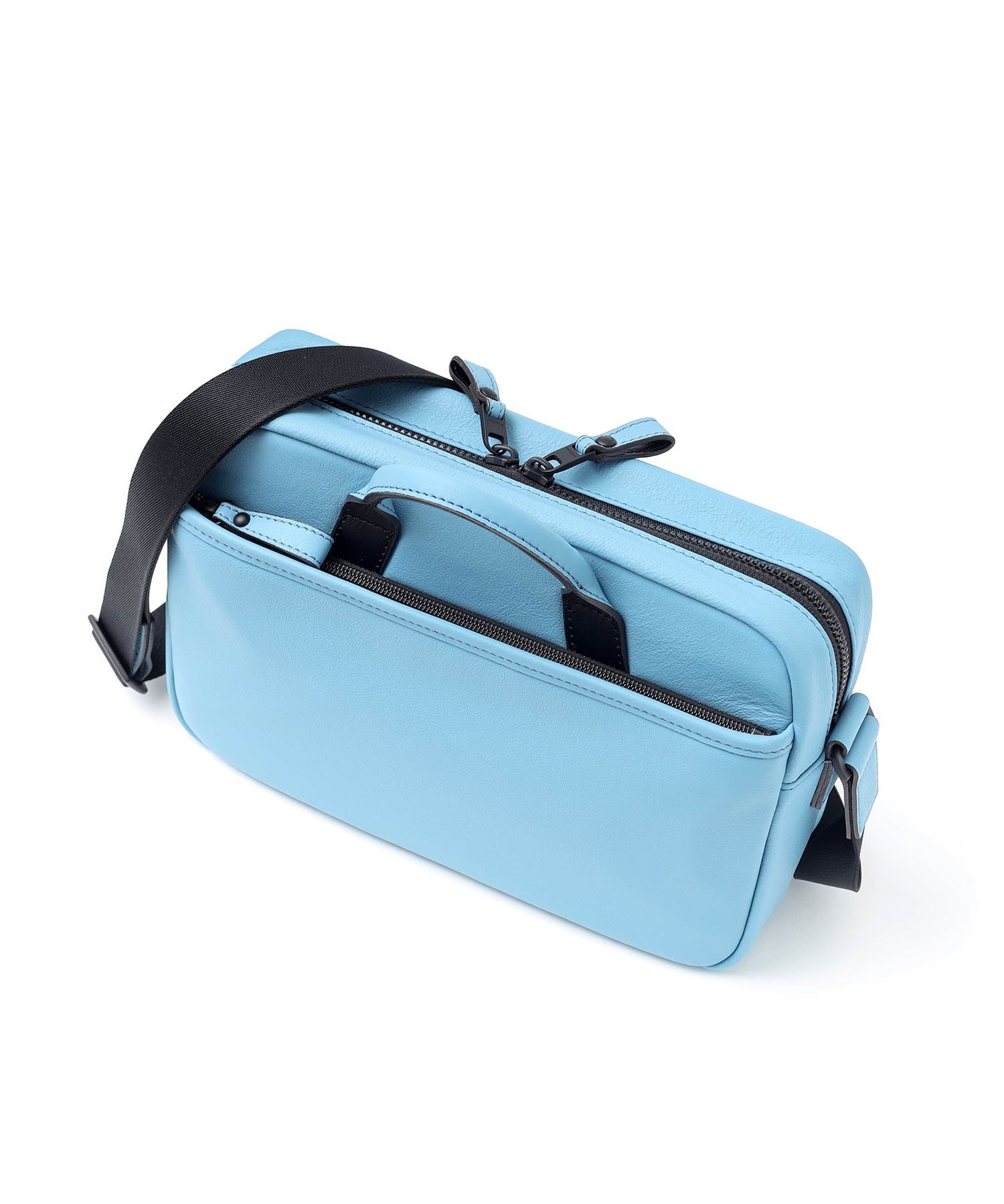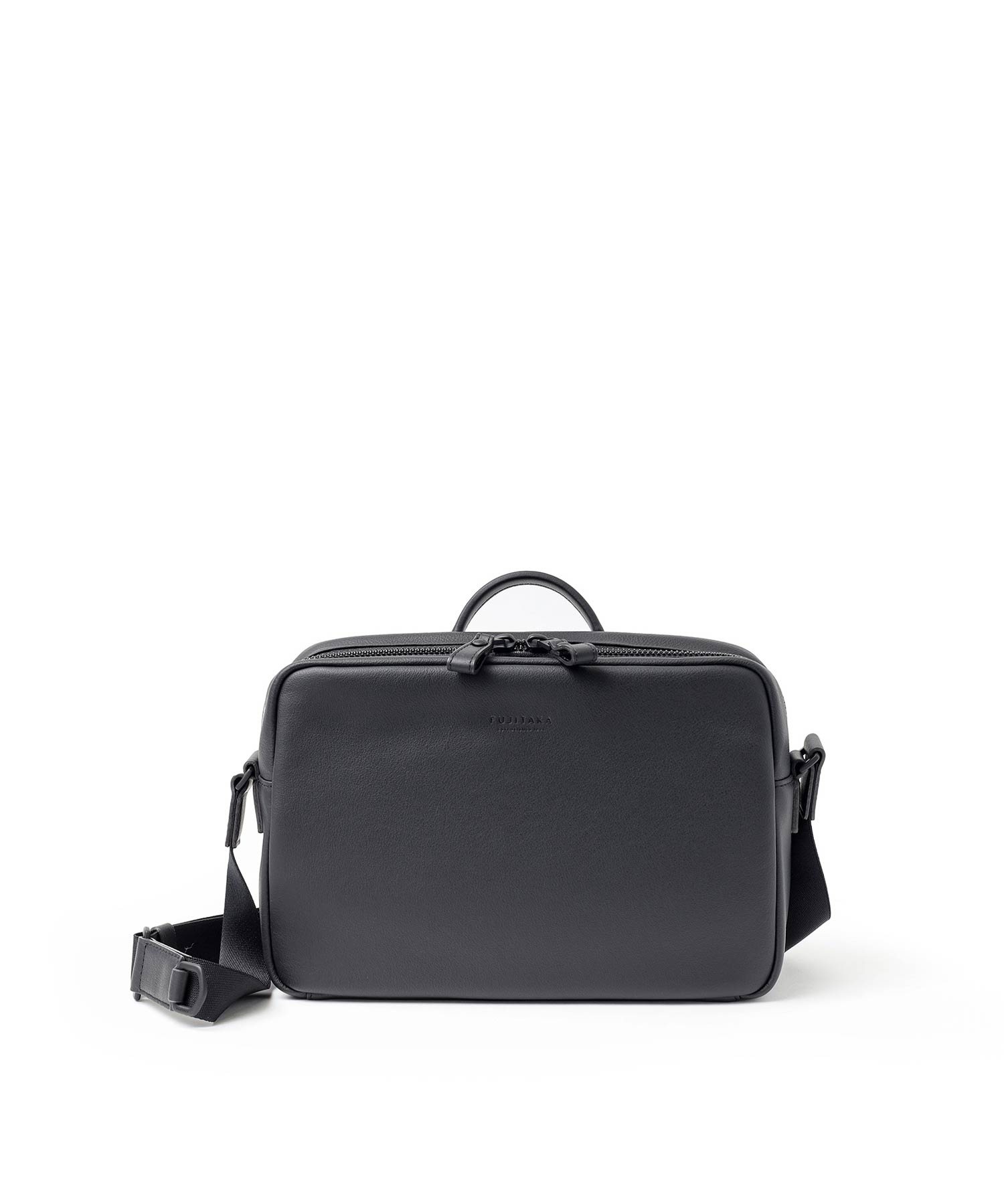 厳選されたヨーロッパ原皮に上品な肌目が美しいLWG ゴールドランク認定のイタリア高級スムースレザーを贅沢に使用したFUJITAKA LOCUSシリーズのハンドル付きのB5サイズのショルダーバッグ。ショルダーベルトのDカン金具にはイヤホンポーチなどの取り付けにお使いいただけます。