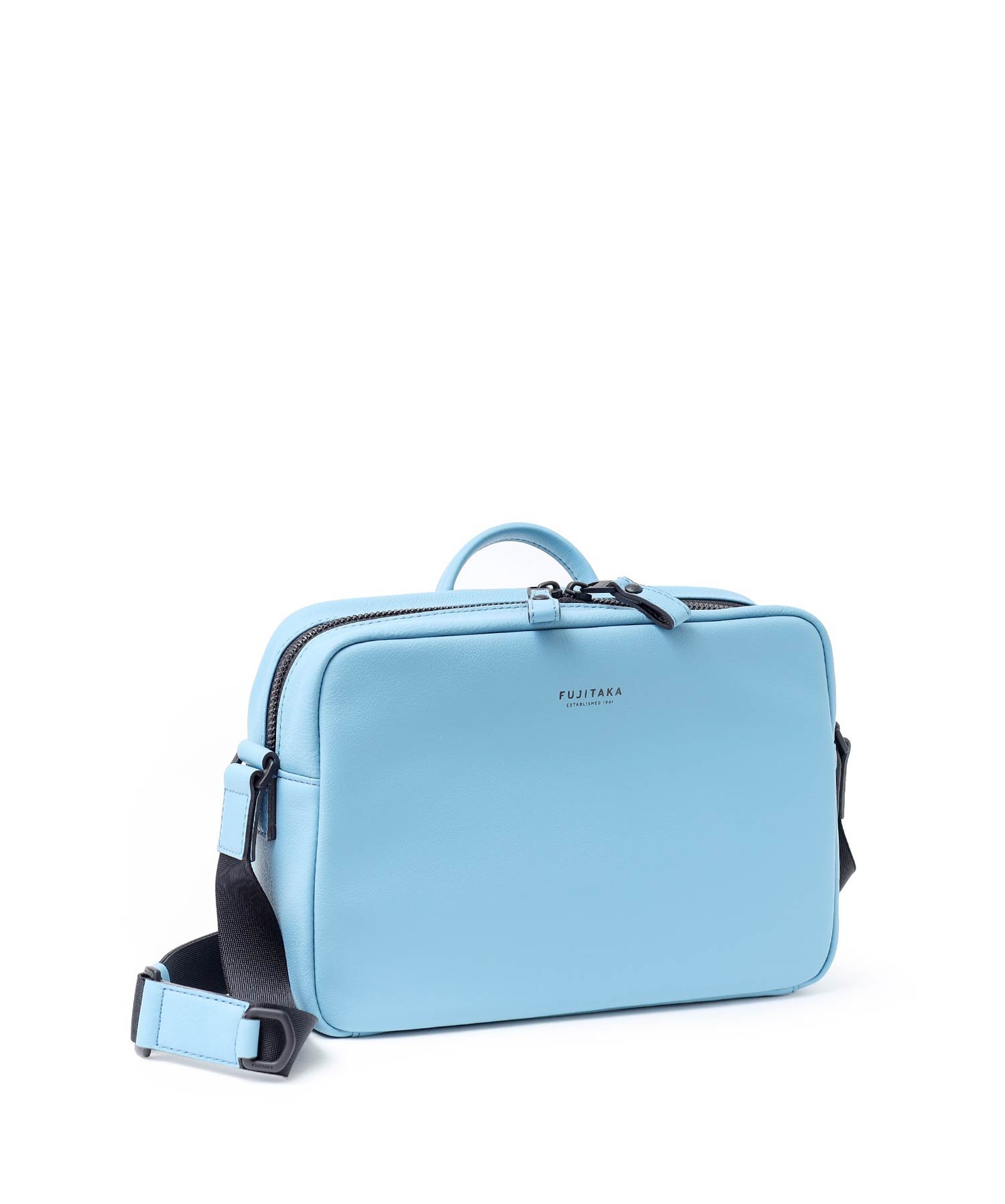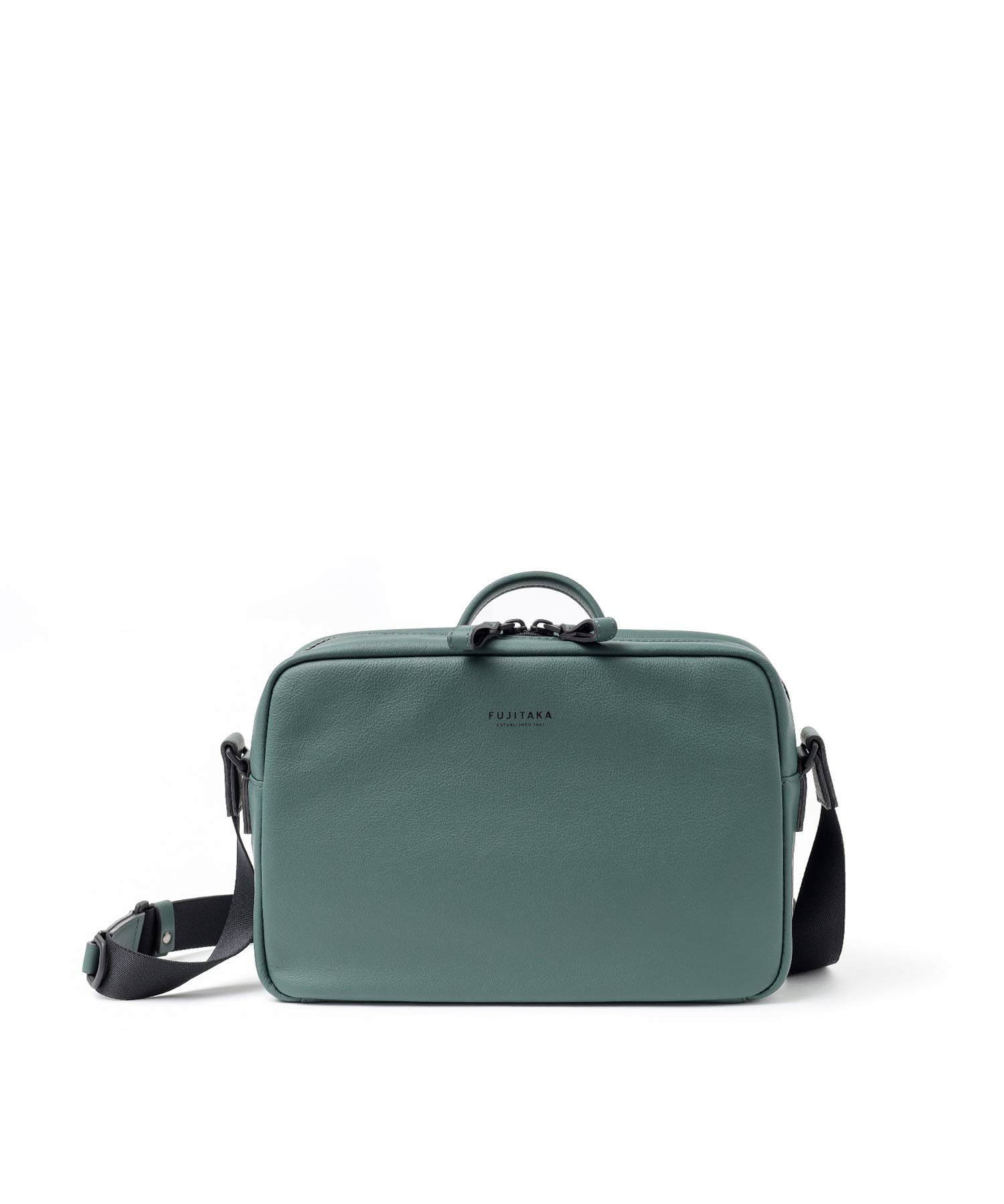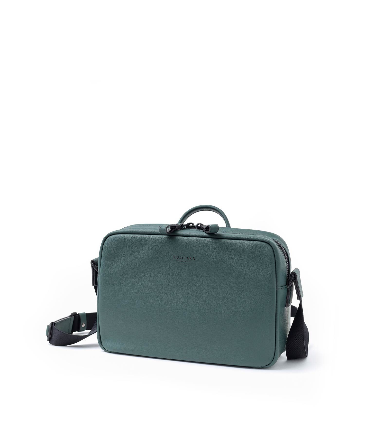 厳選されたヨーロッパ原皮に上品な肌目が美しいLWG ゴールドランク認定のイタリア高級スムースレザーを贅沢に使用したFUJITAKA LOCUSシリーズのハンドル付きのB5サイズのショルダーバッグ。家具やプライベートジェットの内装に使用される素材は、一般ファッション製品の革検査基準よりも厳しい検査基準をクリアした物性の高い本革です。マット仕上げの柔らかい上品な手触りが印象的で、スムースでありながら傷に強く、高スペックな本革です。