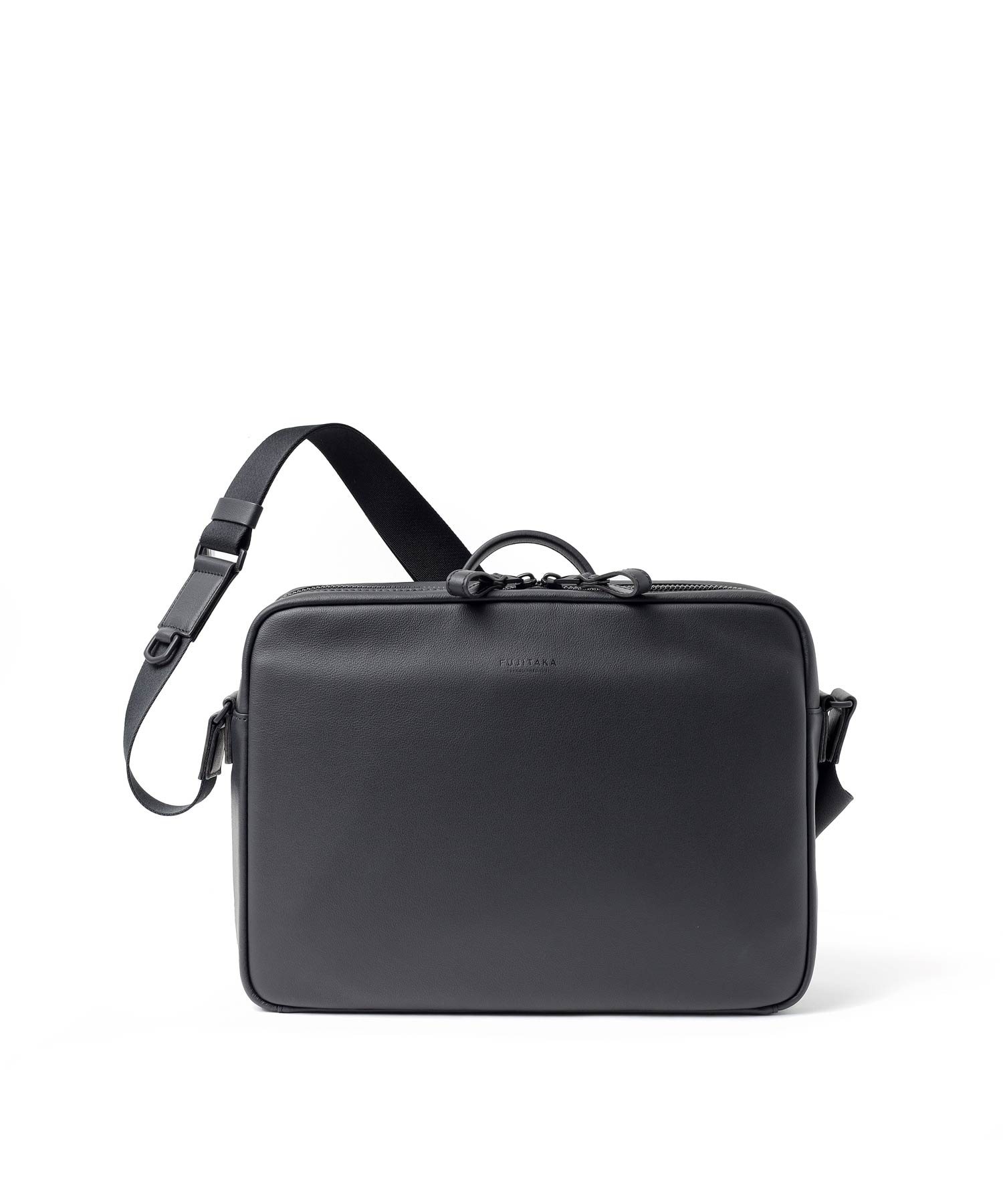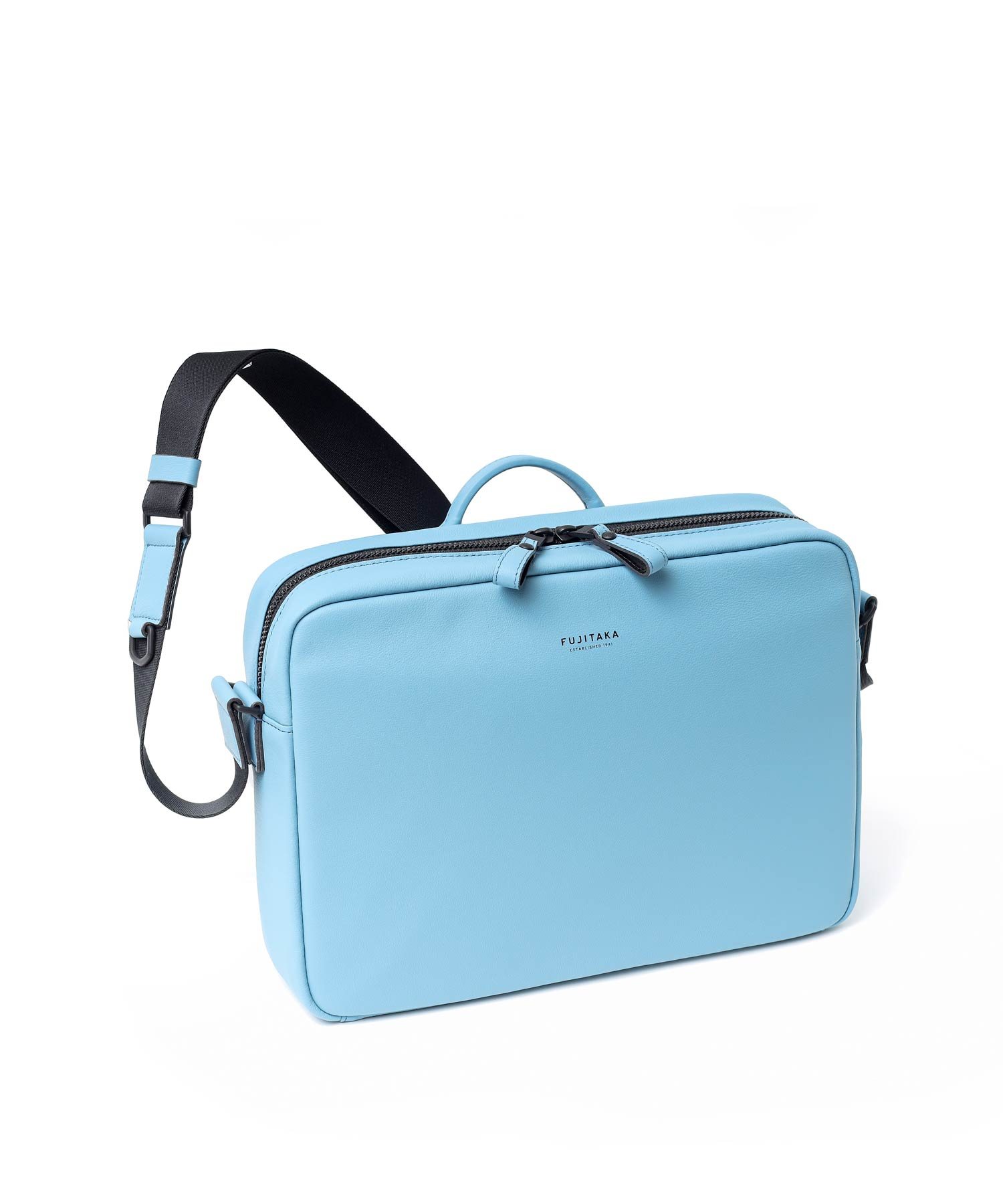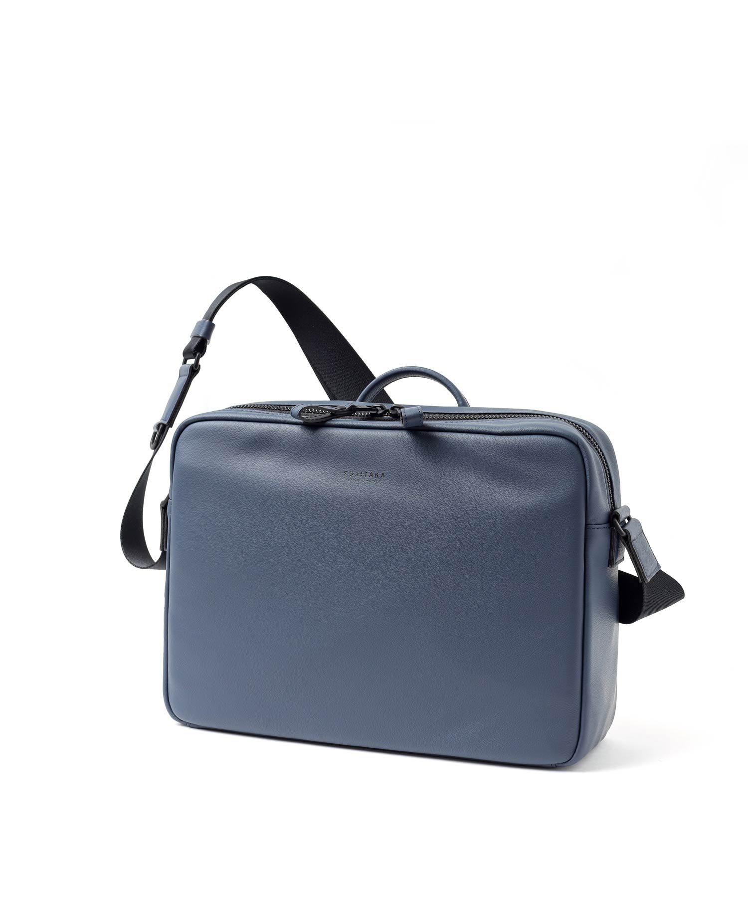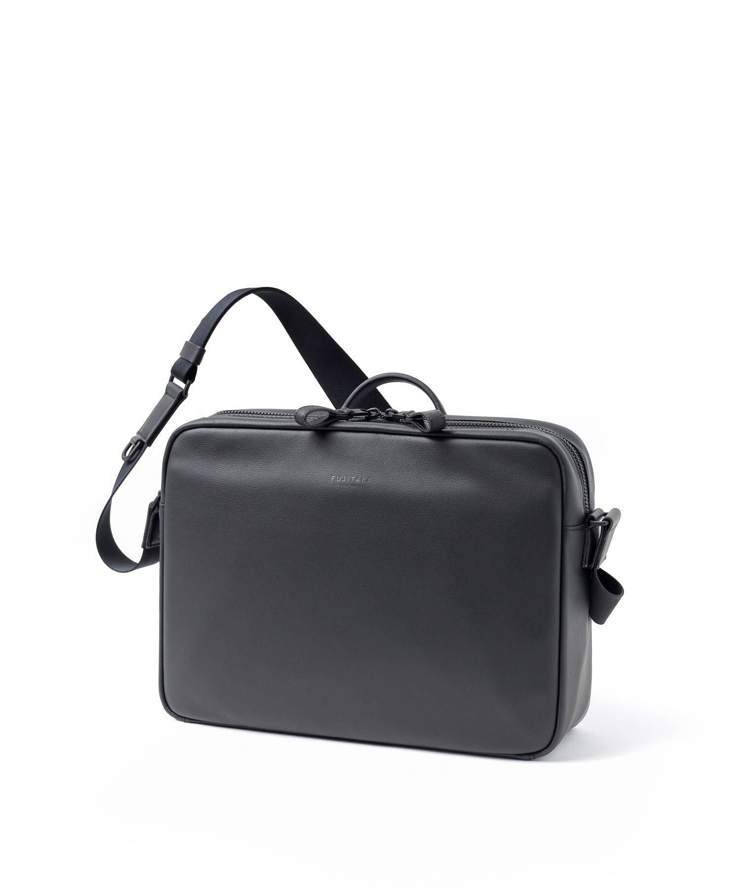 厳選されたヨーロッパ原皮に上品な肌目が美しいLWG ゴールドランク認定のイタリア高級スムースレザーを贅沢に使用したFUJITAKA LOCUSシリーズのハンドル付きのA4サイズのショルダーバッグ。家具やプライベートジェットの内装に使用される素材は、一般ファッション製品の革検査基準よりも厳しい検査基準をクリアした物性の高い本革です。マット仕上げの柔らかい上品な手触りが印象的で、スムースでありながら傷に強く、高スペックな本革です。