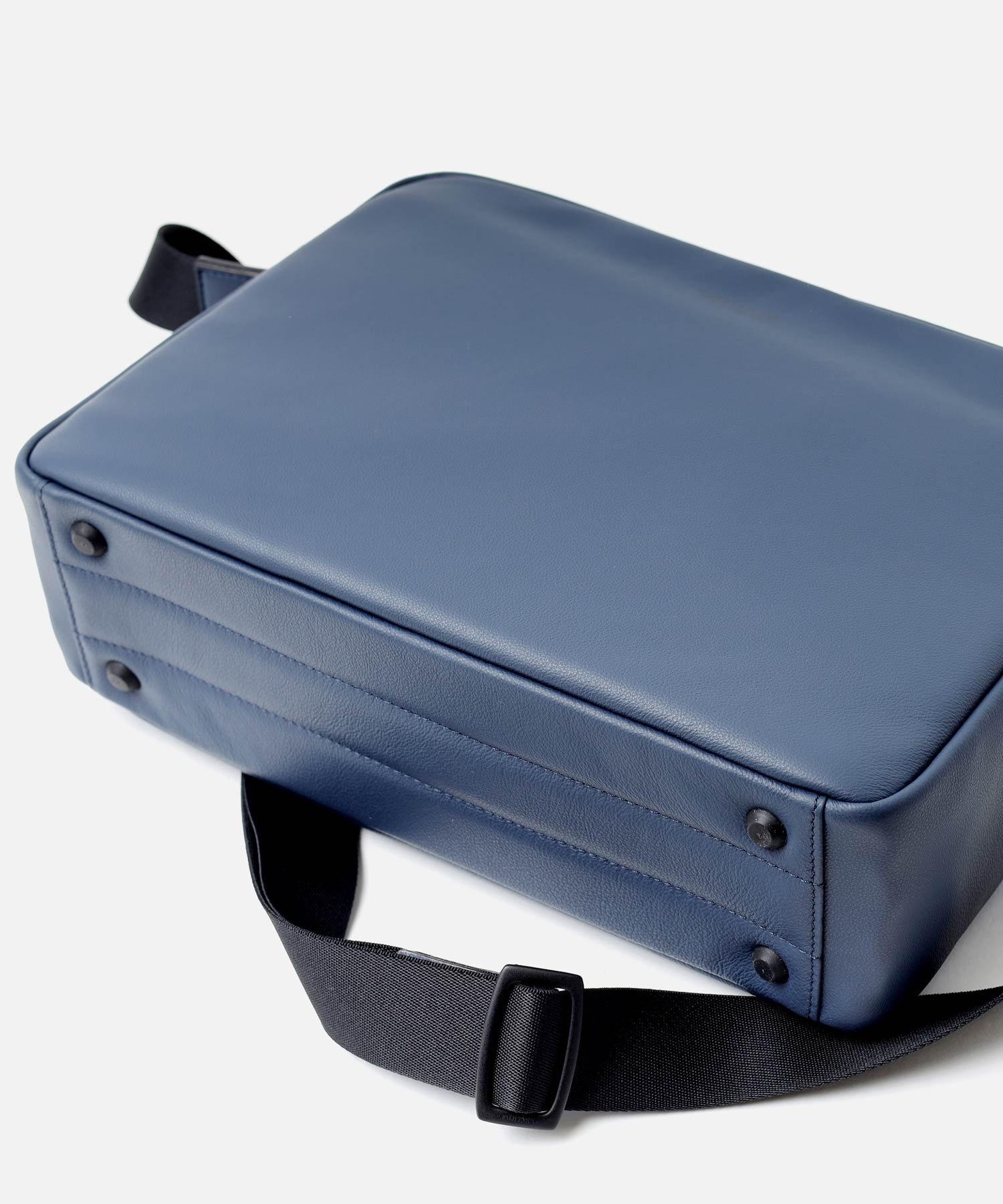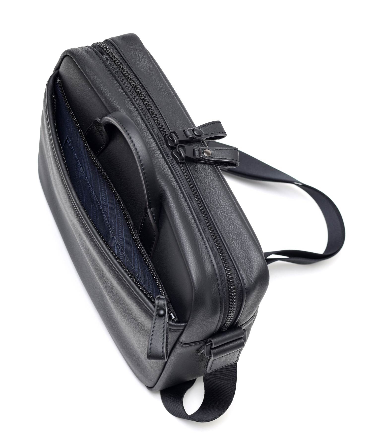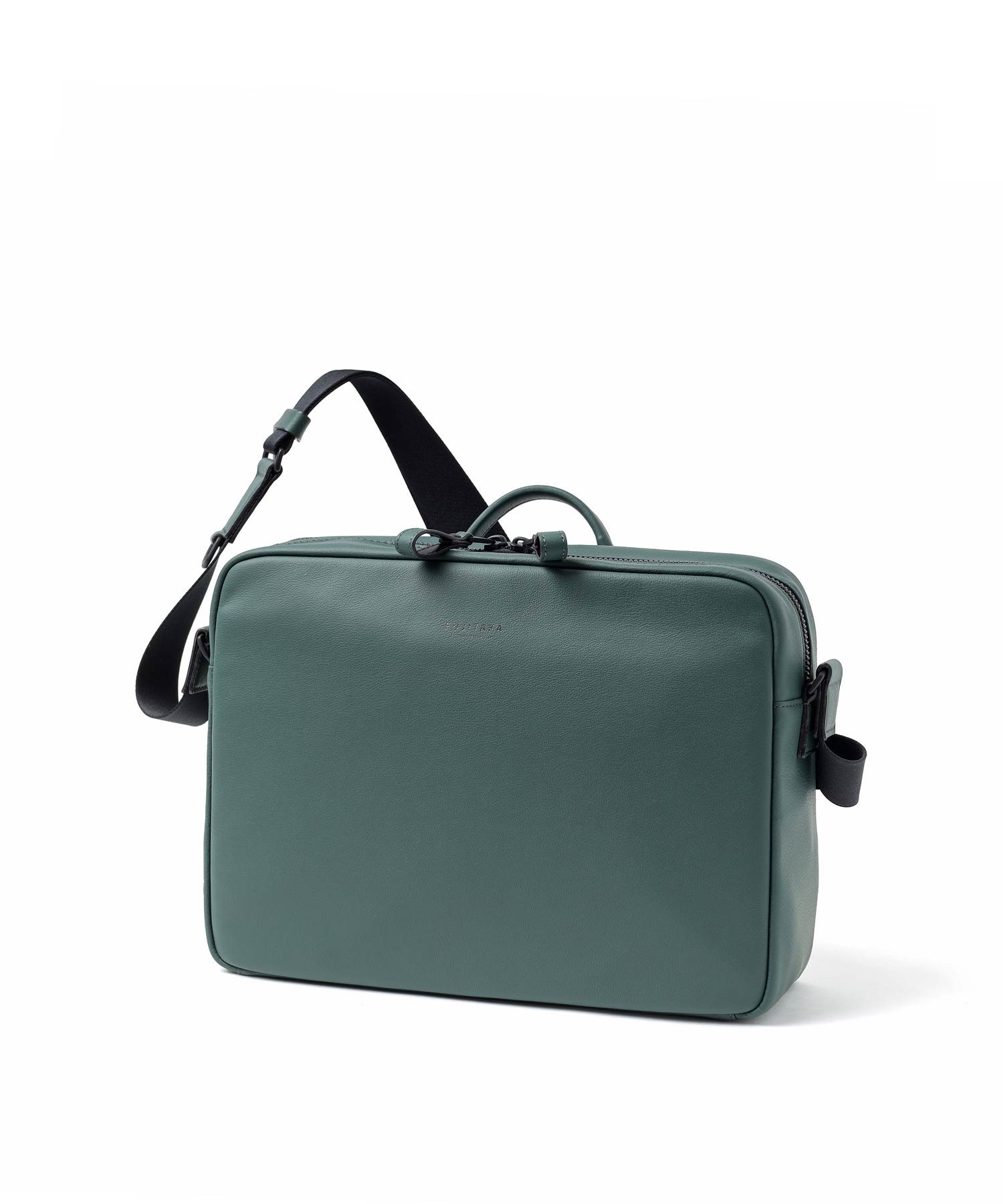 厳選されたヨーロッパ原皮に上品な肌目が美しいLWG ゴールドランク認定のイタリア高級スムースレザーを贅沢に使用したFUJITAKA LOCUSシリーズのハンドル付きのA4サイズのショルダーバッグ。家具やプライベートジェットの内装に使用される素材は、一般ファッション製品の革検査基準よりも厳しい検査基準をクリアした物性の高い本革です。マット仕上げの柔らかい上品な手触りが印象的で、スムースでありながら傷に強く、高スペックな本革です。