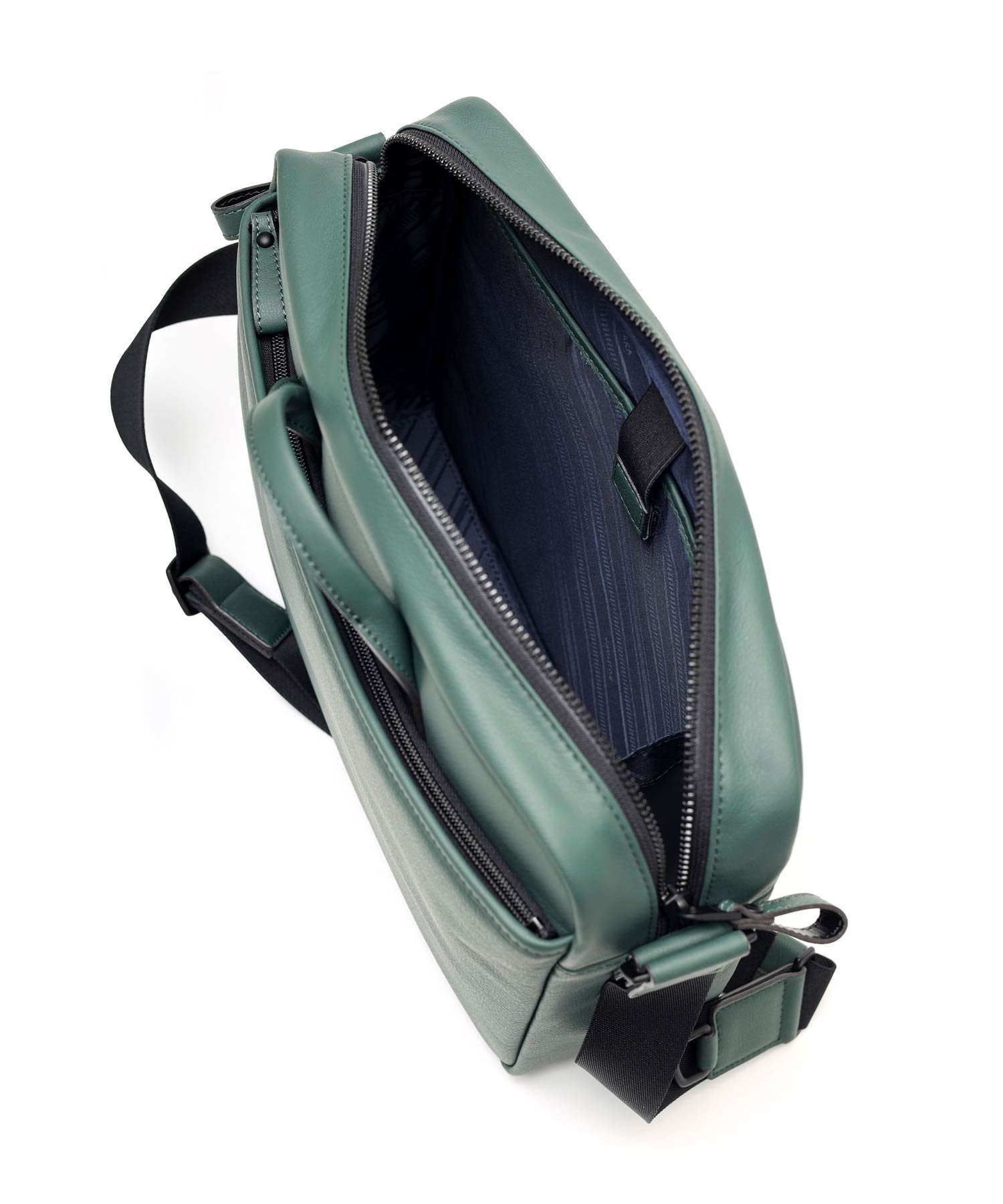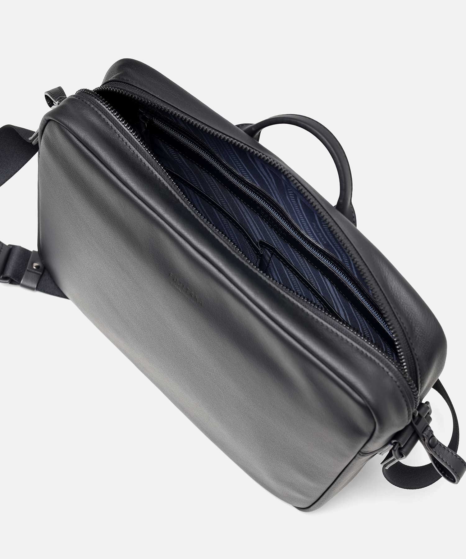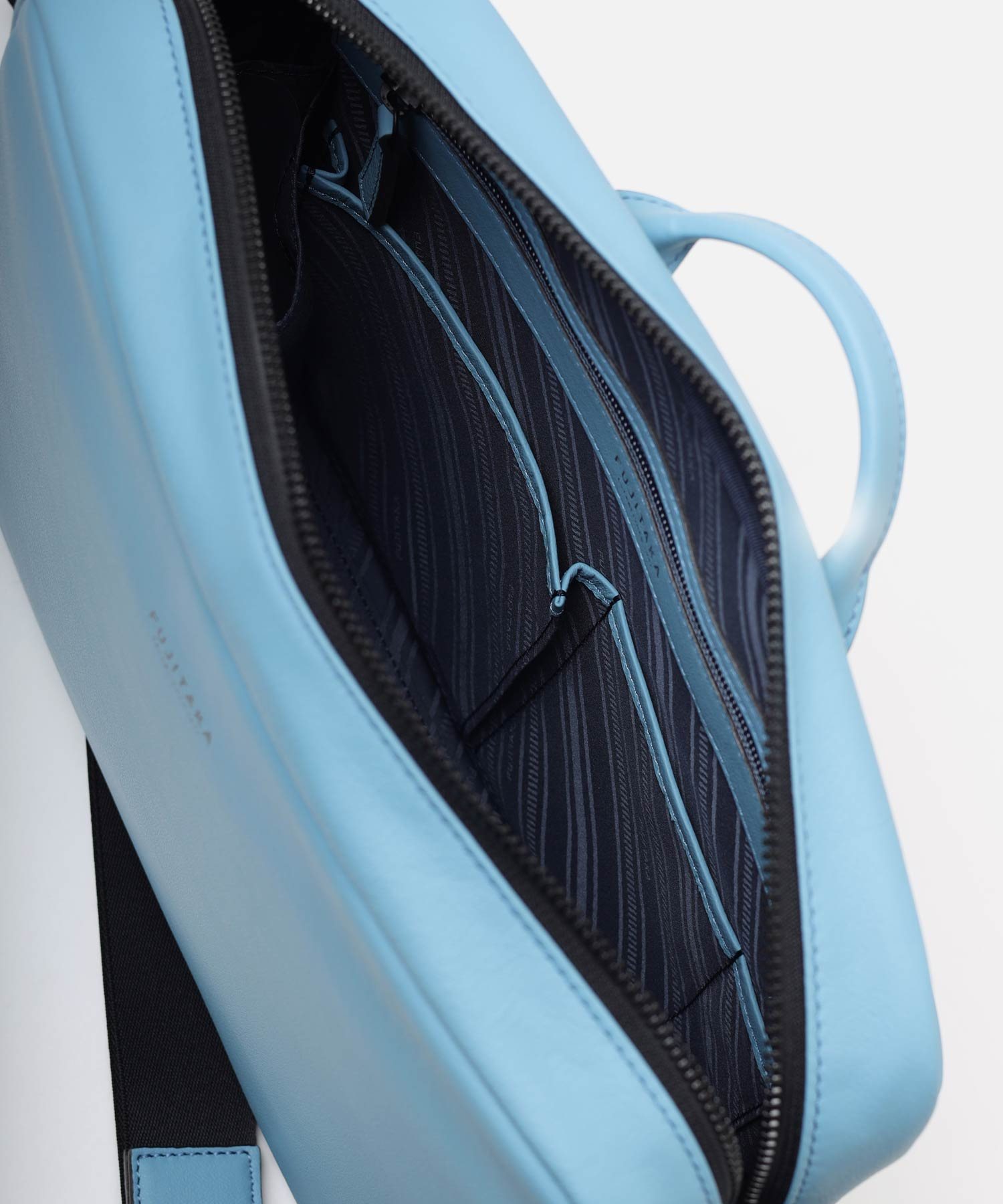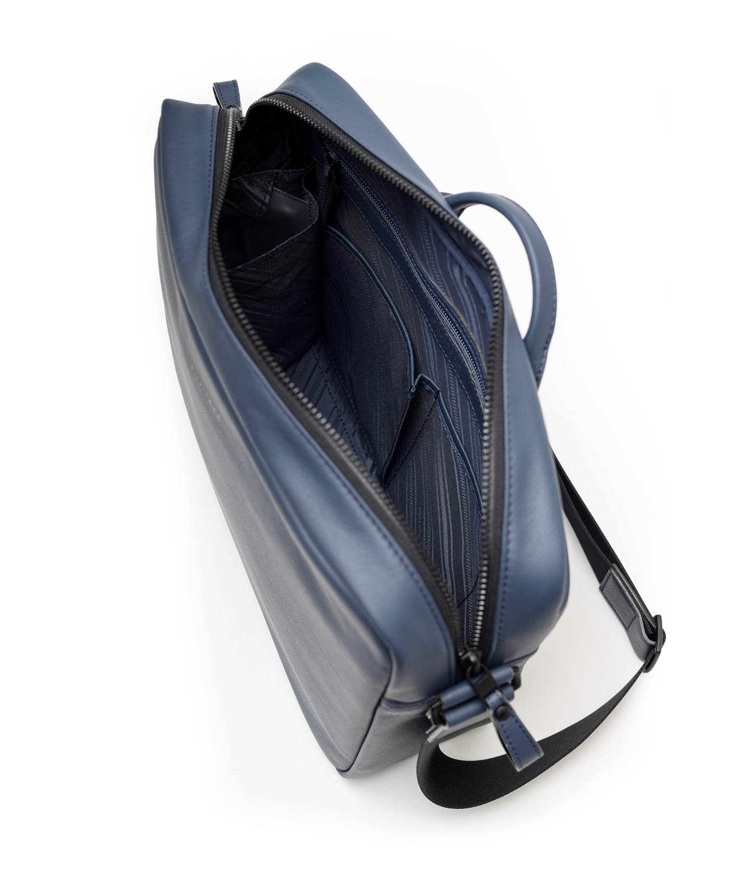 厳選されたヨーロッパ原皮に上品な肌目が美しいLWG ゴールドランク認定のイタリア高級スムースレザーを贅沢に使用したFUJITAKA LOCUSシリーズのハンドル付きのA4サイズのショルダーバッグ。家具やプライベートジェットの内装に使用される素材は、一般ファッション製品の革検査基準よりも厳しい検査基準をクリアした物性の高い本革です。マット仕上げの柔らかい上品な手触りが印象的で、スムースでありながら傷に強く、高スペックな本革です。