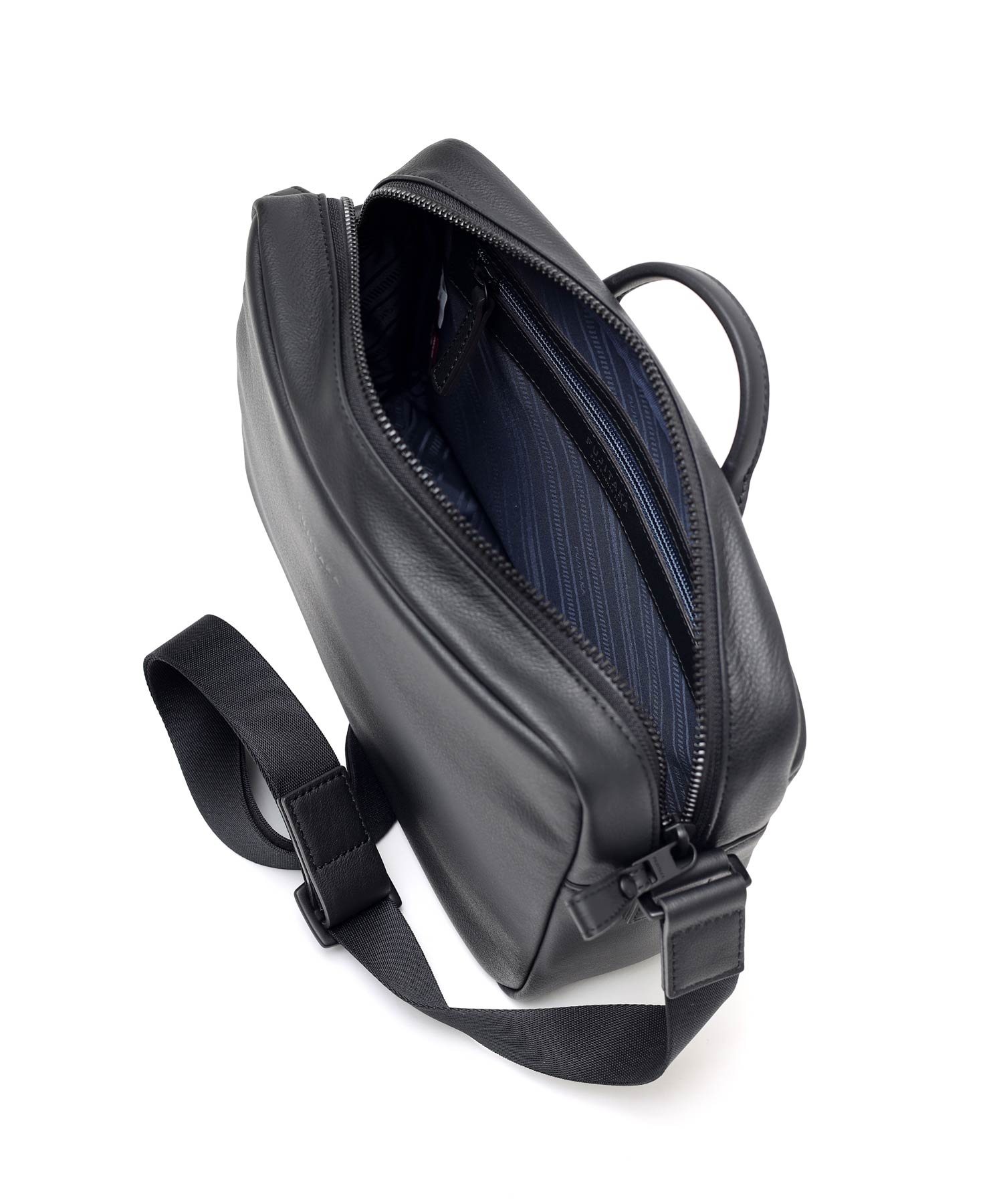 厳選されたヨーロッパ原皮に上品な肌目が美しいLWG ゴールドランク認定のイタリア高級スムースレザーを贅沢に使用したFUJITAKA LOCUSシリーズのハンドル付きのA4サイズのショルダーバッグ。ショルダーベルトのDカン金具にはイヤホンポーチなどの取り付けにお使いいただけます。