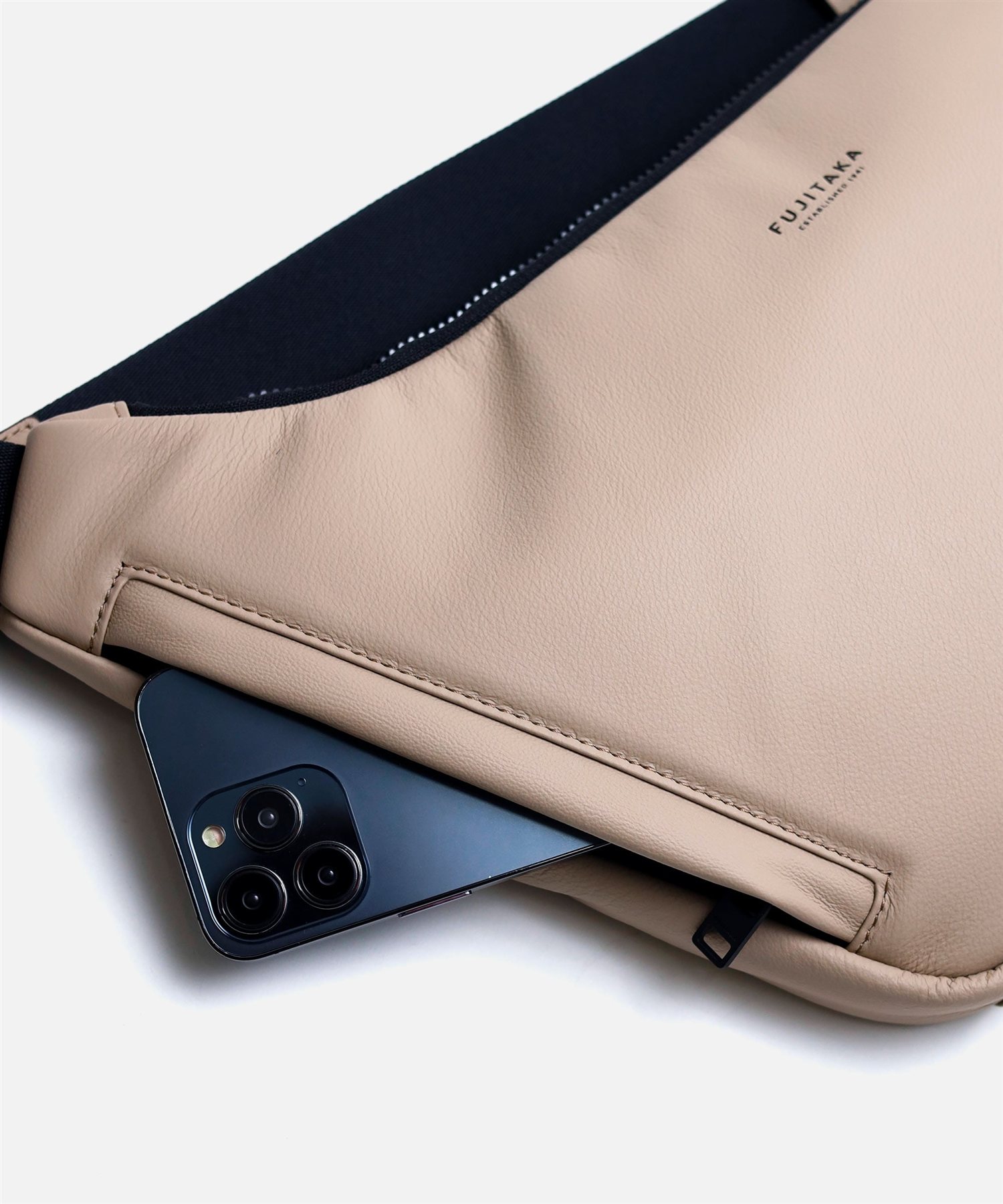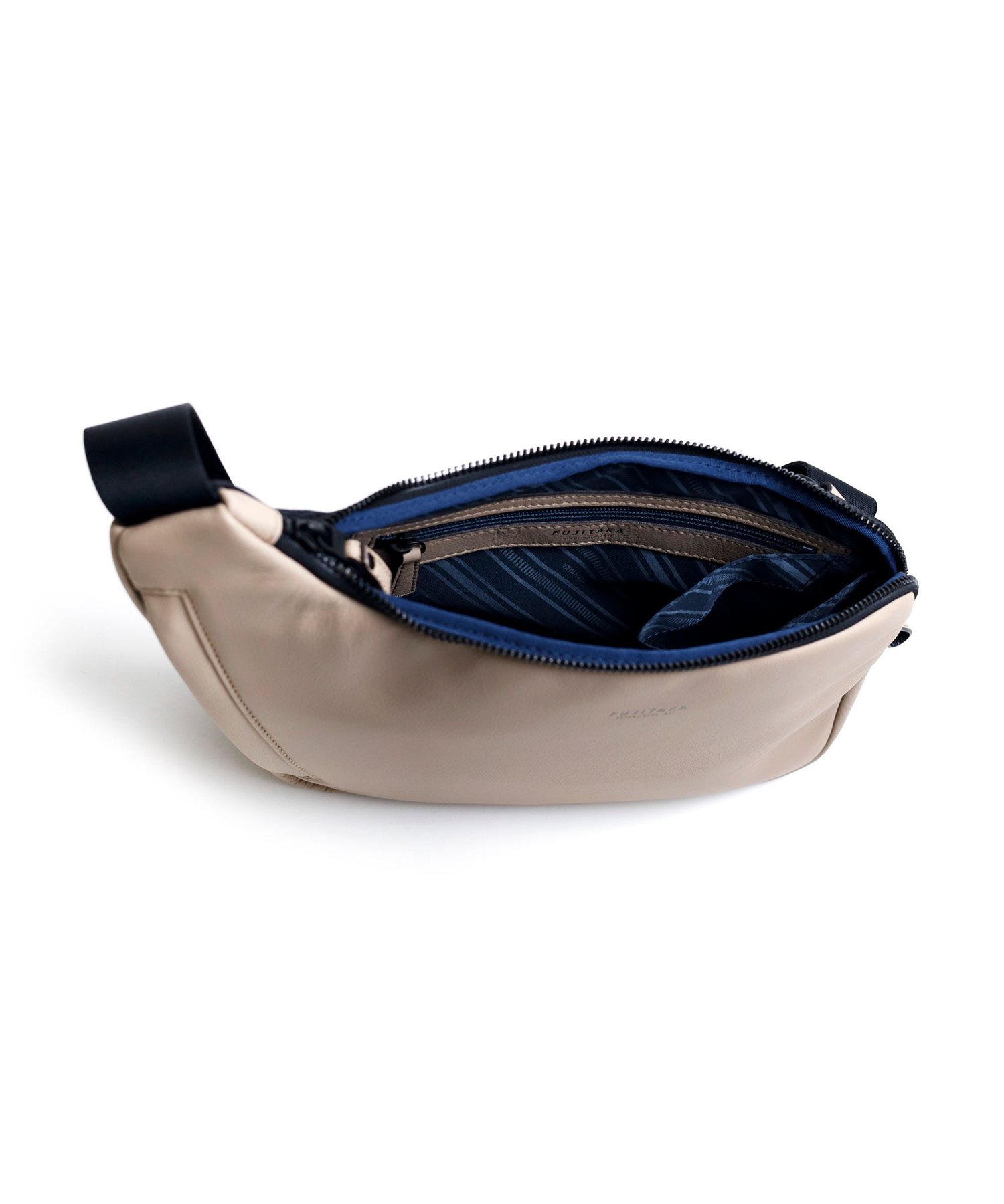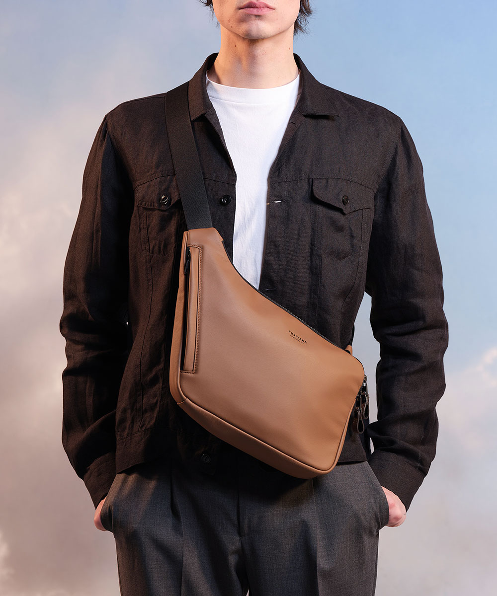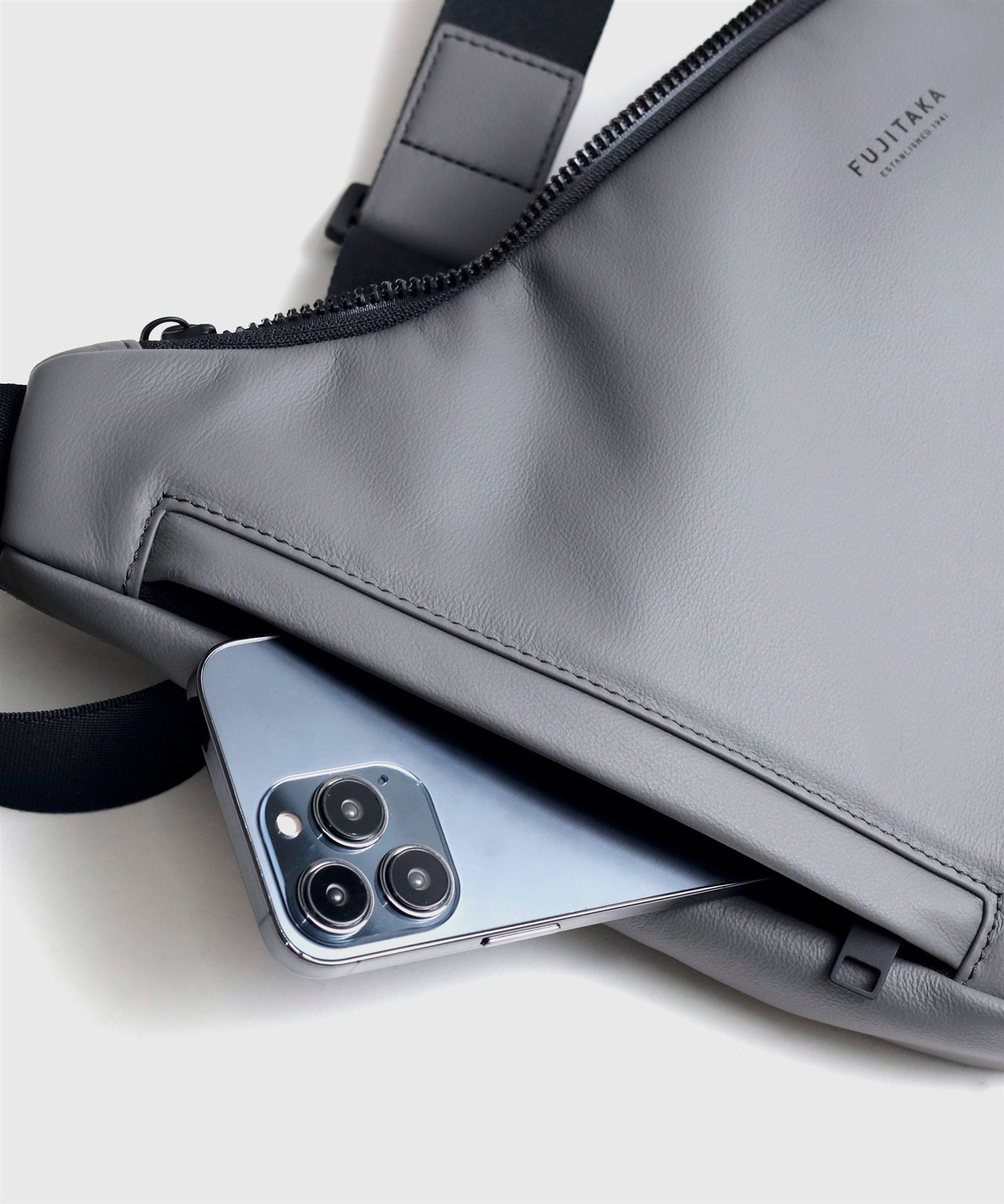 厳選されたヨーロッパ原皮に上品な肌目が美しいLWG ゴールドランク認定のイタリア高級スムースレザーを贅沢に使用したFUJITAKA LOCUSシリーズのショルダーバッグ。家具やプライベートジェットの内装に使用される素材は、一般ファッション製品の革検査基準よりも厳しい検査基準をクリアした物性の高い本革です。マット仕上げの柔らかい上品な手触りが印象的で、スムースでありながら傷に強く、高スペックな本革です。