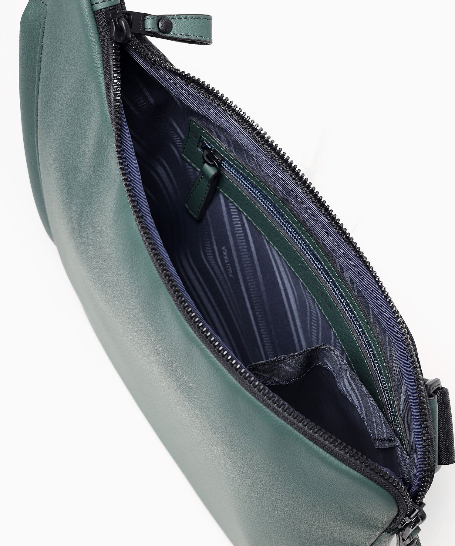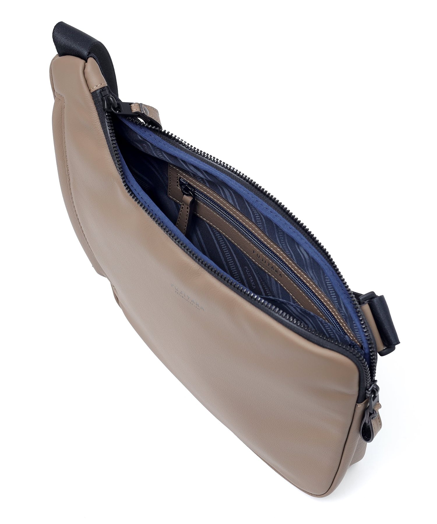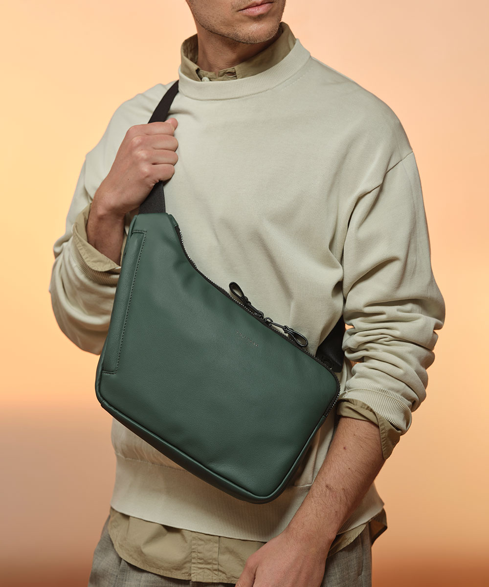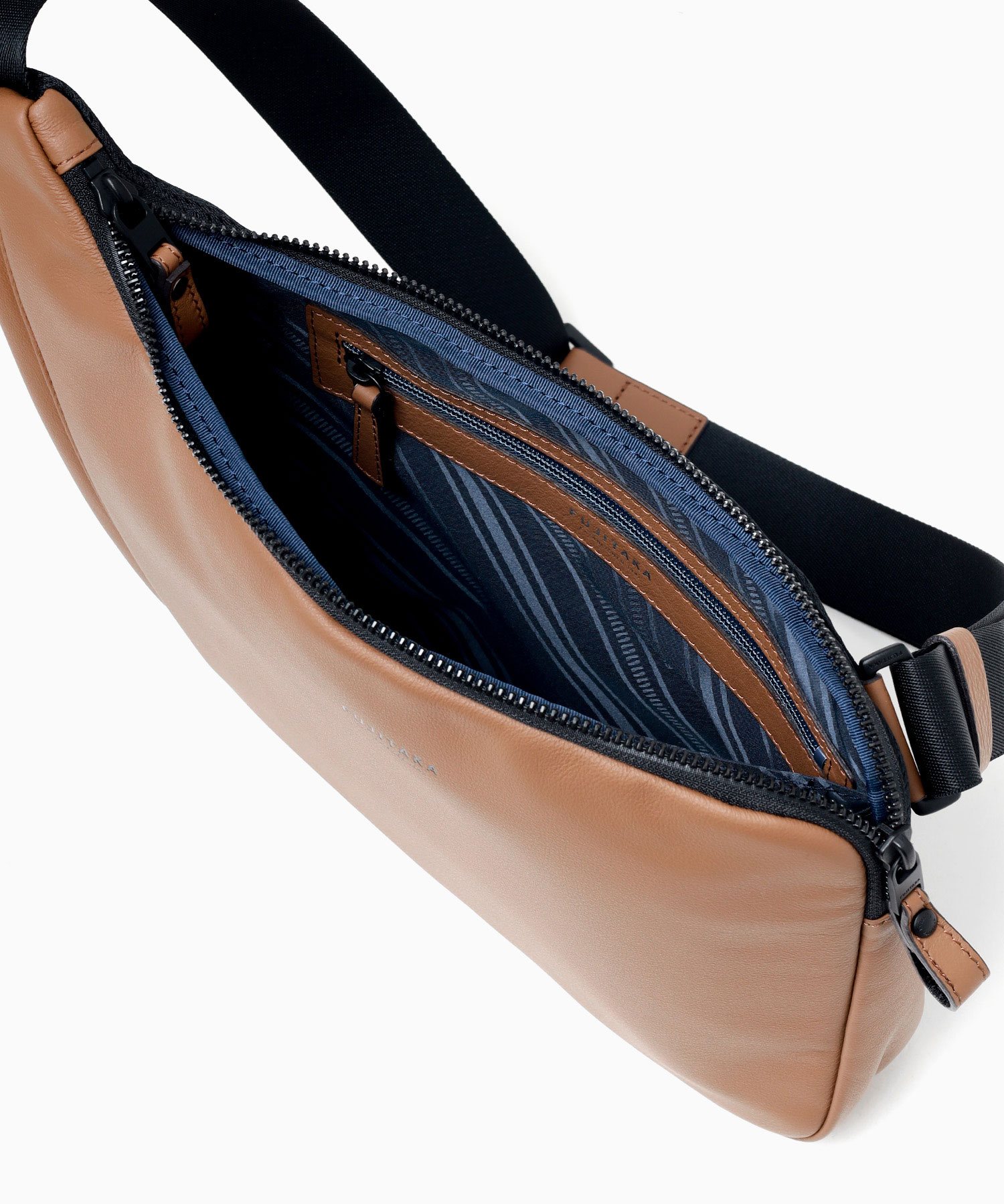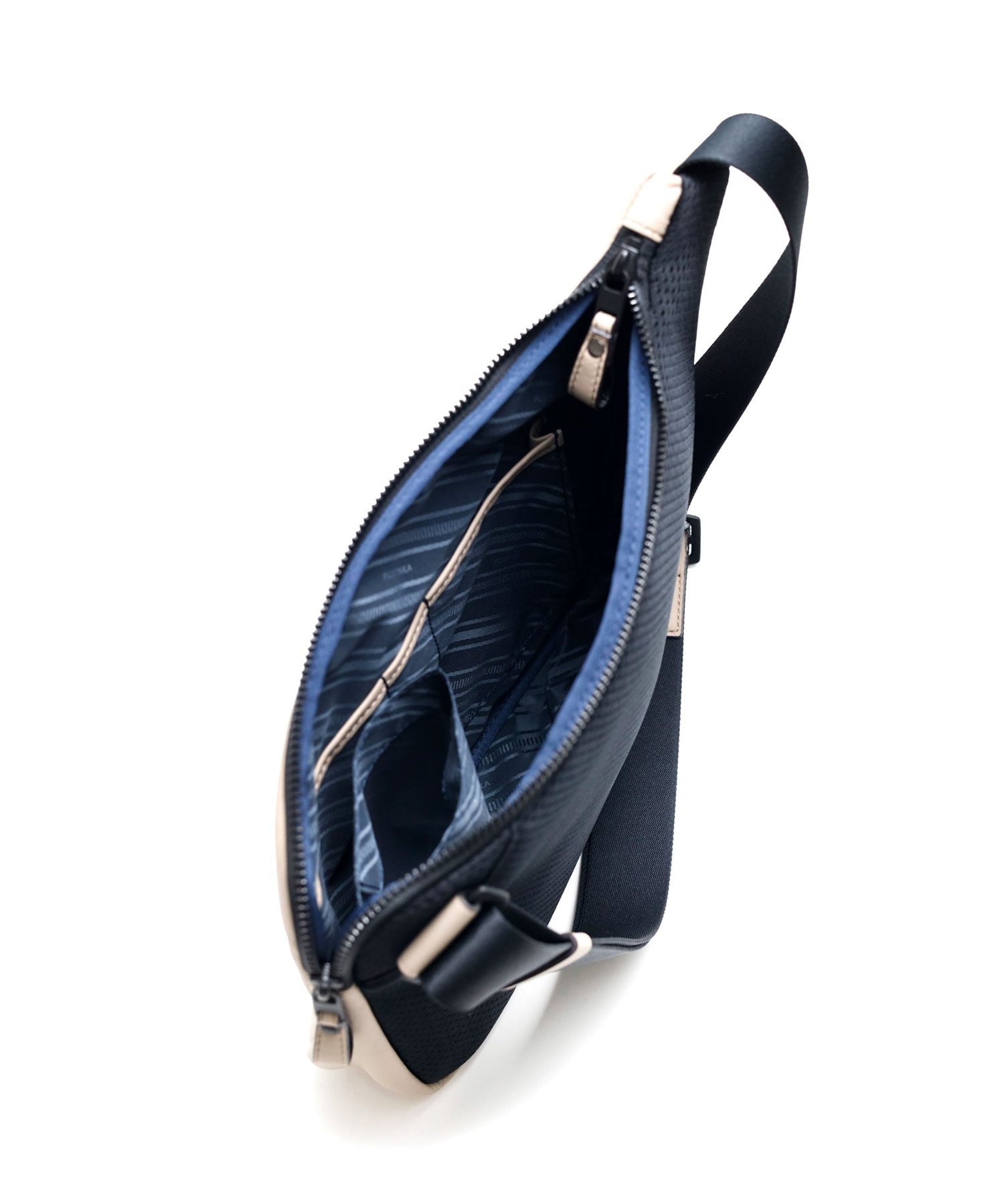 厳選されたヨーロッパ原皮に上品な肌目が美しいLWG ゴールドランク認定のイタリア高級スムースレザーを贅沢に使用したFUJITAKA LOCUSシリーズのショルダーバッグ。家具やプライベートジェットの内装に使用される素材は、一般ファッション製品の革検査基準よりも厳しい検査基準をクリアした物性の高い本革です。マット仕上げの柔らかい上品な手触りが印象的で、スムースでありながら傷に強く、高スペックな本革です。