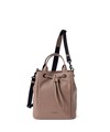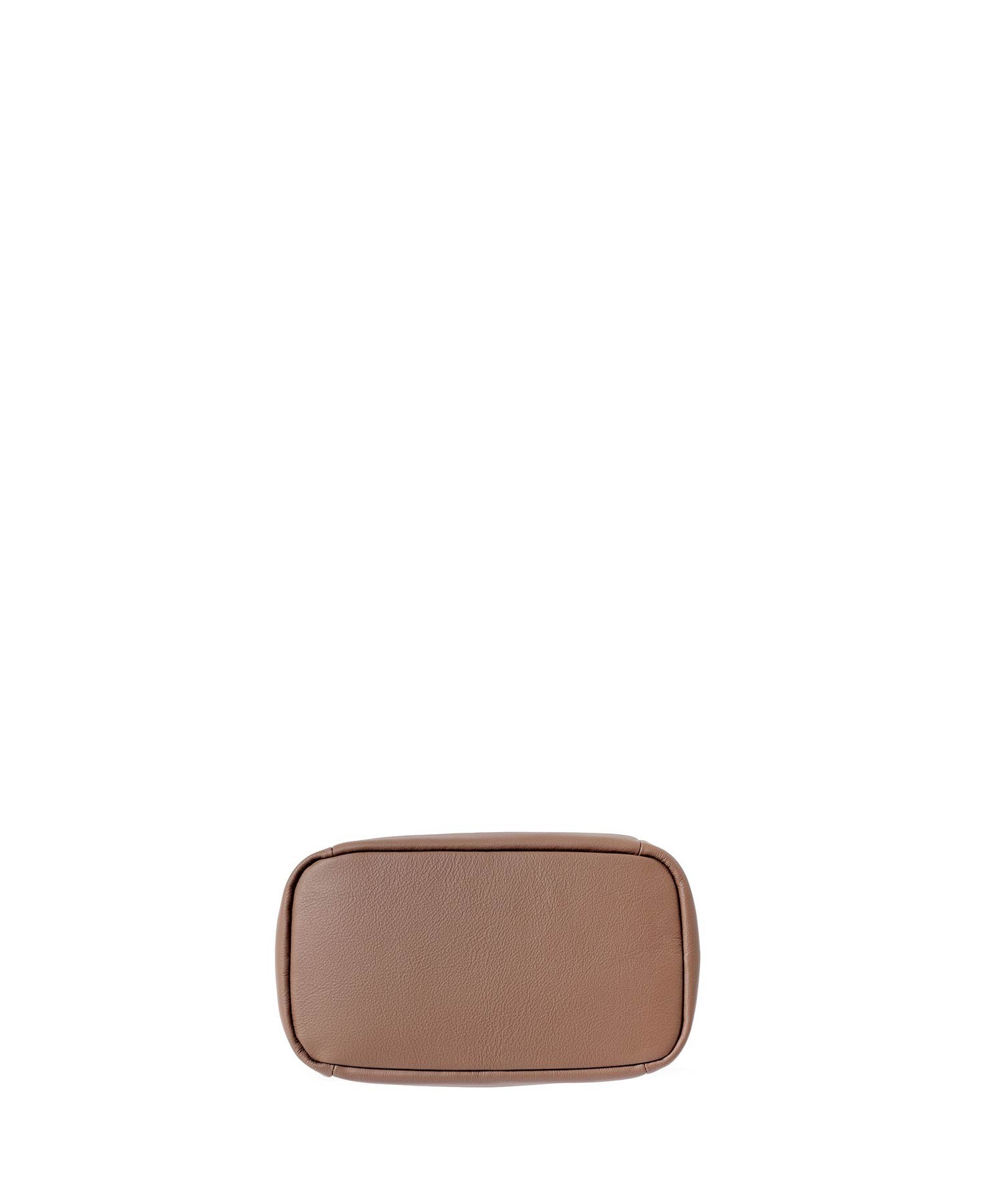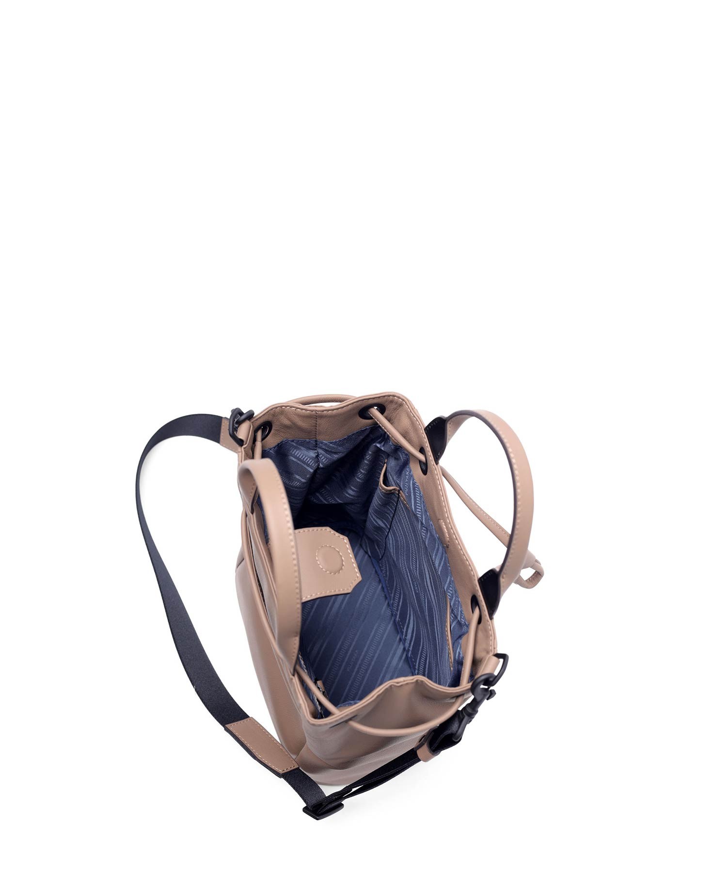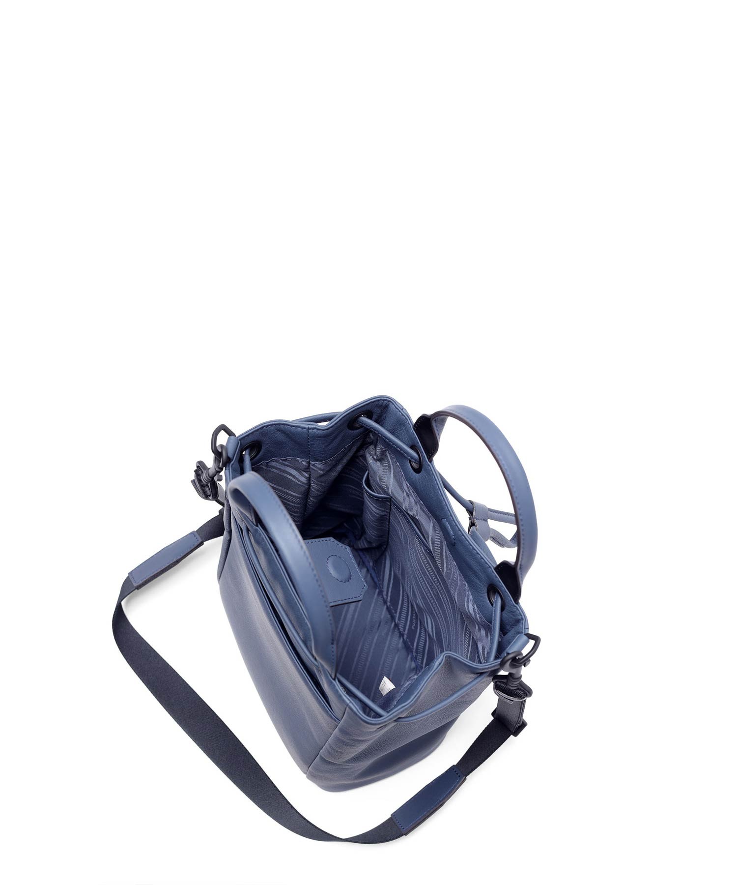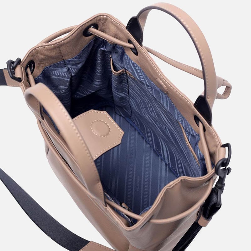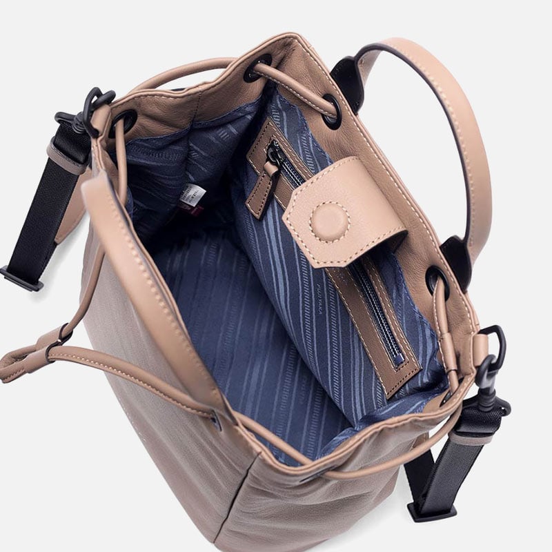 厳選されたヨーロッパ原皮に上品な肌目が美しいLWG ゴールドランク認定のイタリア高級スムースレザーを贅沢に使用したFUJITAKA LOCUS(ロカス)シリーズの巾着型ショルダーバッグ。家具やプライベートジェットの内装に使用される素材は、一般ファッション製品の革検査基準よりも厳しい検査基準をクリアした物性の高い本革です。マット仕上げの柔らかい上品な手触りが印象的で、スムースでありながら傷に強く、高スペックながら優しいクラス感のある雰囲気を醸し出しています。カバンの内側にはペンさし付きのミニポケットを備えています。カバンの背側にもマグネットタイプのポケットがあり、すぐに取り出したい小物類の収納に便利です。
