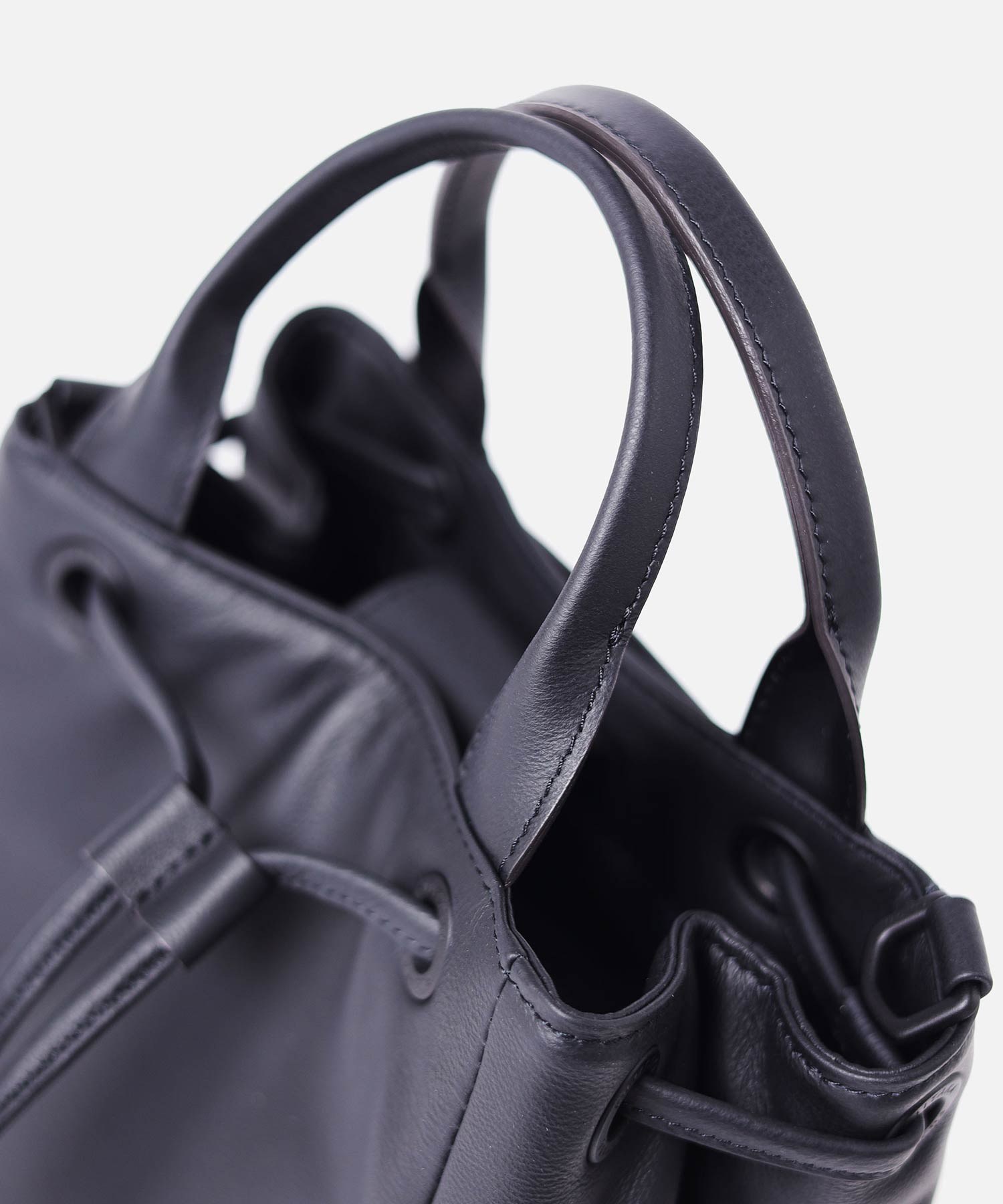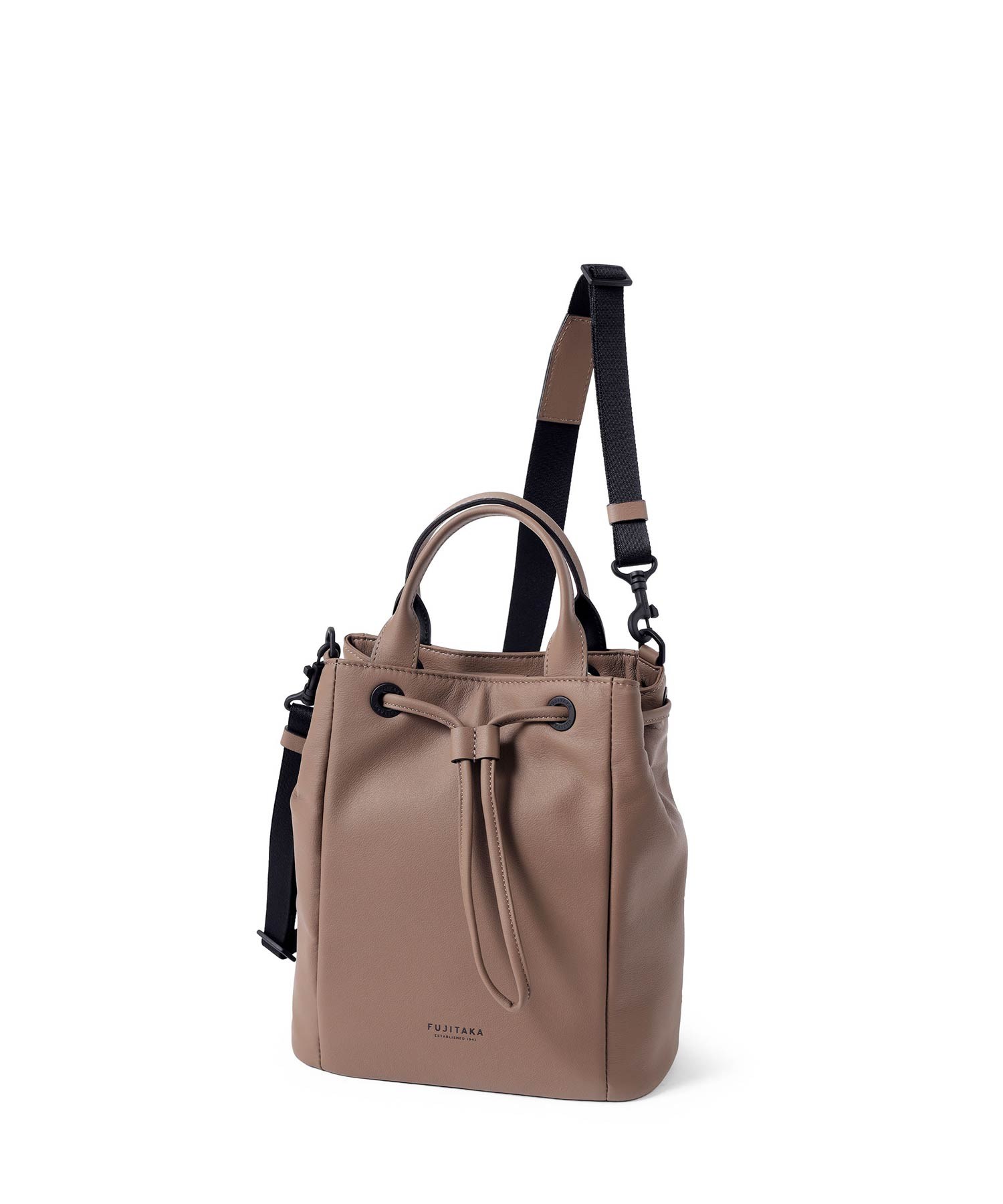 厳選されたヨーロッパ原皮に上品な肌目が美しいLWG ゴールドランク認定のイタリア高級スムースレザーを贅沢に使用したFUJITAKA LOCUSシリーズの巾着型ショルダーバッグ。タイムレスなデザインで、シンプルで飽きの来ないショルダーバッグです。