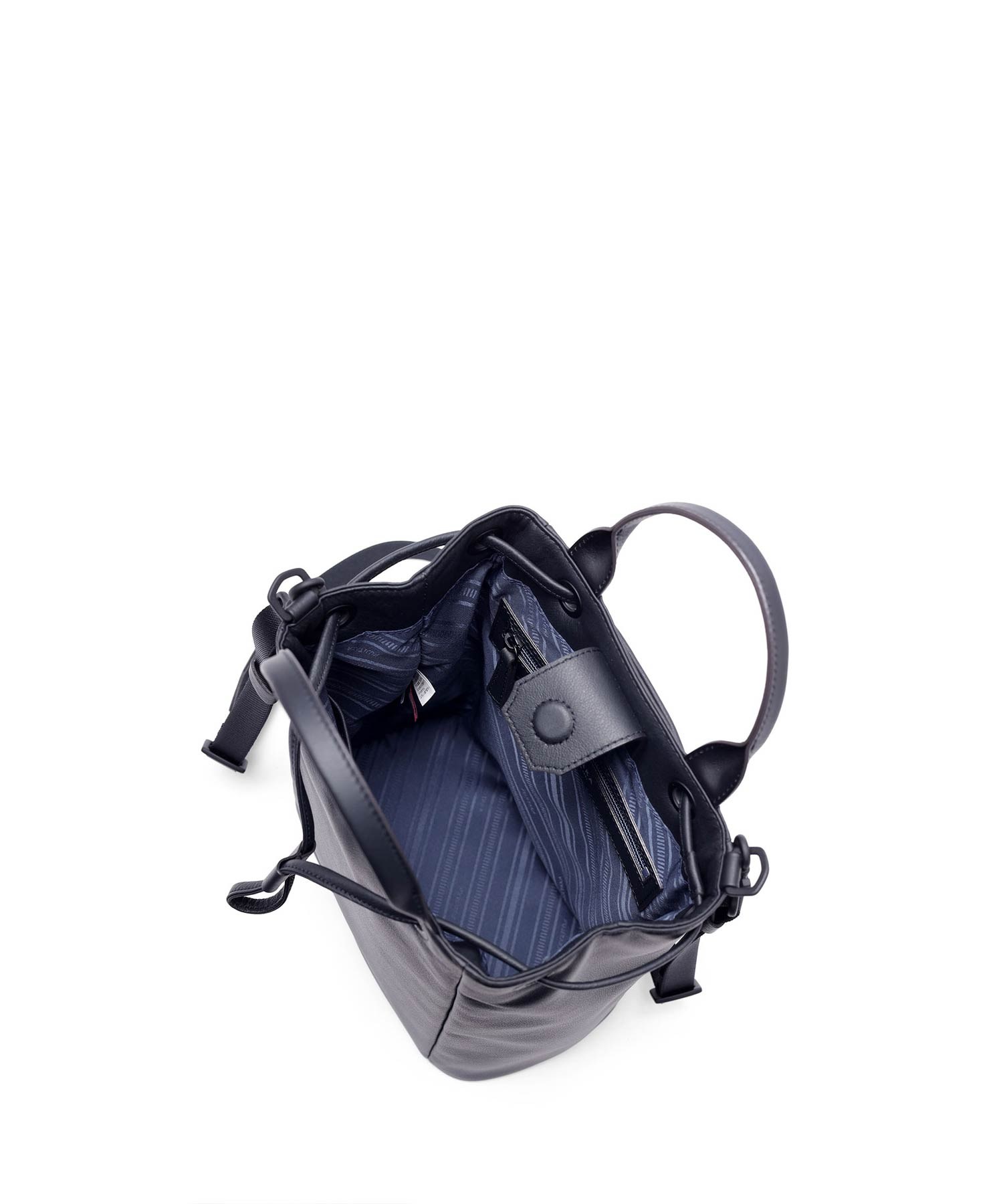 コンパクトなショルダーバッグは、荷物の少ないキャッシュレス時代にも対応。ちょっとしたお出かけに活躍するサイズ感です。ショルダーバッグの内側にはファスナーポケット、ポケット、ペンさしを装備しています。カバンの背側にもマグネット式のオープンポケットがあり、サッと取り出したい小物類の収納に便利です。