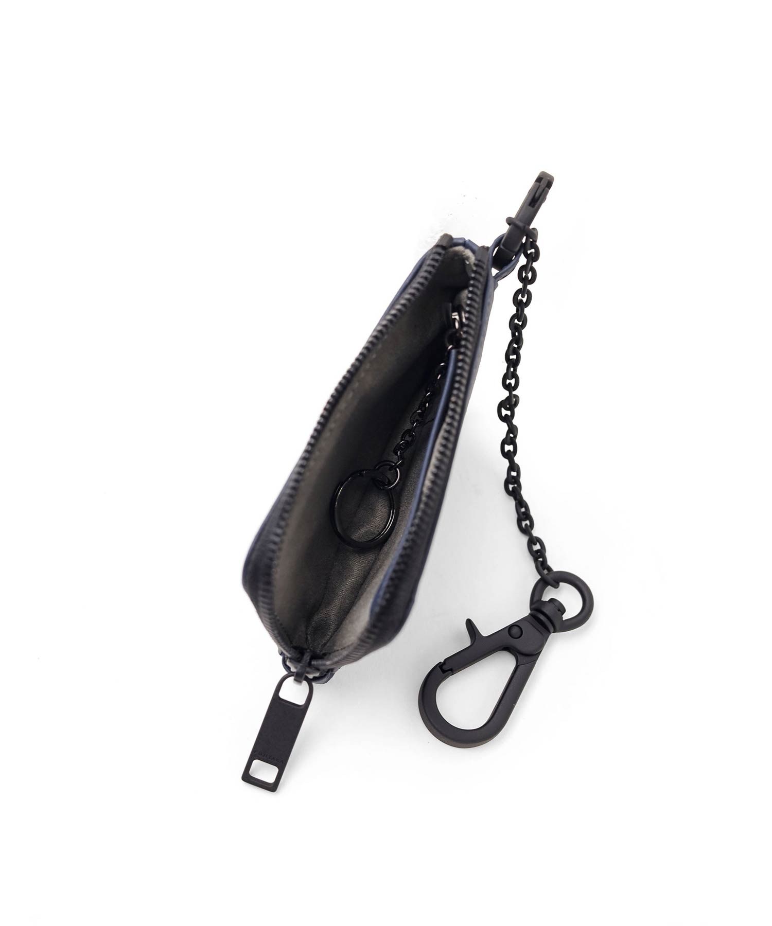 スマートキーが収納可能なサイズです。付属のチェーンをバッグに取り付けたり、衣類のベルトループに吊り下げるなど、多様なスタイルをお楽しみいただけます。内側にはホックで取り外しができるキーチェーン付き。