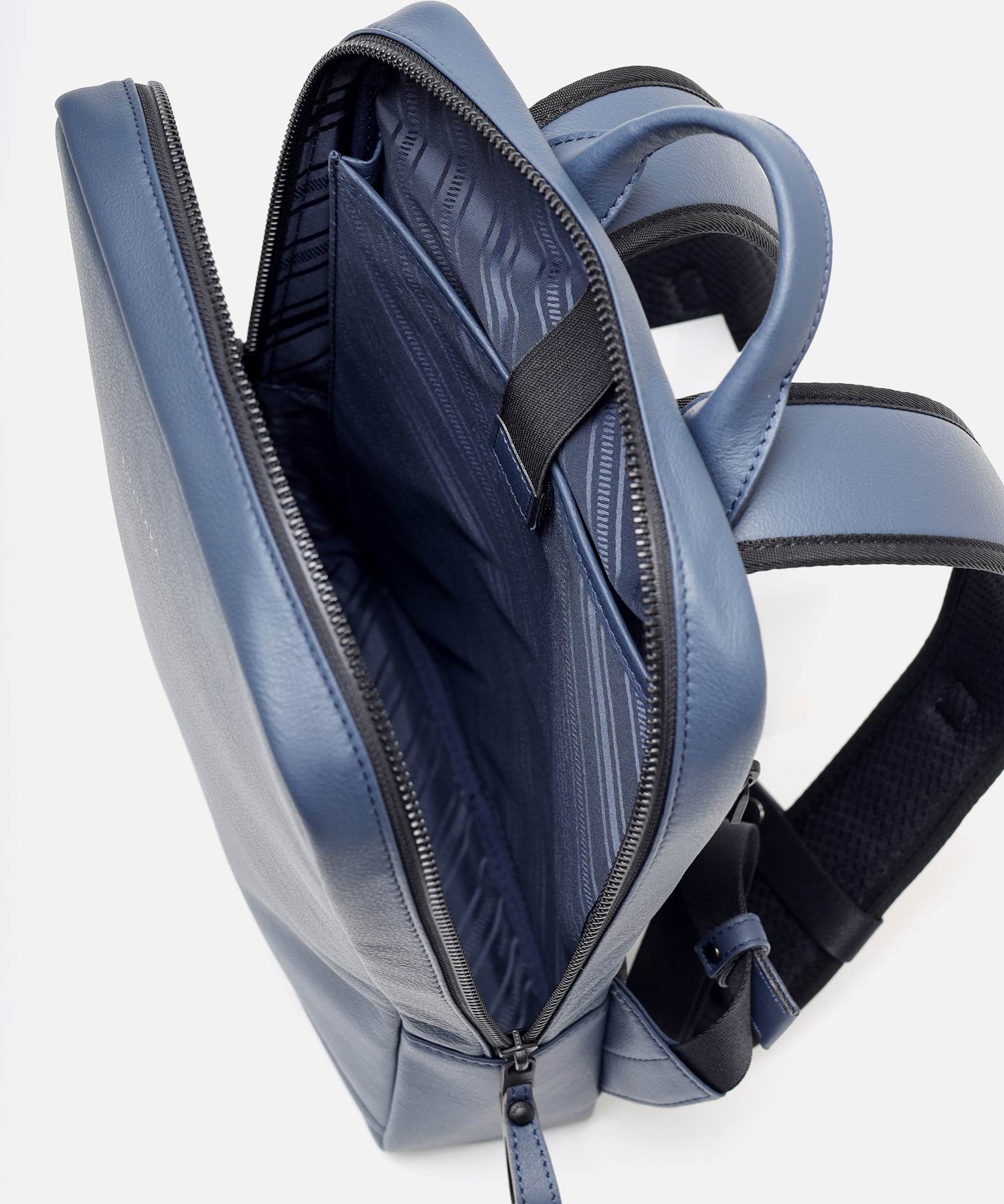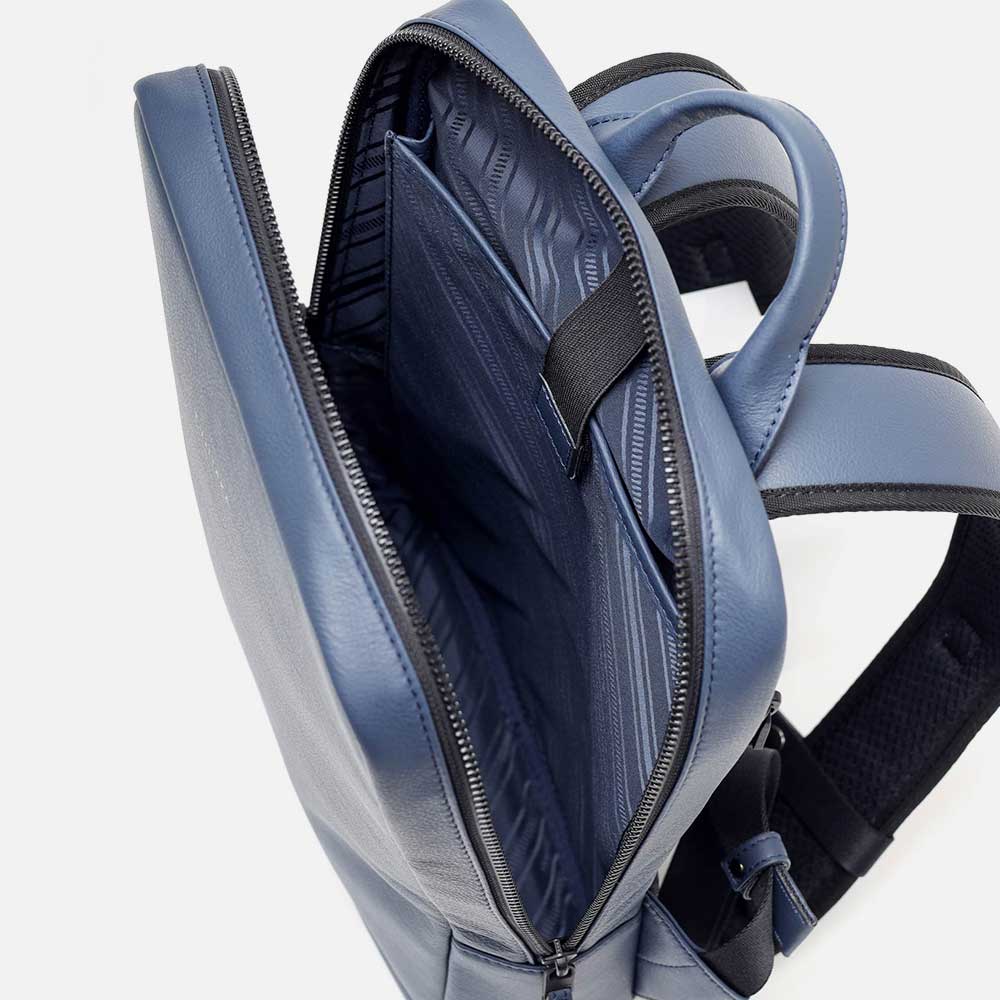 A4サイズ収納対応のスマートなレザーリュックです。カバンの内側には13.3インチ対応のクッションPCポケット(幅23x高26cm)があります。内装にはファスナーポケット、ポケット、ペンさしが装備されています。背面は色落ちや使用感を考慮したポリエステル素材を採用、外側には貴重品収納にも便利なファスナーポケットがあります。
