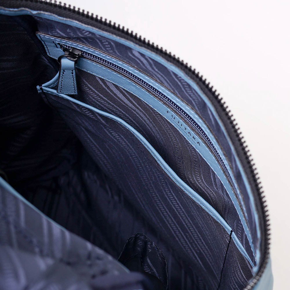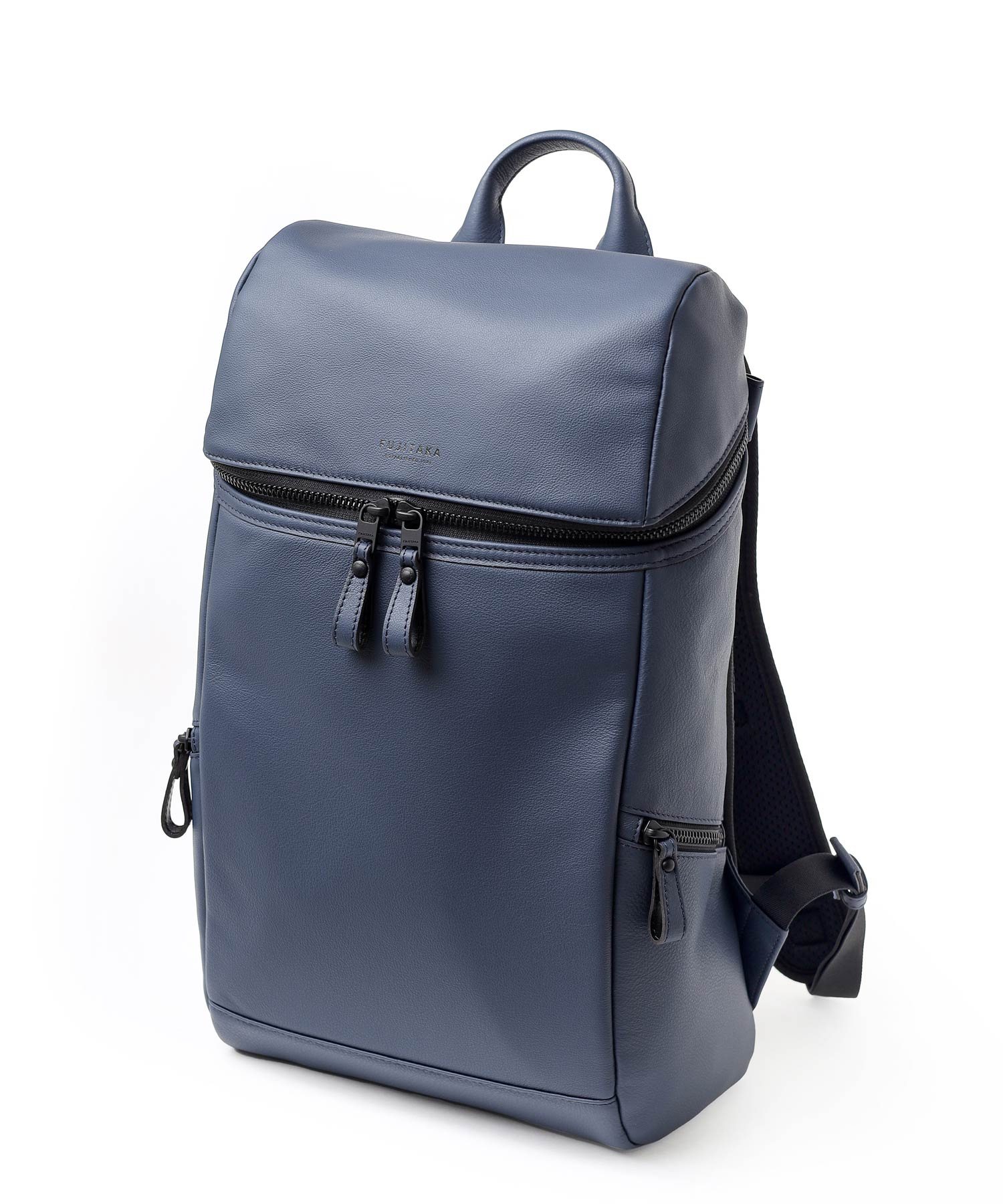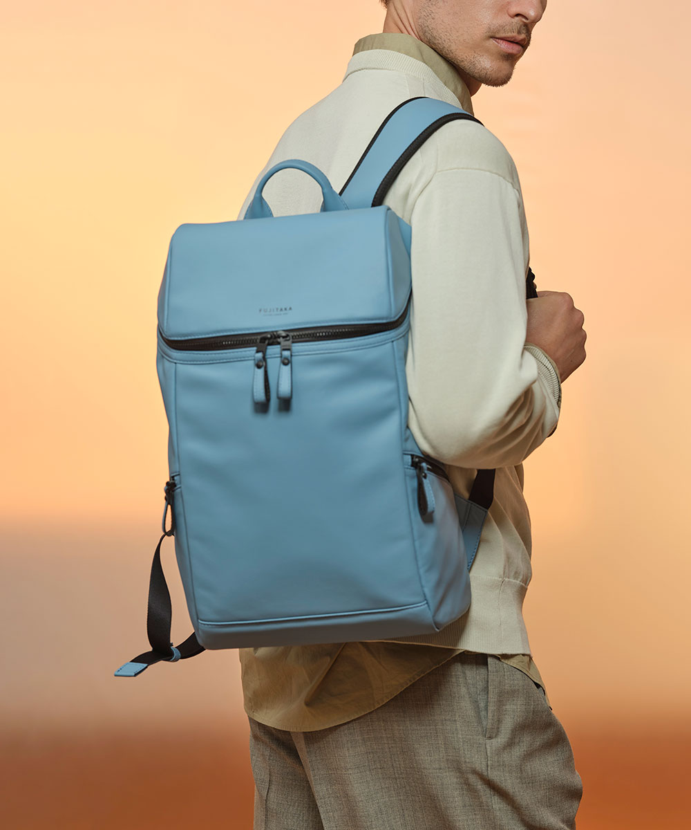 厳選されたヨーロッパ原皮に上品な肌目が美しいLWG ゴールドランク認定のイタリア高級スムースレザーを贅沢に使用したFUJITAKA LOCUSシリーズのA4レザーリュック。背面は色落ちや使用感を考慮したポリエステル素材を採用しています。