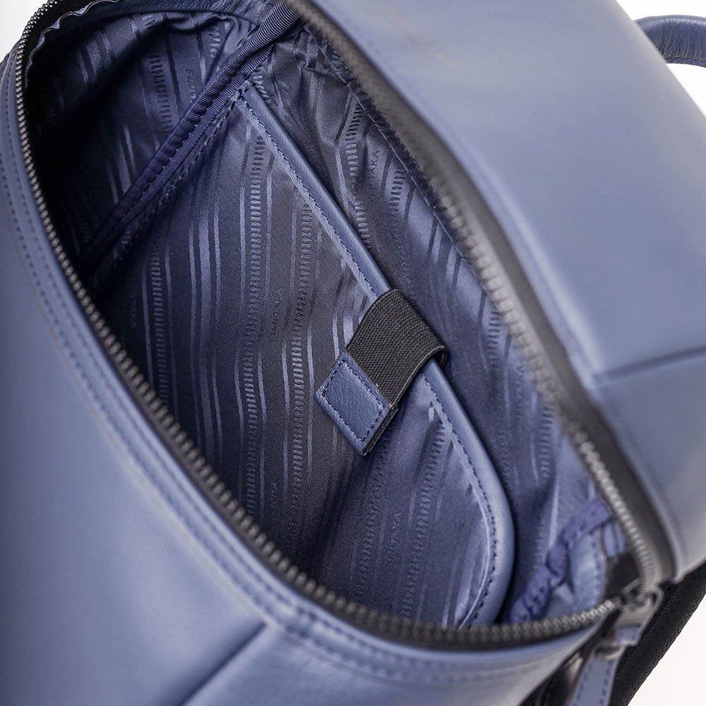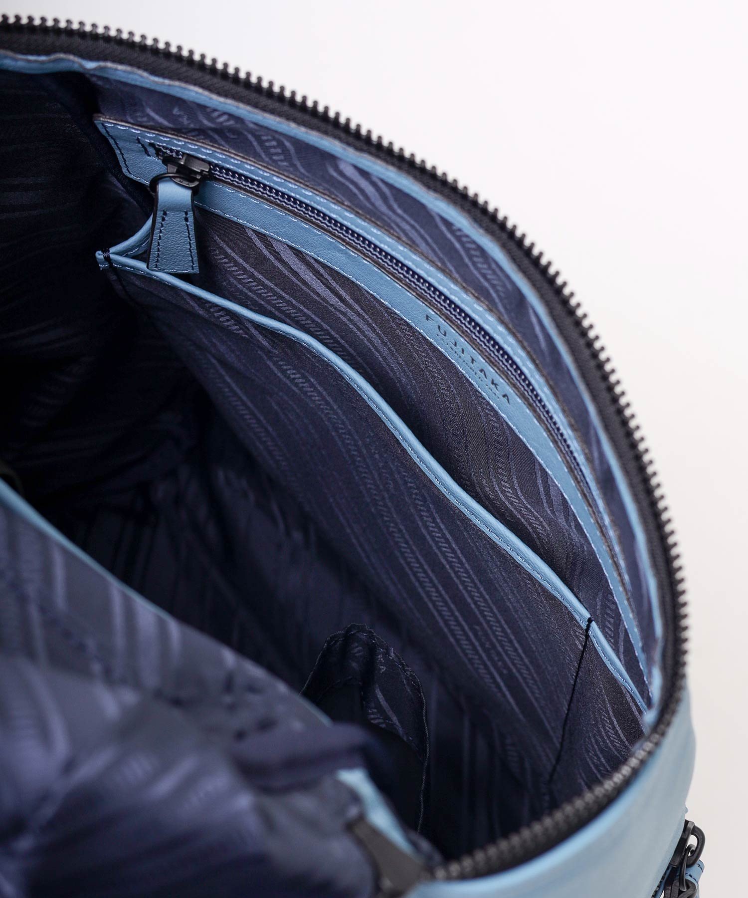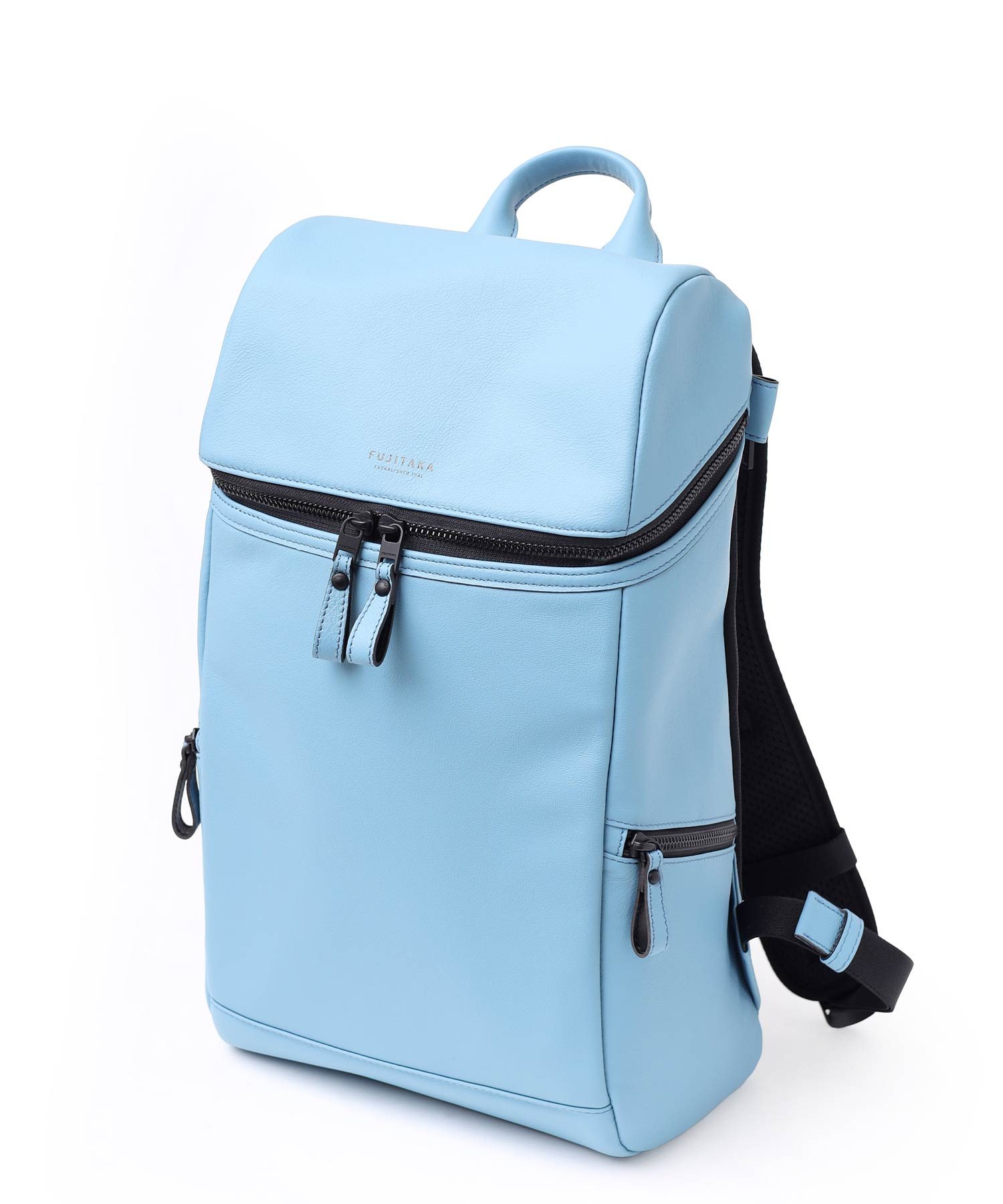 厳選されたヨーロッパ原皮に上品な肌目が美しいLWG ゴールドランク認定のイタリア高級スムースレザーを贅沢に使用したFUJITAKA LOCUSシリーズのA4レザーリュック。背面は色落ちや使用感を考慮したポリエステル素材を採用しています。