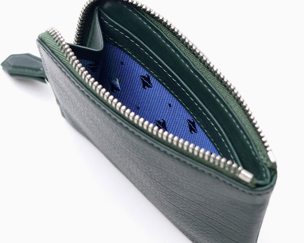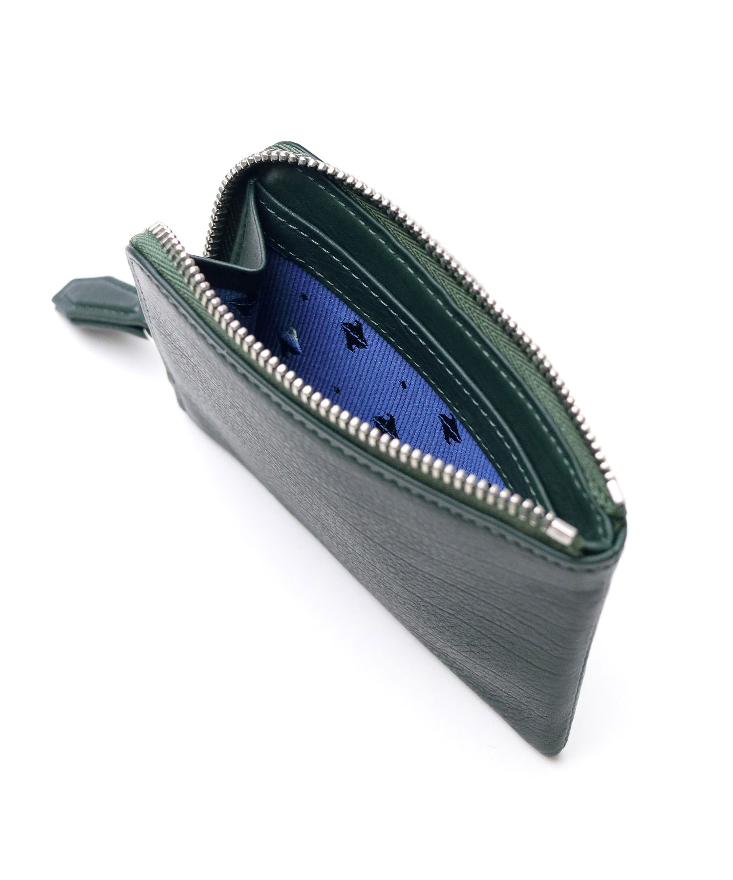 メインルームにはカードポケットが2つあり、小銭とカードを収納することができるシンプルな形状です。内装に使用されているオリジナルのジャガード生地がポイントとなっています。