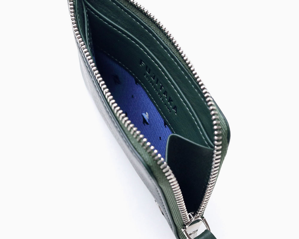 内外共に、牛革の中で最も上質な素材とされる生後6か月以内の子牛の革”カーフ”を使用した、FUJITAKAの小銭入れ。肌のキメが細かくて柔らかく、手に吸い付くようなやさしい感触が魅力です。顔料等を使用しない素上げのため、革本来の質感や表情を存分に味わうことができます。外装にはブランドアイコンのブローチを、内装の一部にはオリジナルのジャガード生地を使用しています。