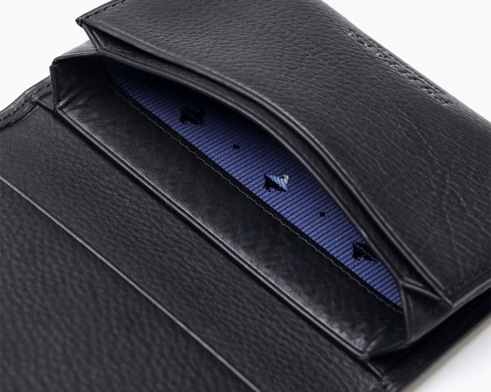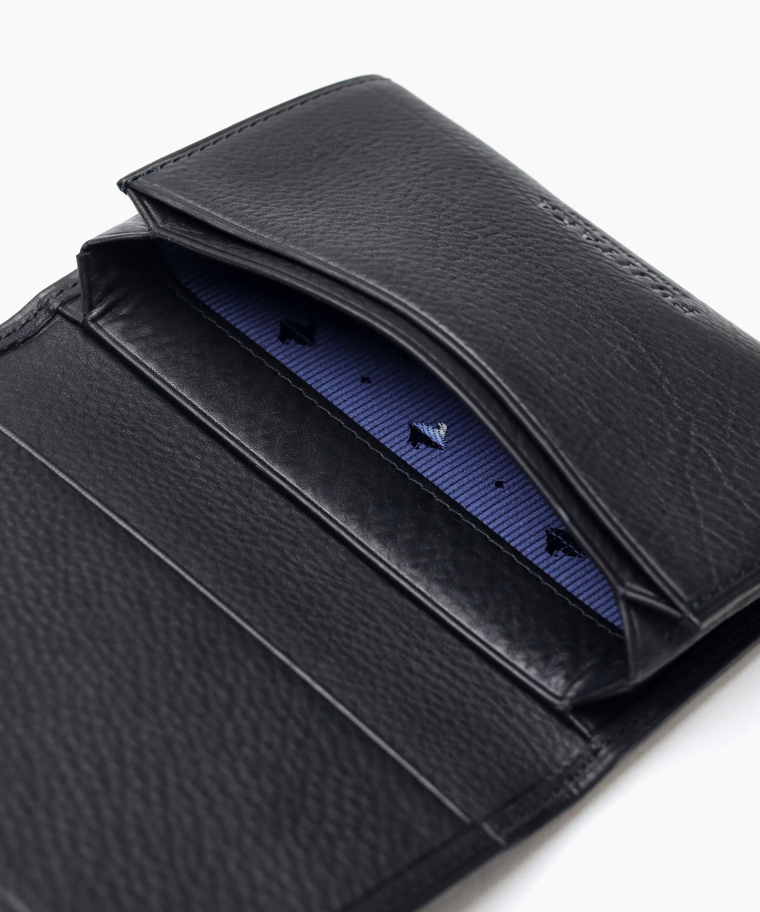 カードポケットが3つあり、メインルームには複数枚名刺を収納することが可能です。内装に使用されているオリジナルのジャガード生地がポイントとなっています。また、マチ部分は、アコーディオンの様にマチが外側に折られた風琴マチを採用。薄くすっきりとしたフォルムで、名刺をマチに引っかかることなく取り出すことが可能です。