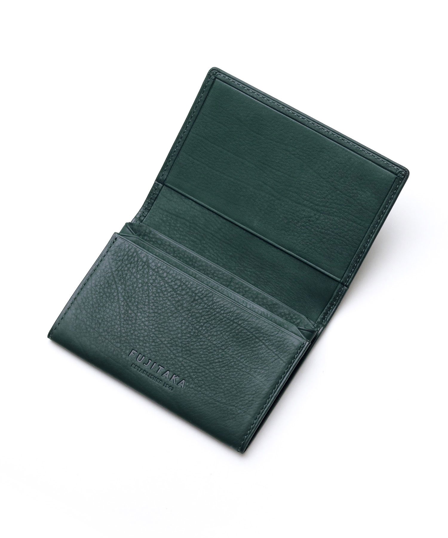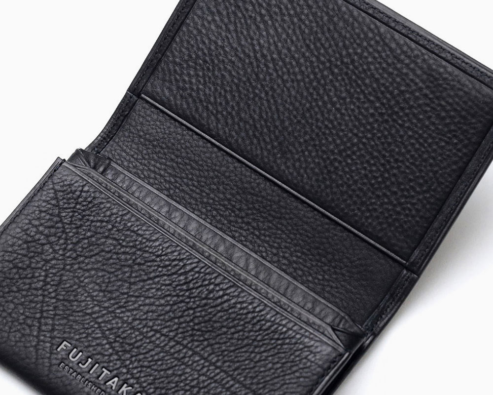 内外共に、牛革の中で最も上質な素材とされる生後6か月以内の子牛の革”カーフ”を使用した、FUJITAKAの名刺入れ。肌のキメが細かくて柔らかく、手に吸い付くようなやさしい感触が魅力です。顔料等を使用しない素上げのため、革本来の質感や表情を存分に味わうことができます。外装にはブランドアイコンのブローチを、内装の一部にはオリジナルのジャガード生地を使用しています。