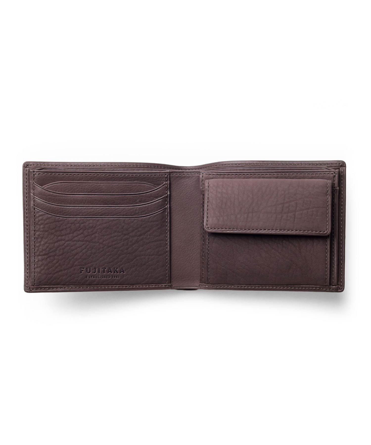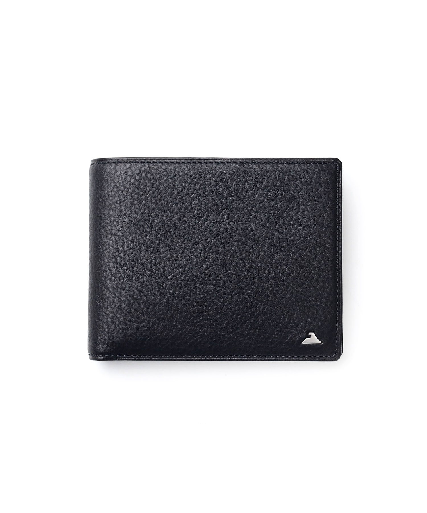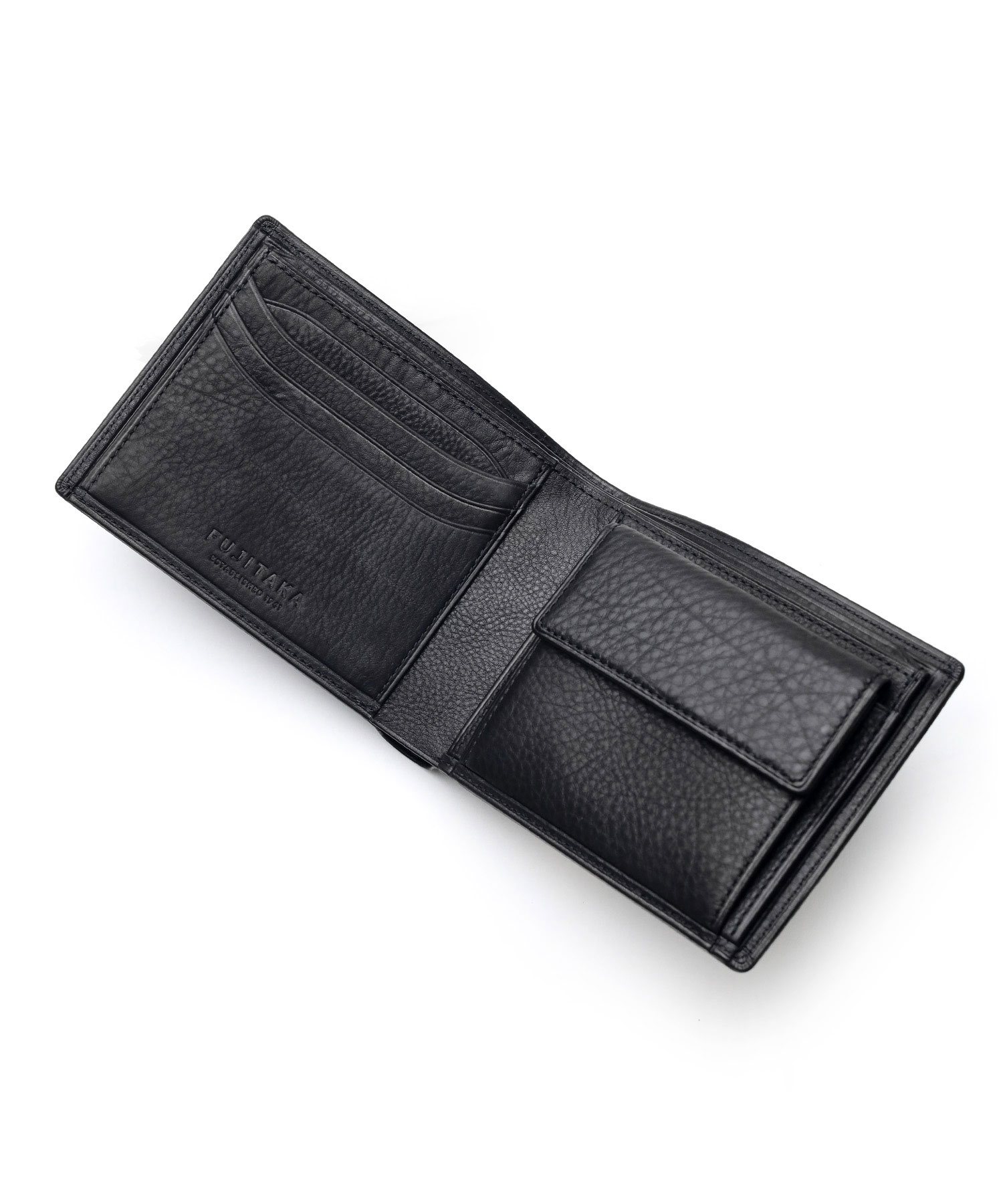 タッチ感の良いカーフレザーを使用した、FUJITAKAのベーシックな二つ折り財布。ブランドアイコンのブローチがアクセントとなっており、全体的にすっきりとシンプルなデザインながらも、さり気ないブランド表現で大人の遊び心を演出しています。