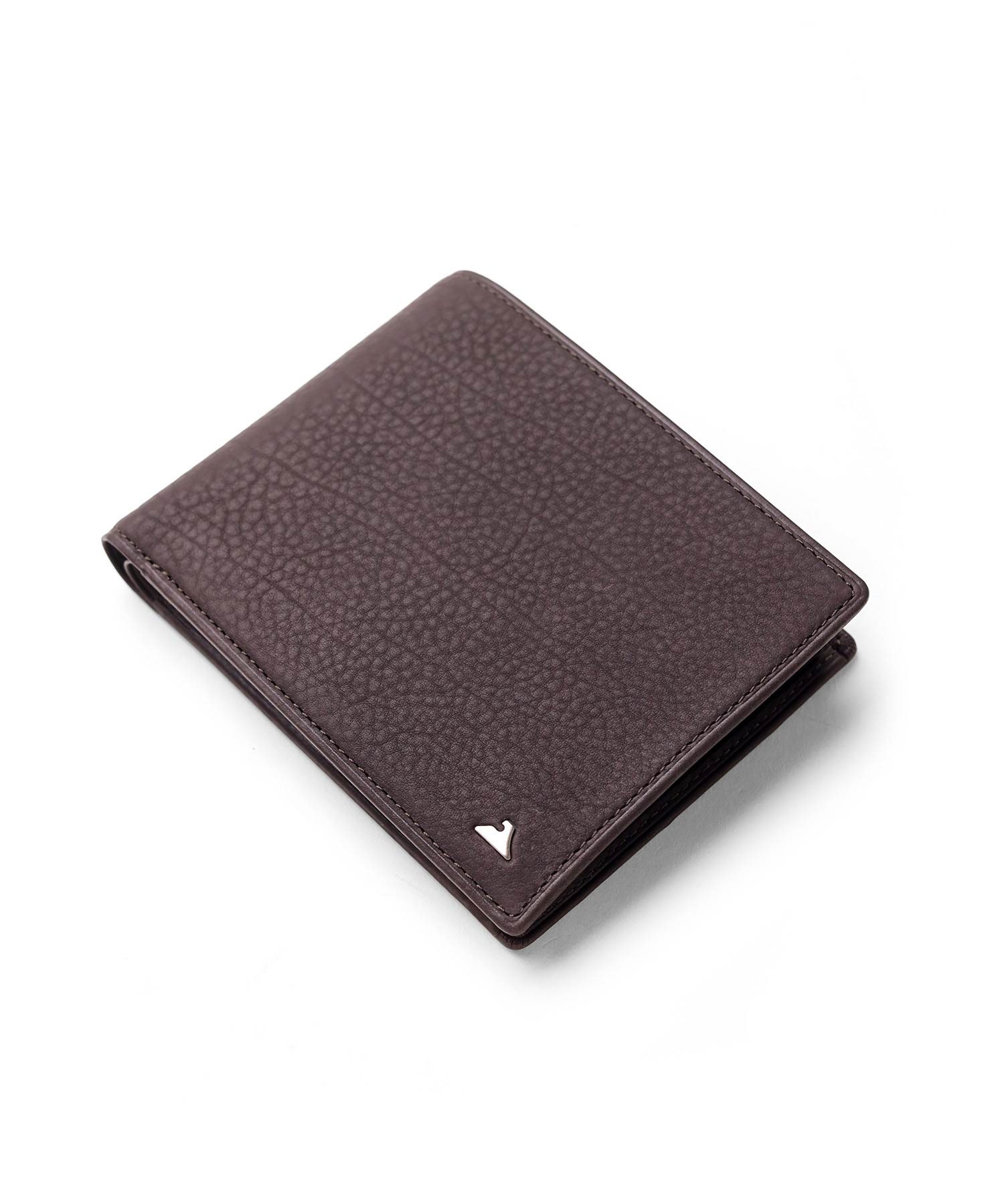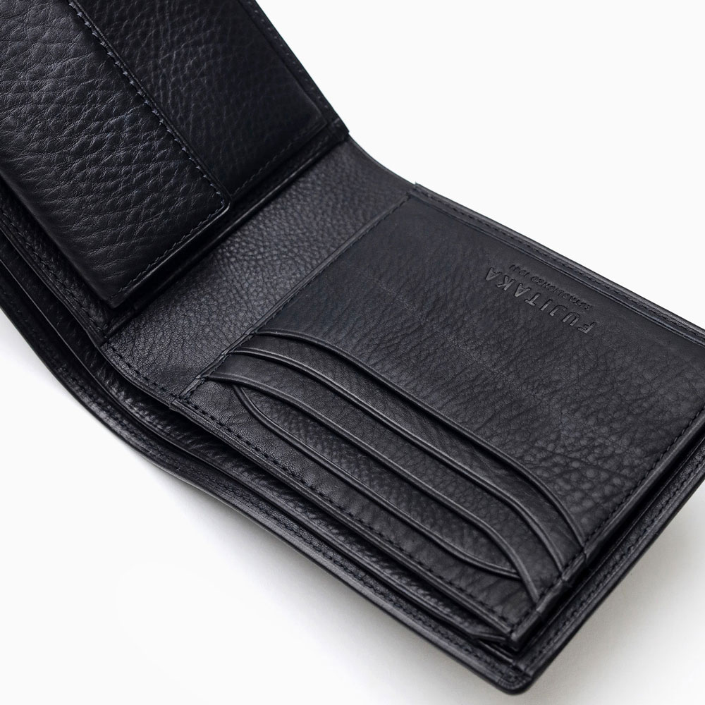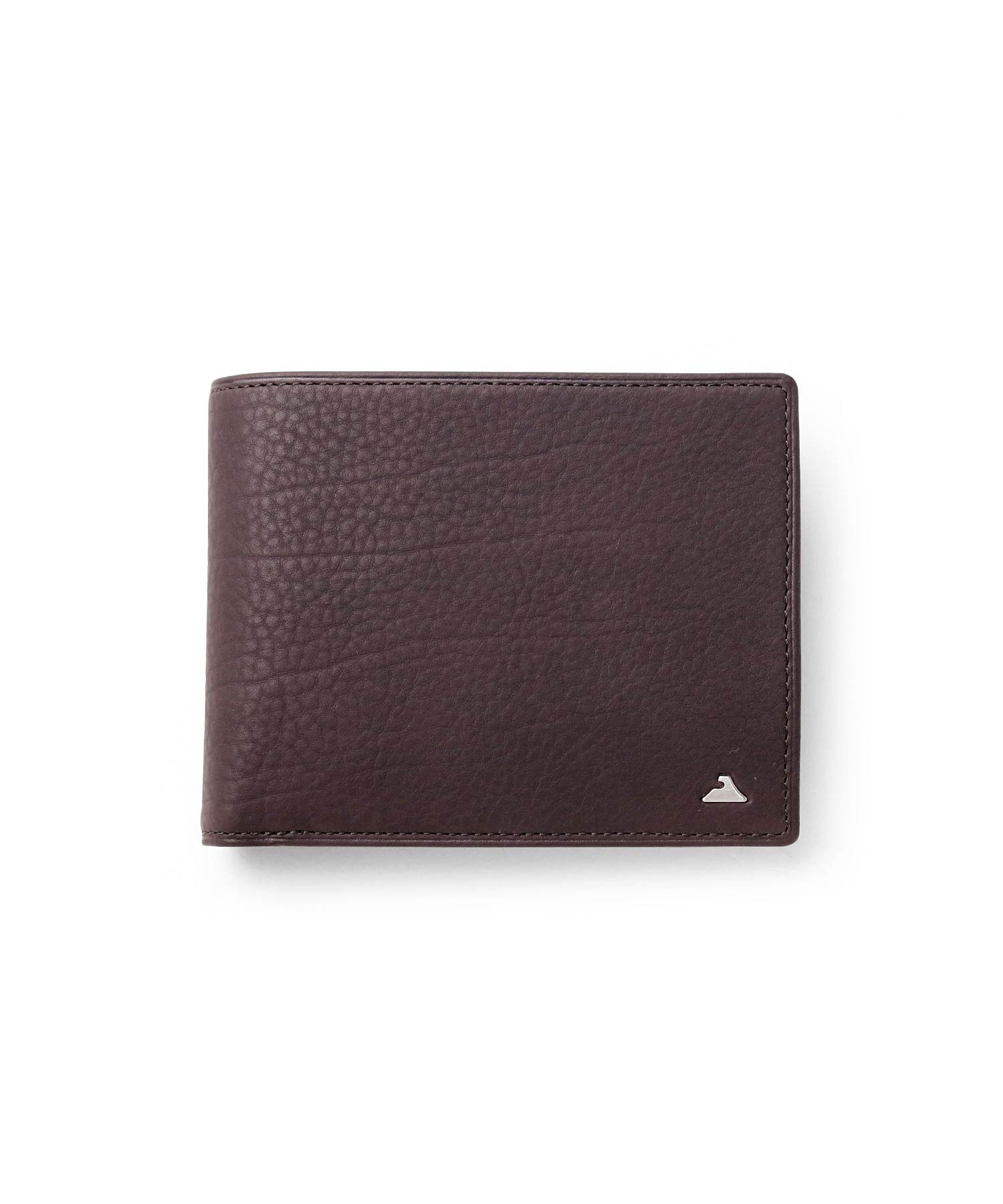 タッチ感の良いカーフレザーを使用した、FUJITAKAのベーシックな二つ折り財布。ブランドアイコンのブローチがアクセントとなっており、全体的にすっきりとシンプルなデザインながらも、さり気ないブランド表現で大人の遊び心を演出しています。