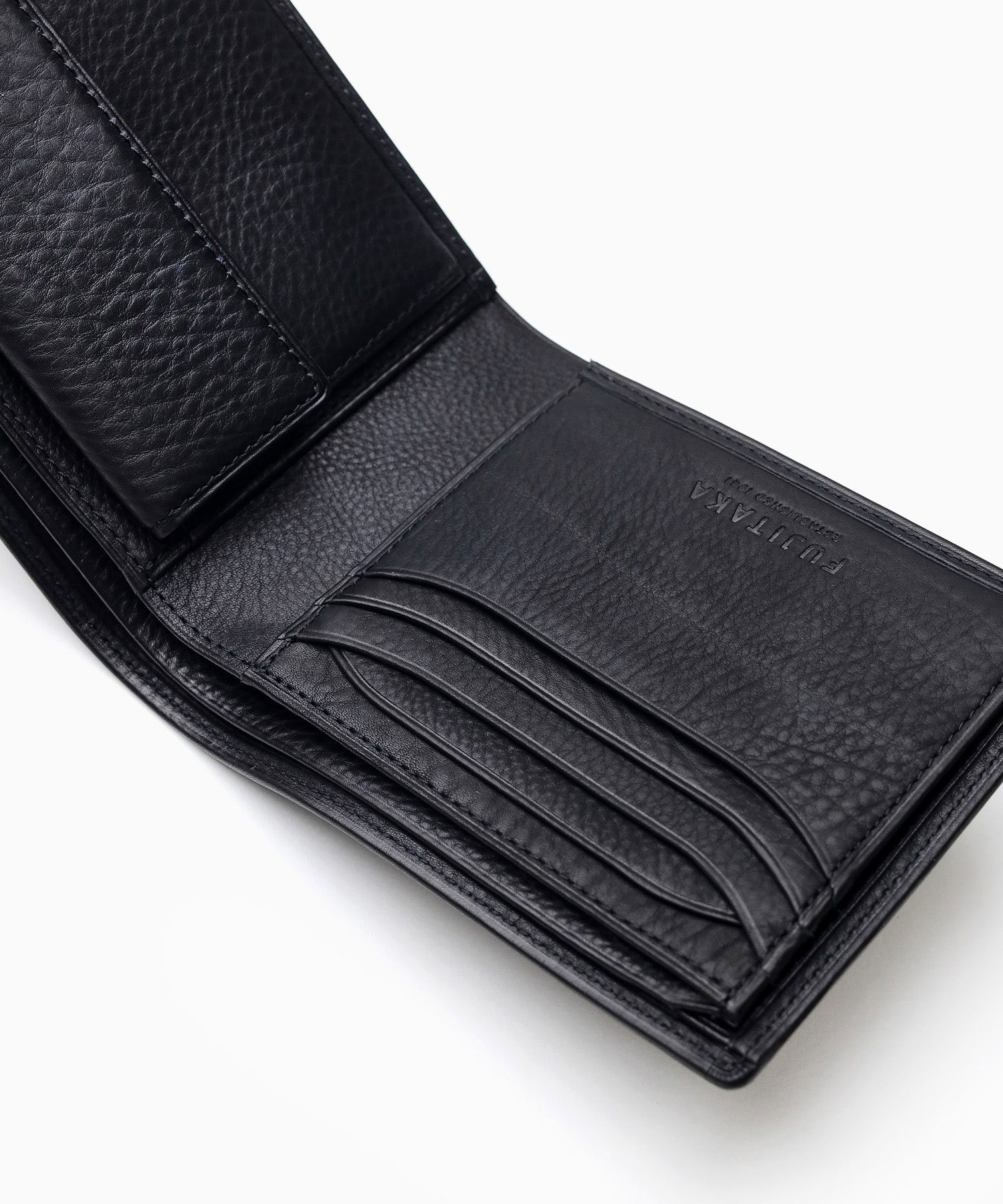 タッチ感の良いカーフレザー使用の ベーシックな二つ折り財布