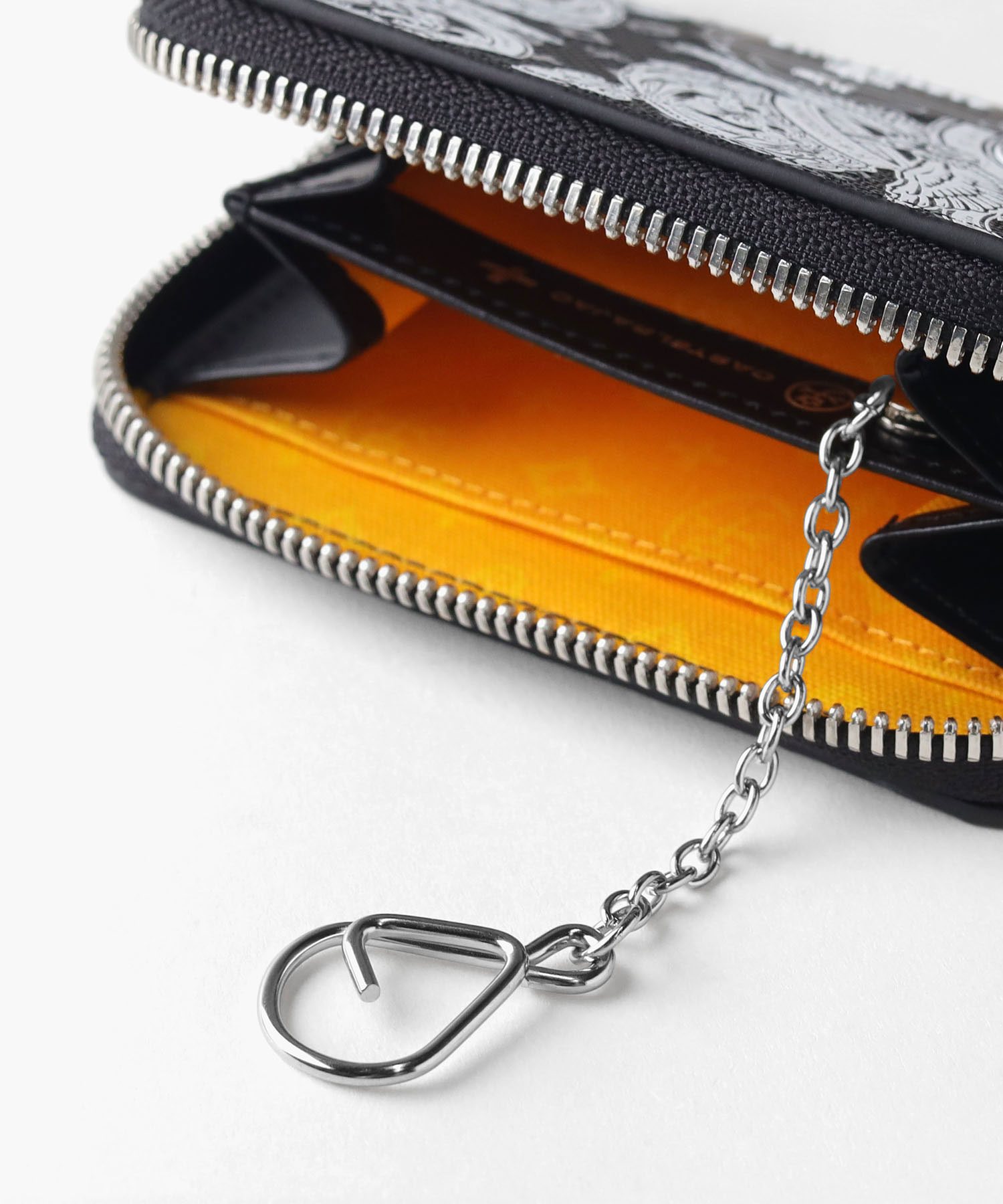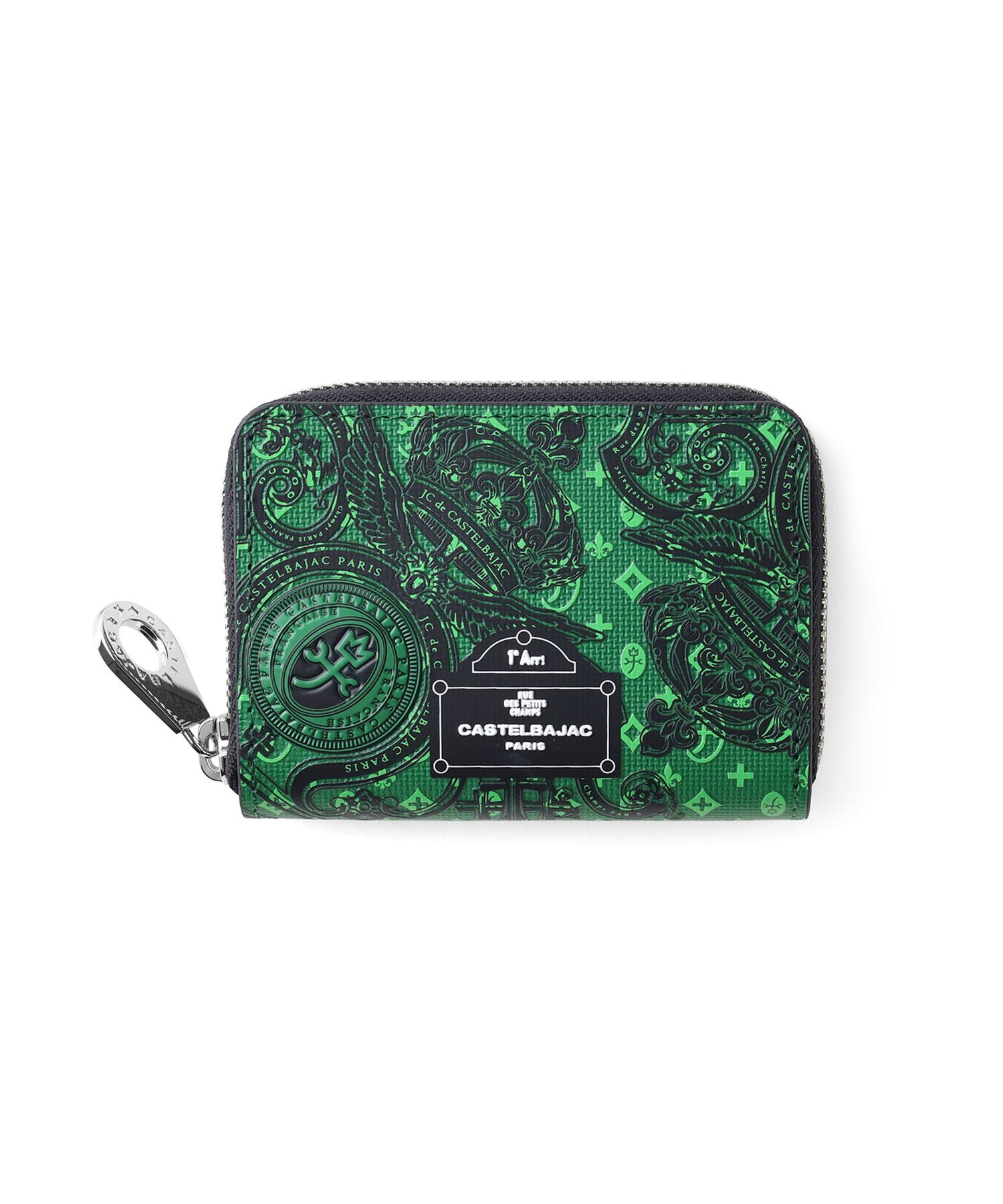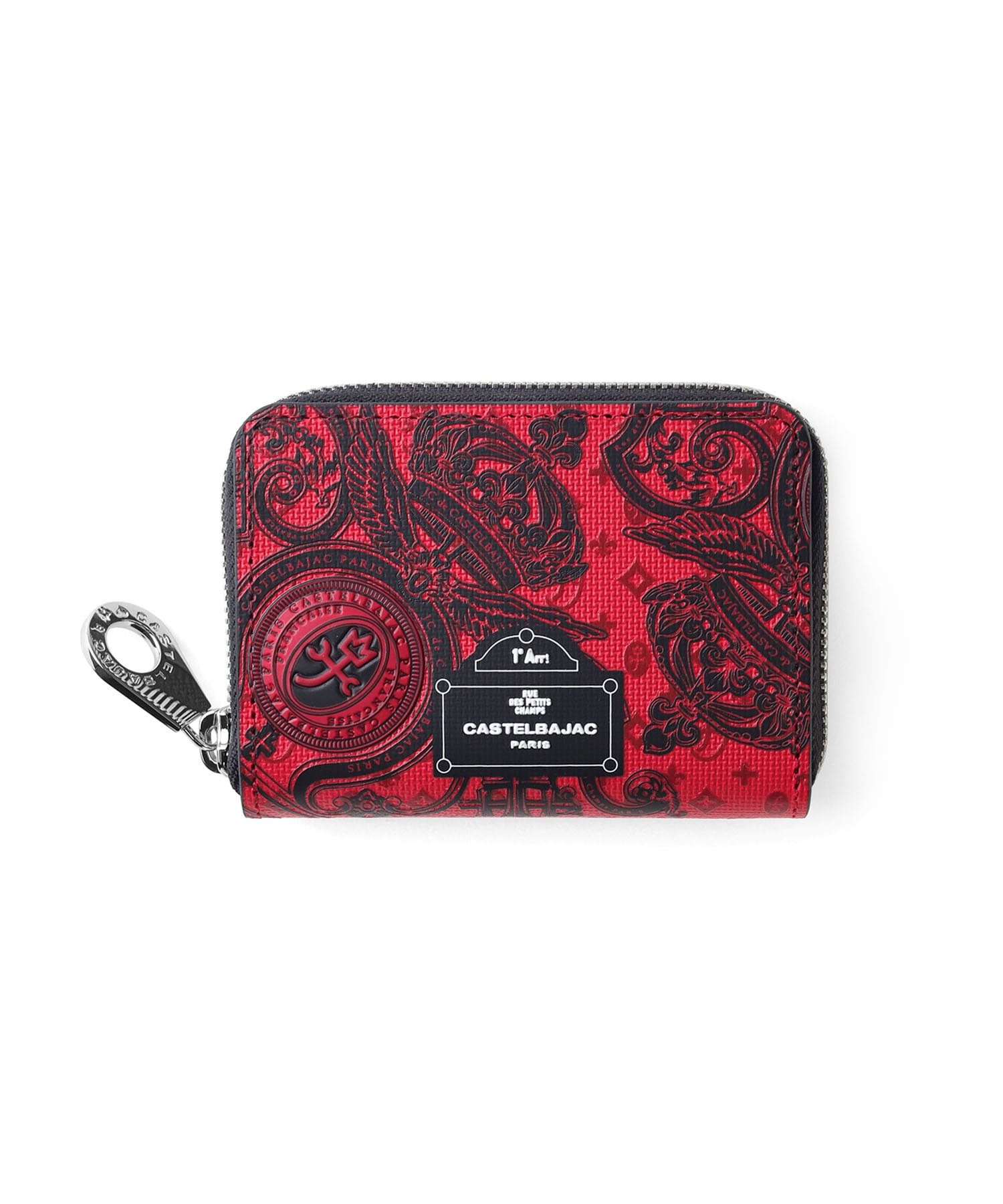 立体プリントが華やかなカステルバジャックの小銭入れ。フランス・ヴェルサイユ宮殿の黄金に輝く「王の門」からインスピレーションされたアートを立体プリントで表現しました。よく見るとクロスやハトなど、カステルバジャックらしいモチーフが隠れています。