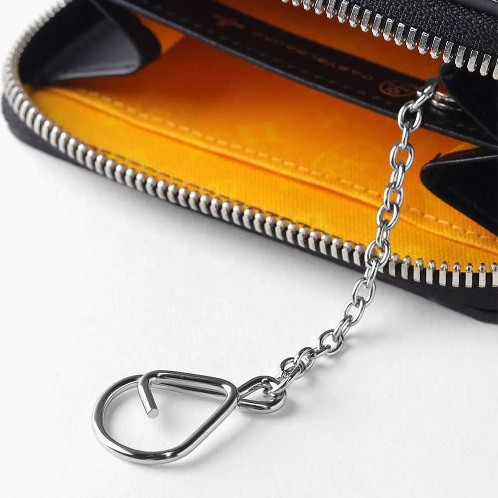 仕切り付きで使いやすいコンパクトな小銭入れです。内側にはカードポケットが2つと取り外し可能なキーチェーンがあります。