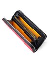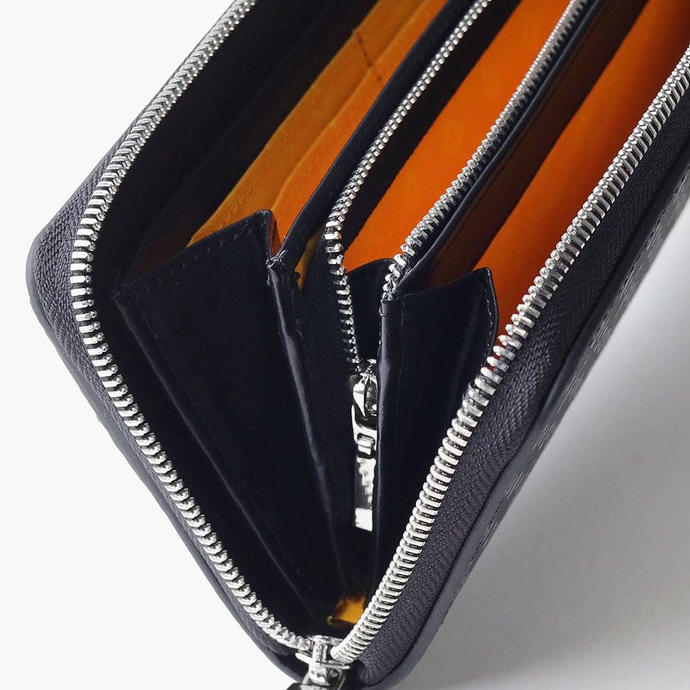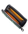 内側にはカード段が12あり、札入れは2室構造で紙幣を分けて収納可能です。さらにフリーポケットが2つあり、レシートやチケット類の収納にも便利です。小銭入れにはL字ファスナーを採用し、大きく開いて中が見やすく硬貨をスムーズに出し入れできます。