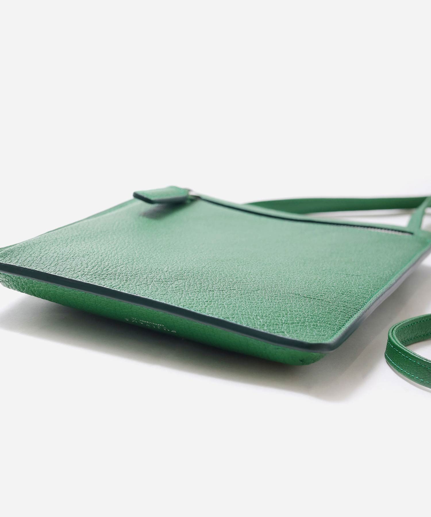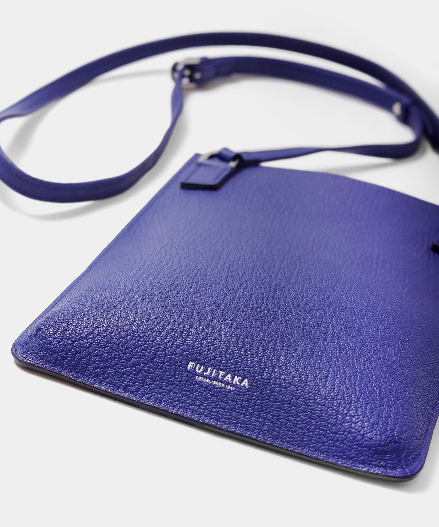 フランスの高級ゴートレザーを贅沢に使用したFUJITAKA シェーブルシリーズの総革張り合わせの薄型スマホショルダー。内装には贅沢にギリシャ産のラムレザーを張り合わせで使用した贅沢な仕立てとなっております。コンパクトなお財布とスマートフォンが丁度良く入るサイズ感です。