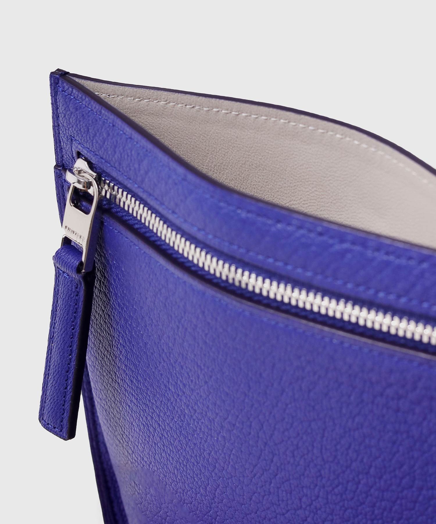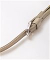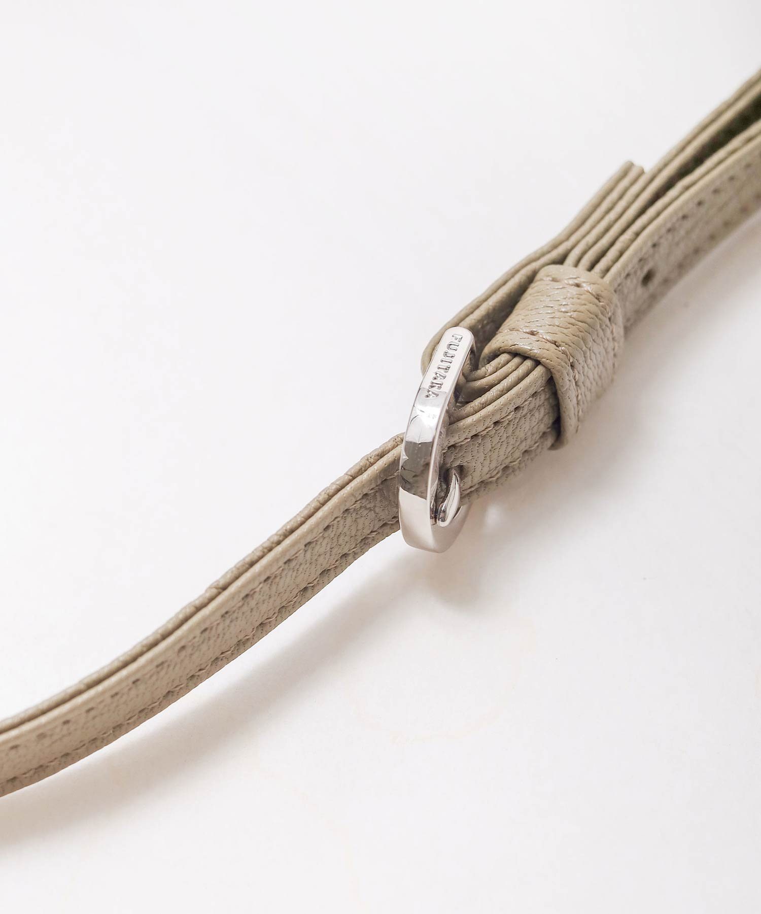 本体革はフランスで創業100年を誇り、海外の有名メゾンでも使用されているゴートレザーを使用。世に出回るゴートレザーはクロム鞣しが大半ですが、同タンナーのものは手間のかかるタンニン鞣しで仕上げることで肉厚でコシのある仕上がりが特徴です。またタンニン鞣しの為、使い込むことでツヤの経年変化が楽しめます。