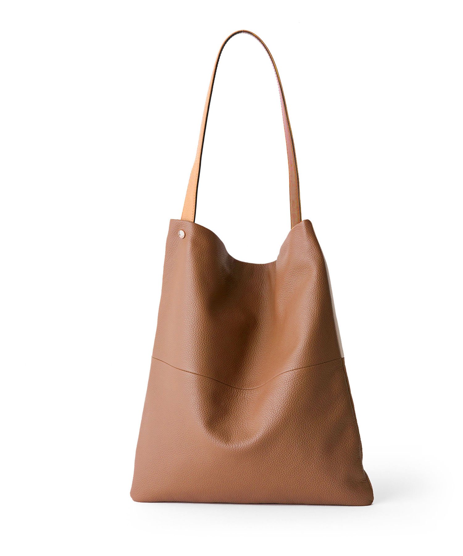 実用性のあるA4サイズで、書類等の収納も可能な大きさです。内側には小物が収納できるポケットが2つあります。メインコンパートメントはマグホックで留めることができるため、開いたままにならず安心です。折りたたんで持ち運べるため、旅行先でのサブバッグとしても活躍します。