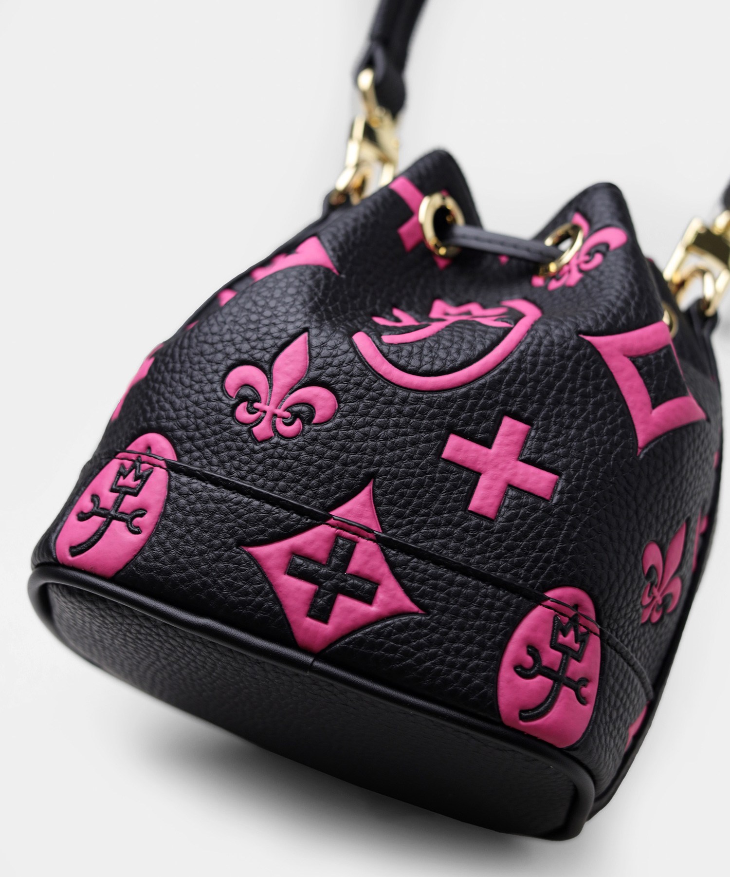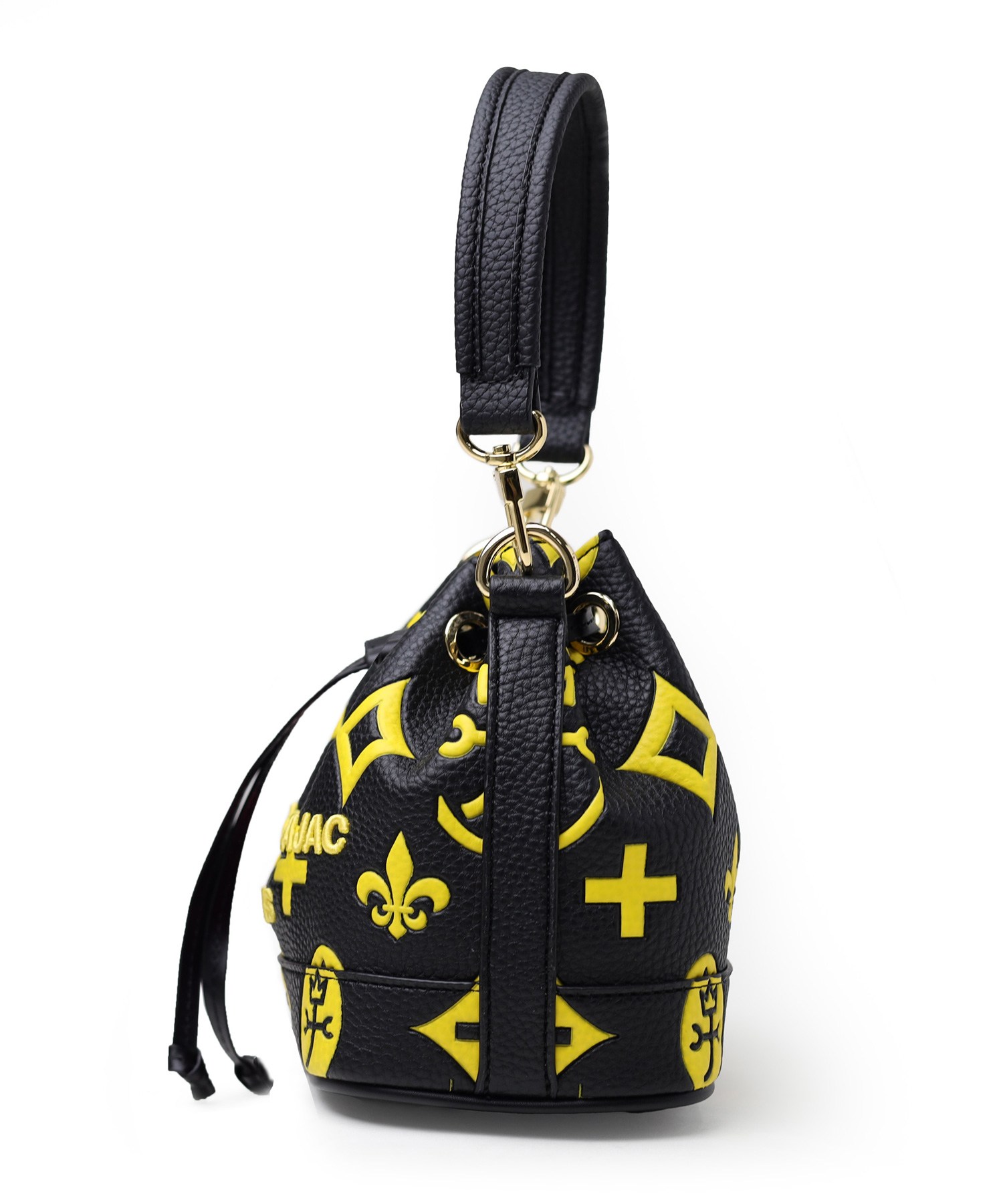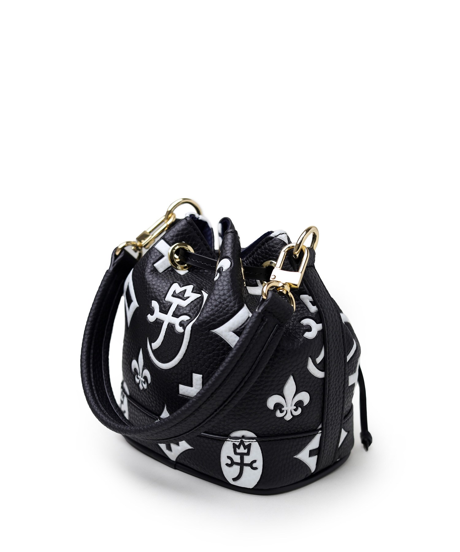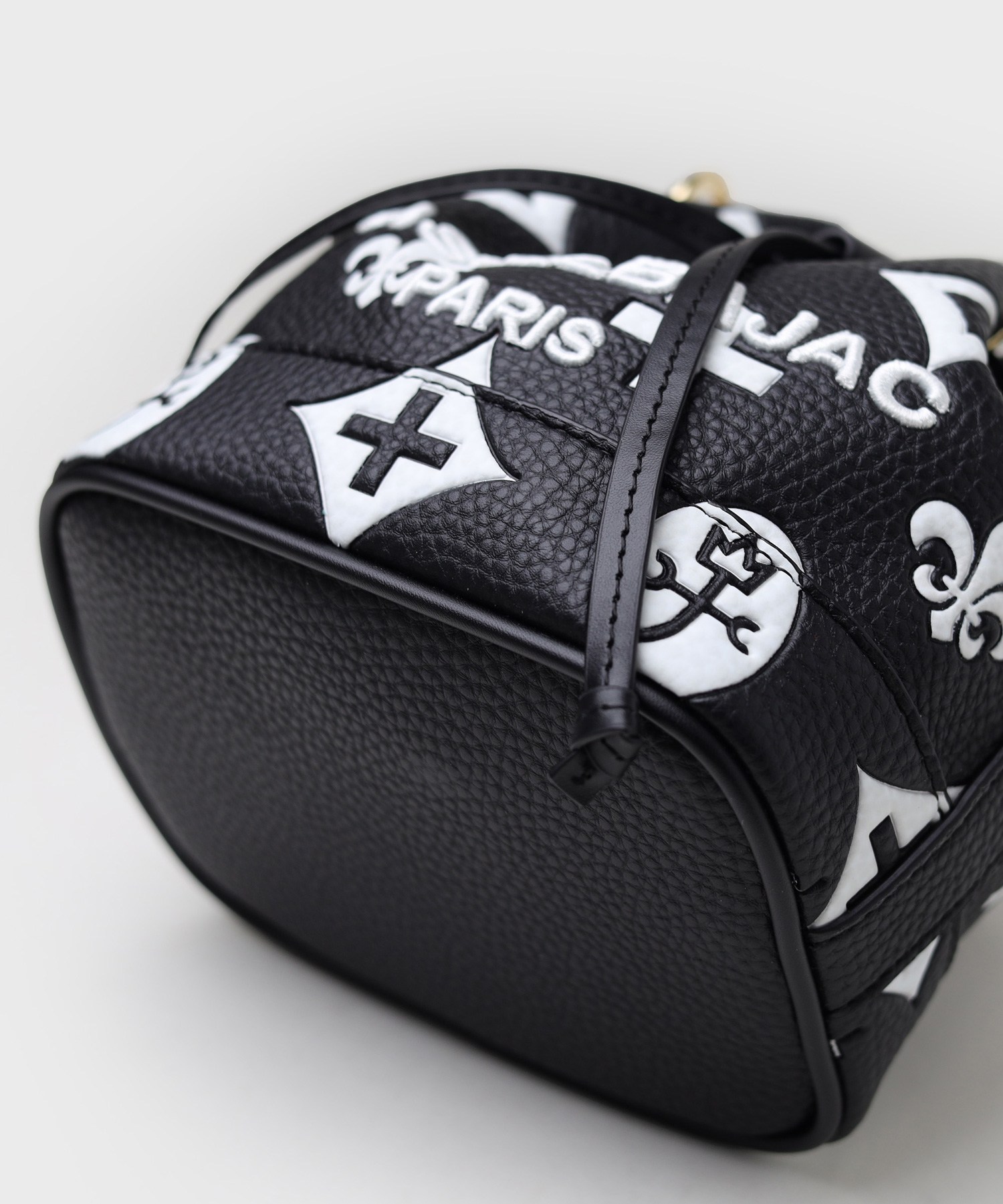 カステルバジャックのモノグラムを大胆にプリントした、巾着バッグです。"ちょい派手"をイメージした大人の遊び心あるデザインに仕上げました。