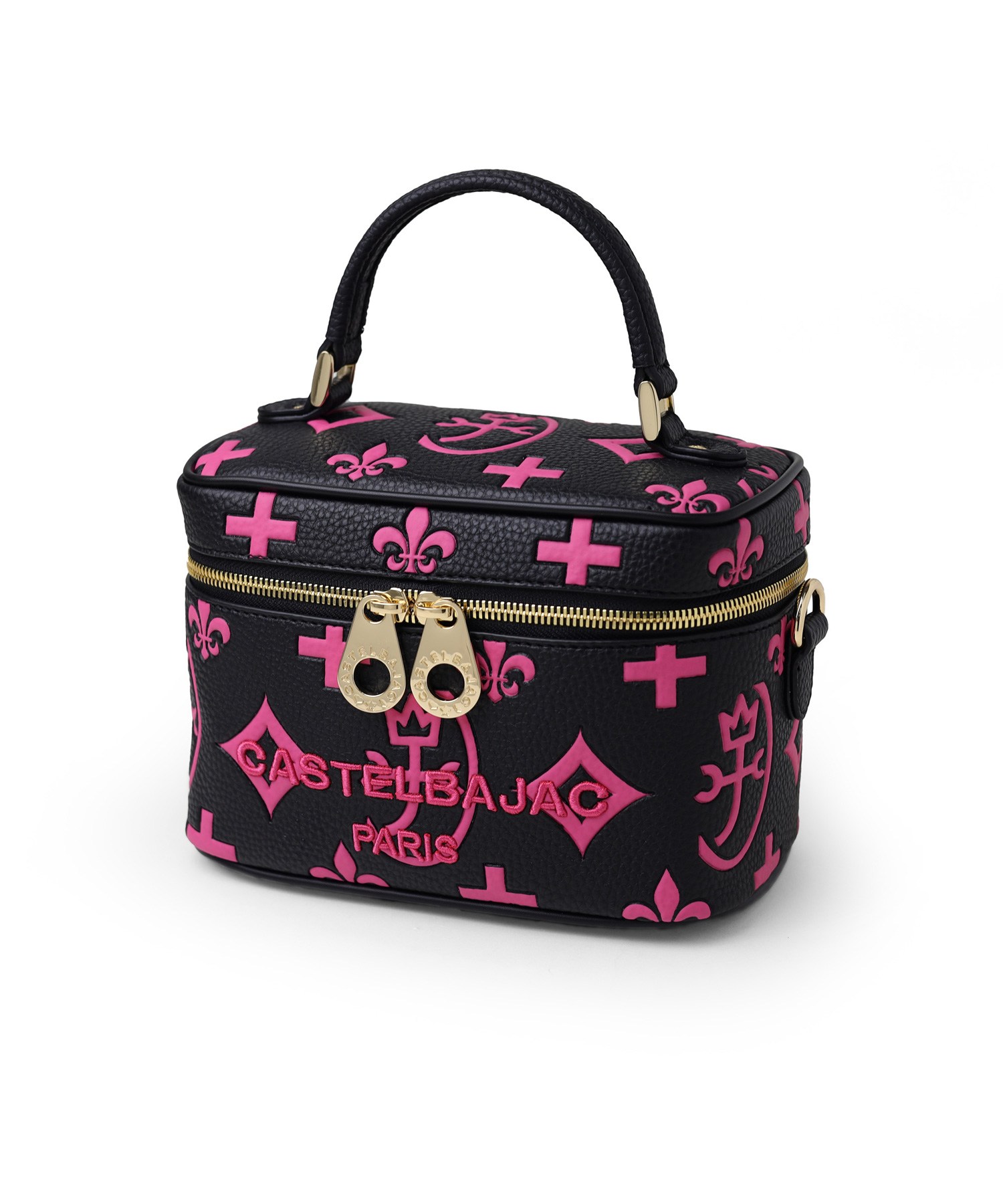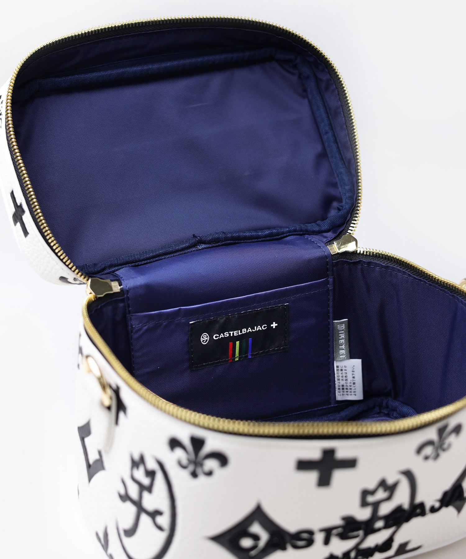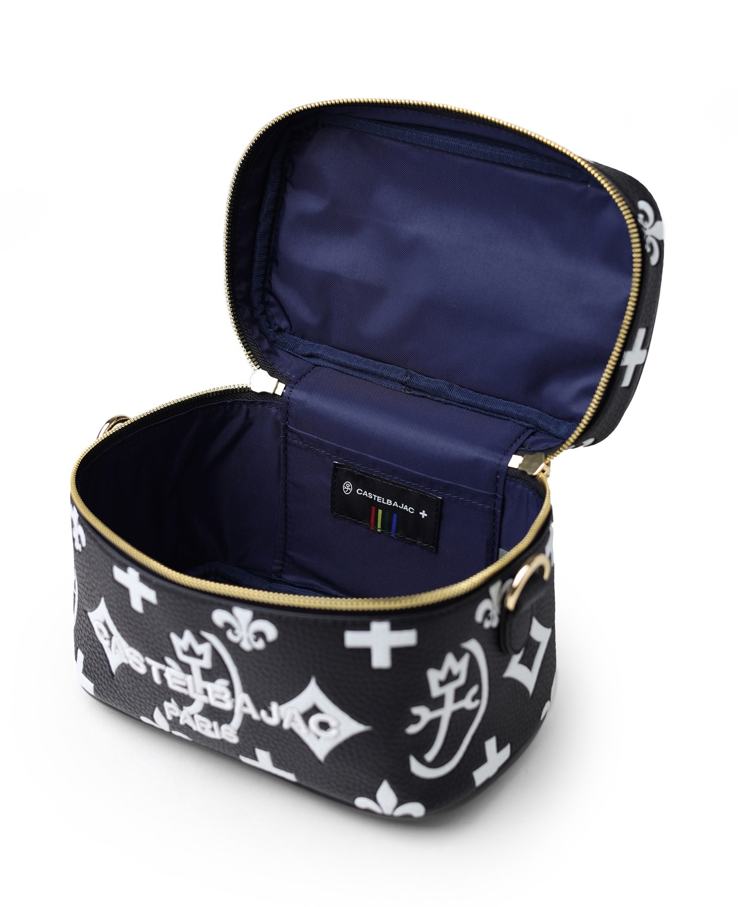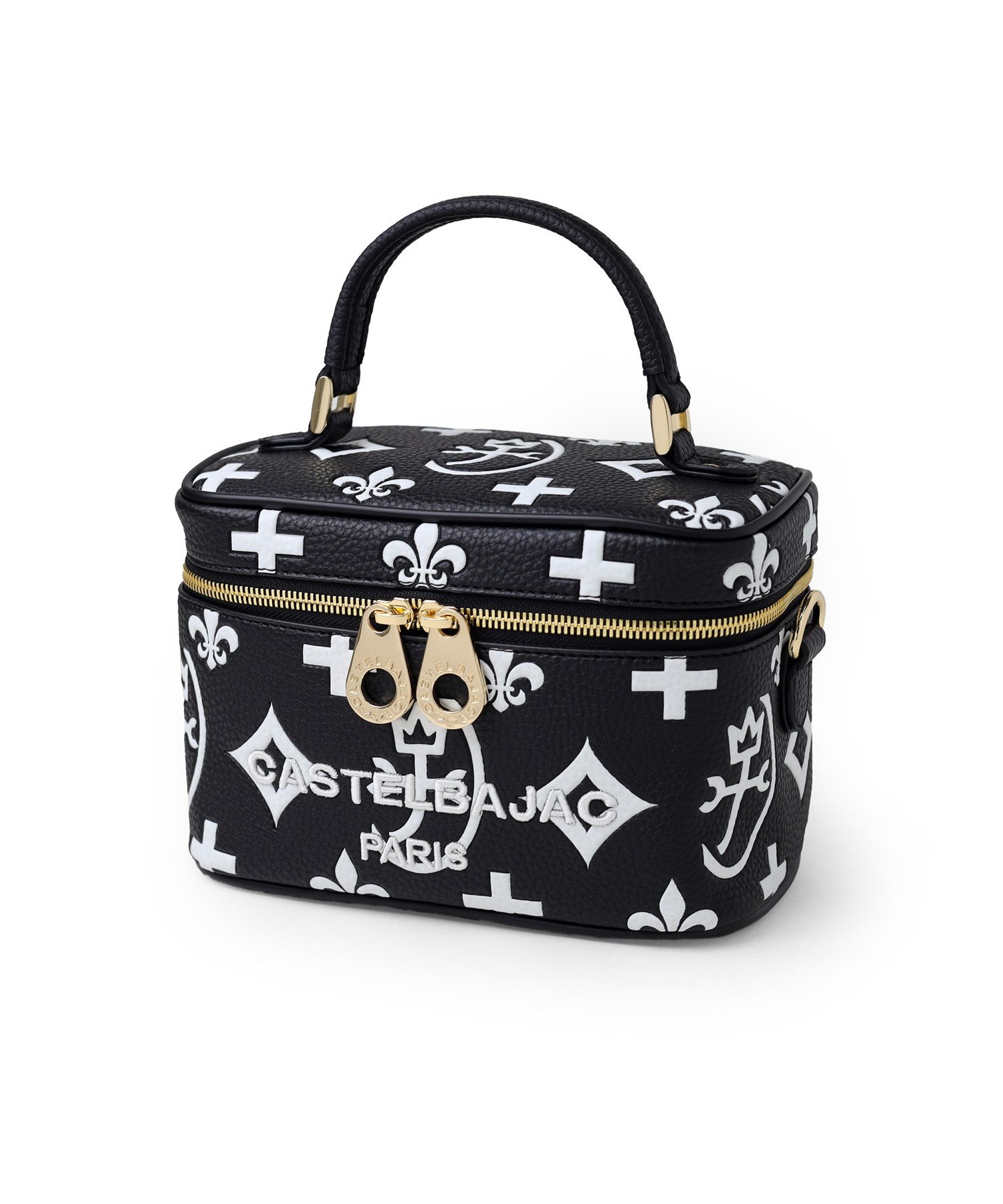 カステルバジャックのモノグラムを大胆にプリントした、バニティーバッグです。"ちょい派手"をイメージした大人の遊び心あるデザインに仕上げました。