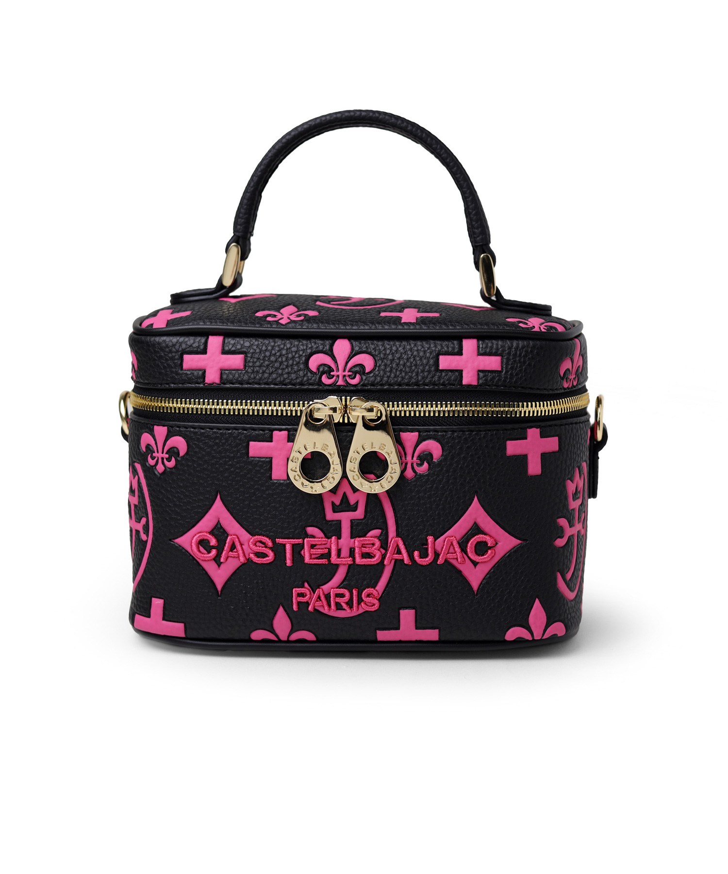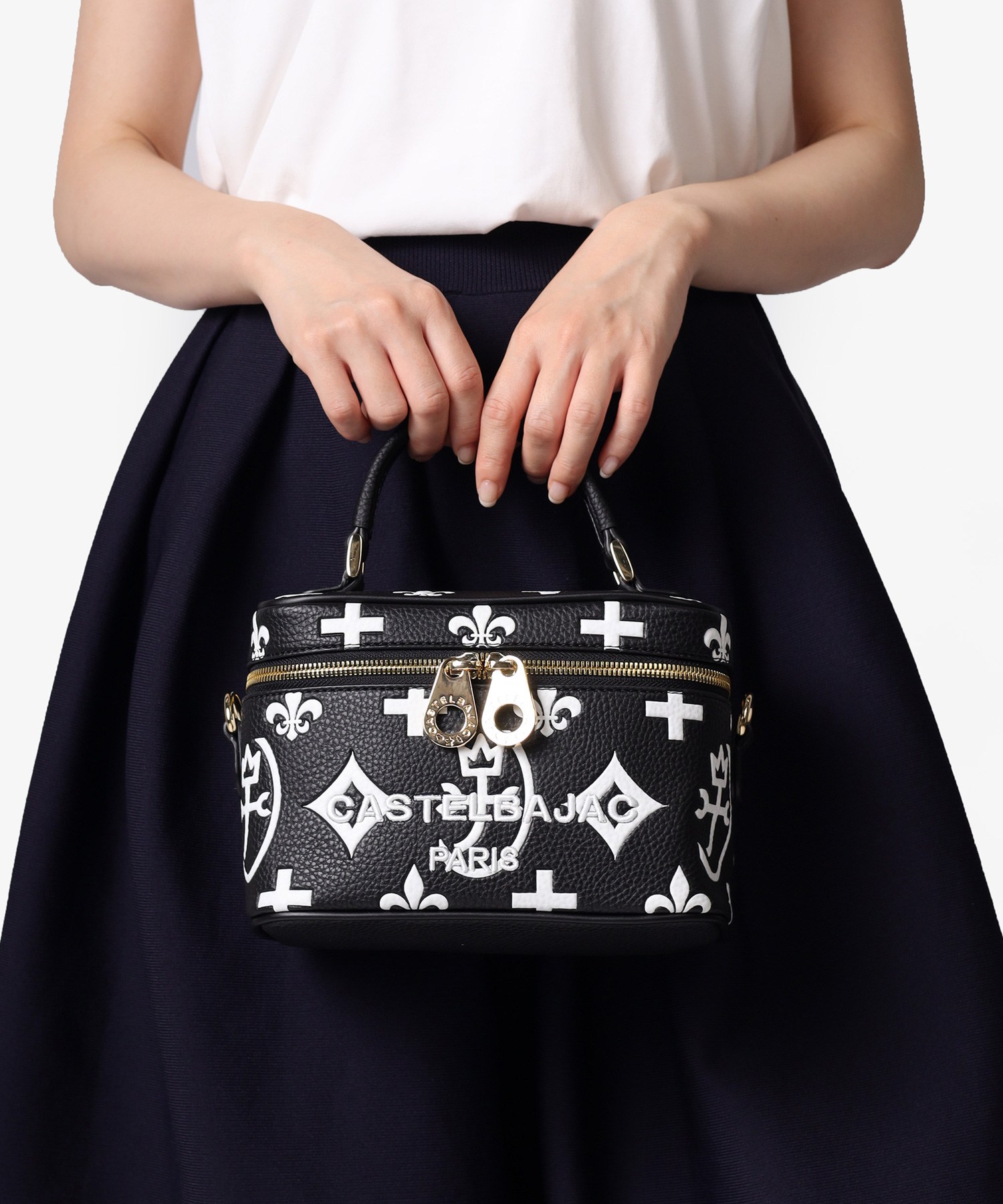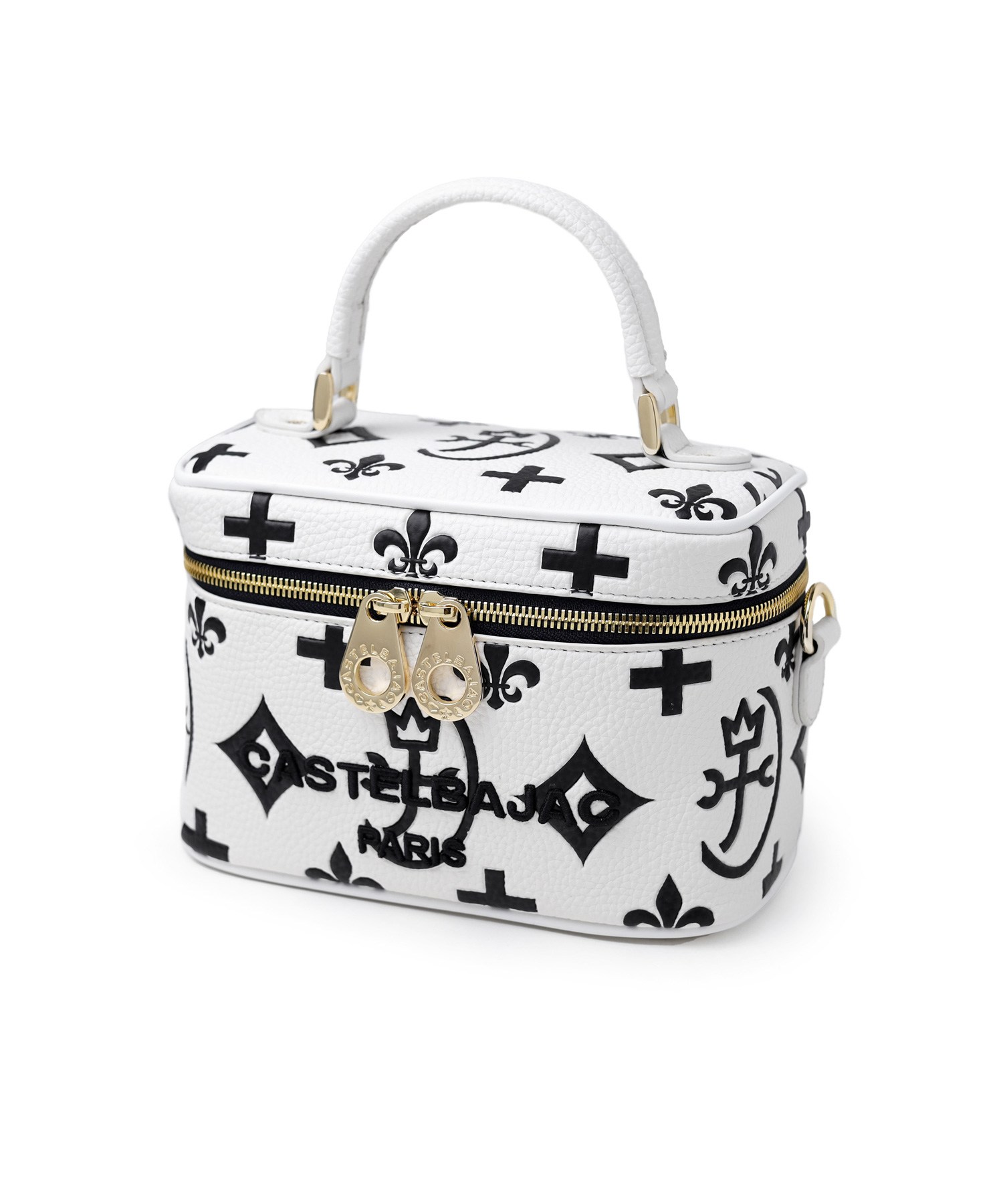 カステルバジャックのモノグラムを大胆にプリントした、バニティーバッグです。"ちょい派手"をイメージした大人の遊び心あるデザインに仕上げました。