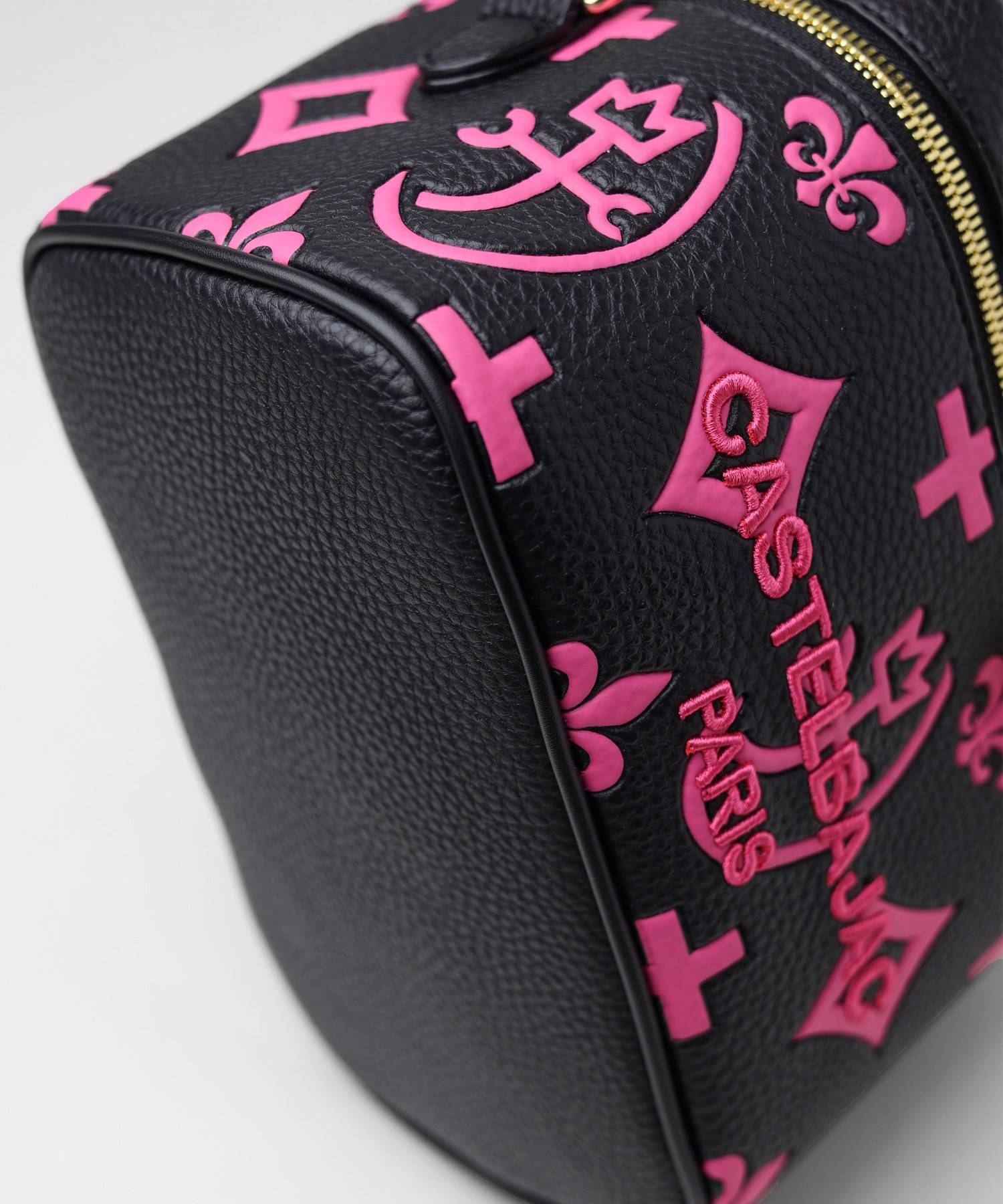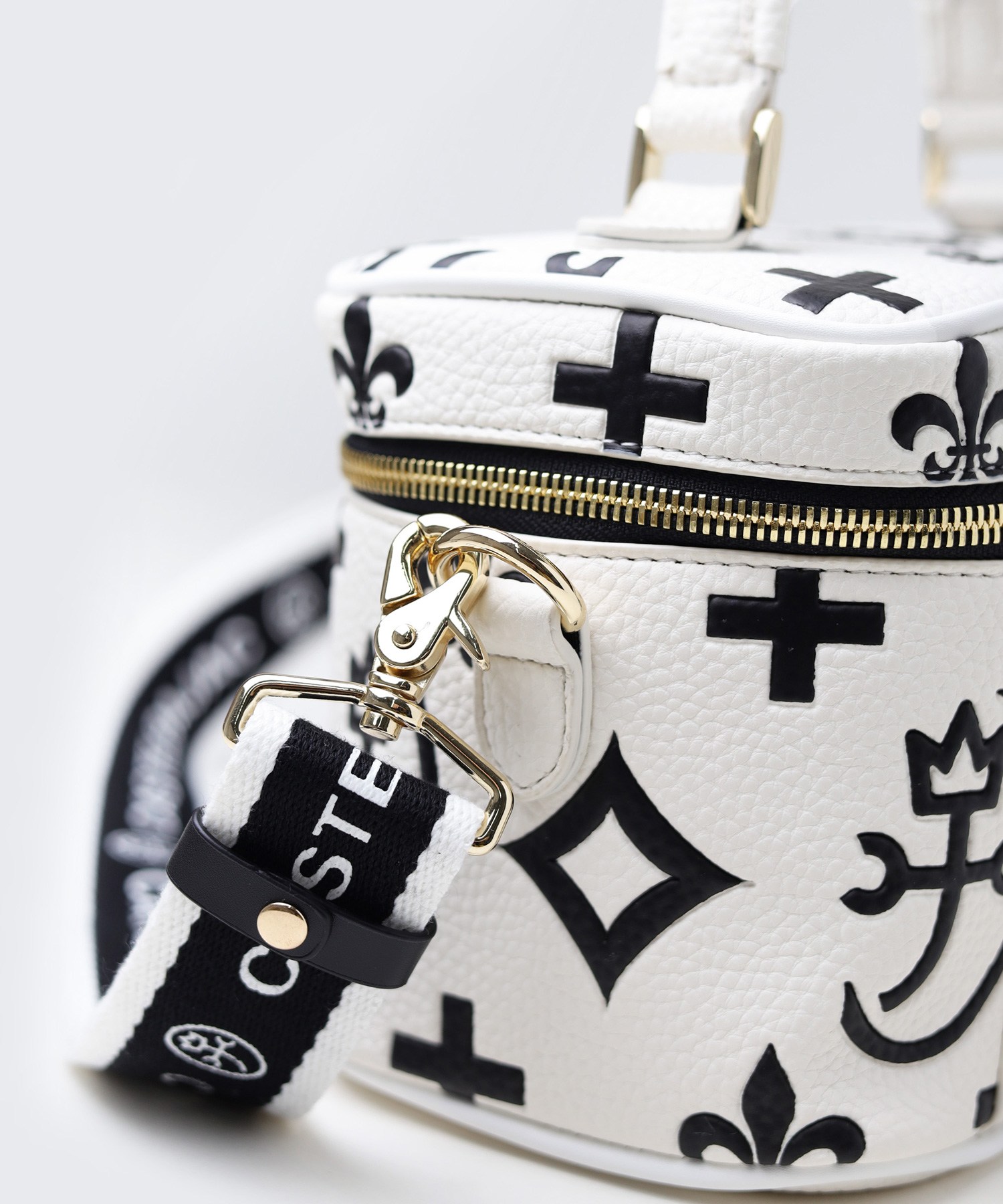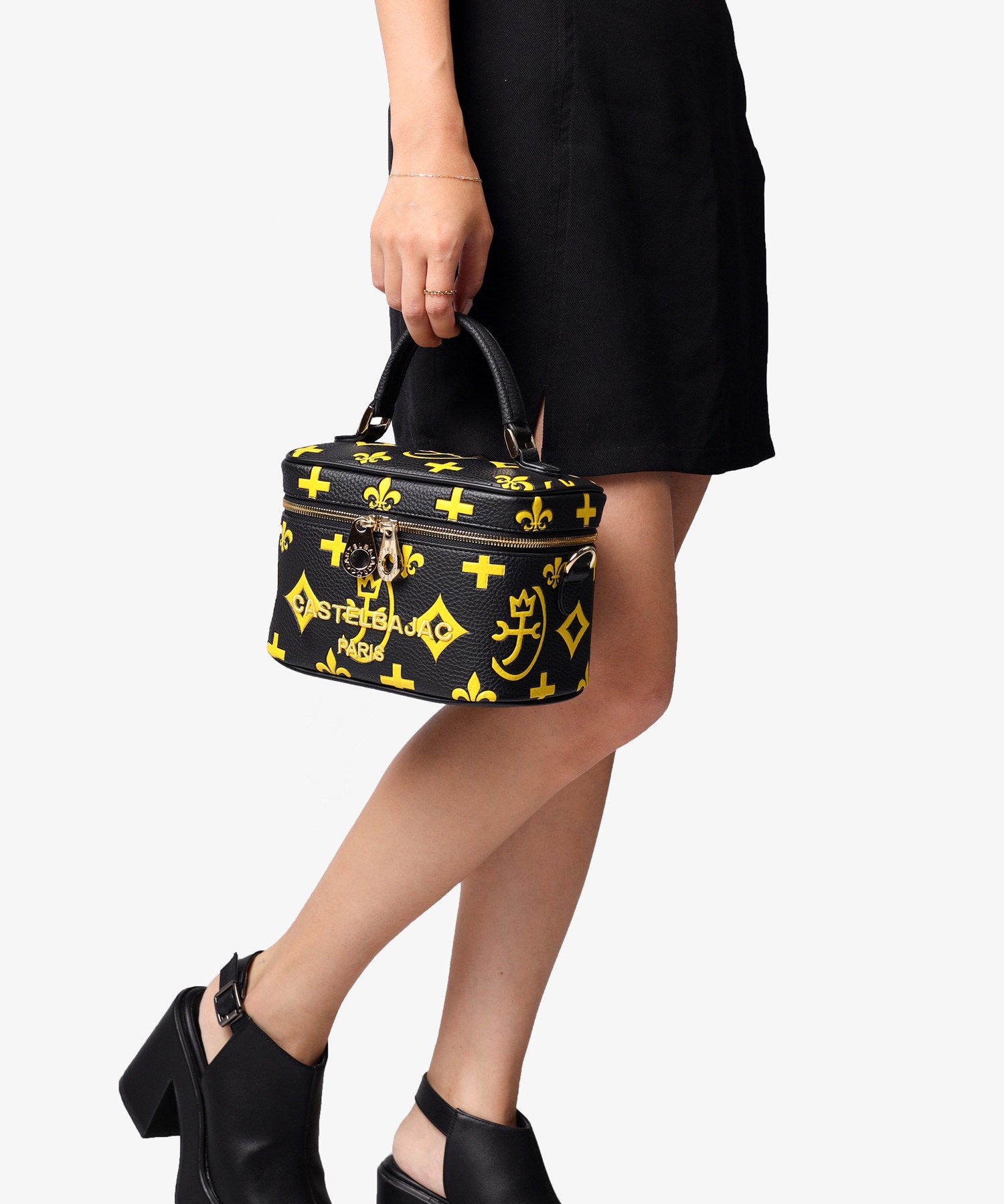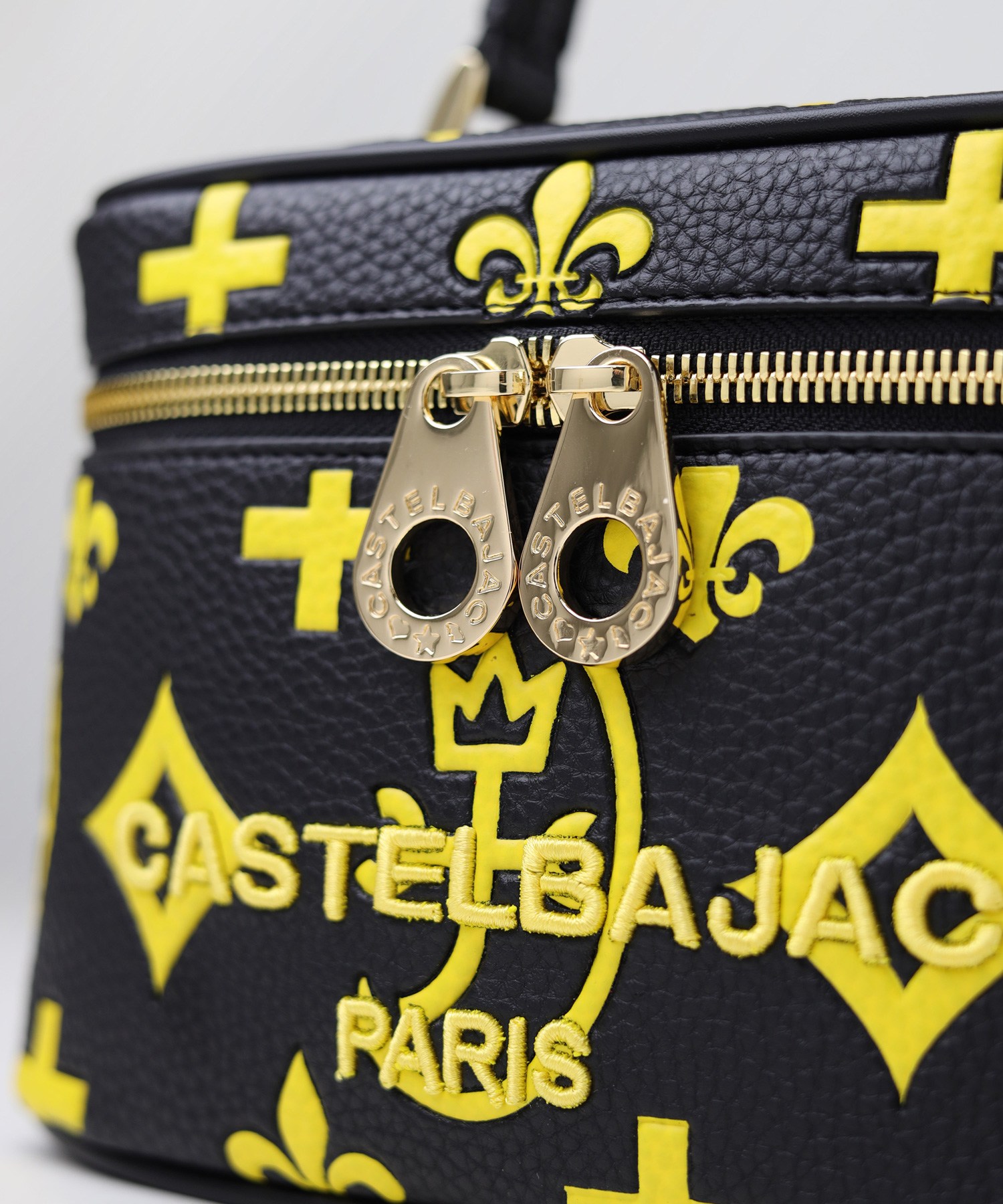 カステルバジャックのモノグラムを大胆にプリントした、バニティーバッグです。"ちょい派手"をイメージした大人の遊び心あるデザインに仕上げました。