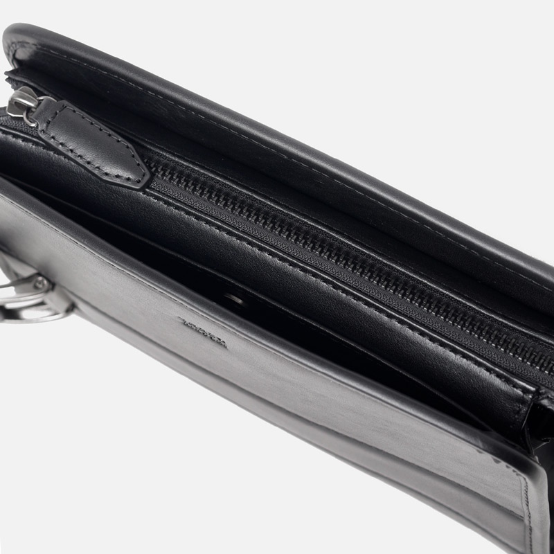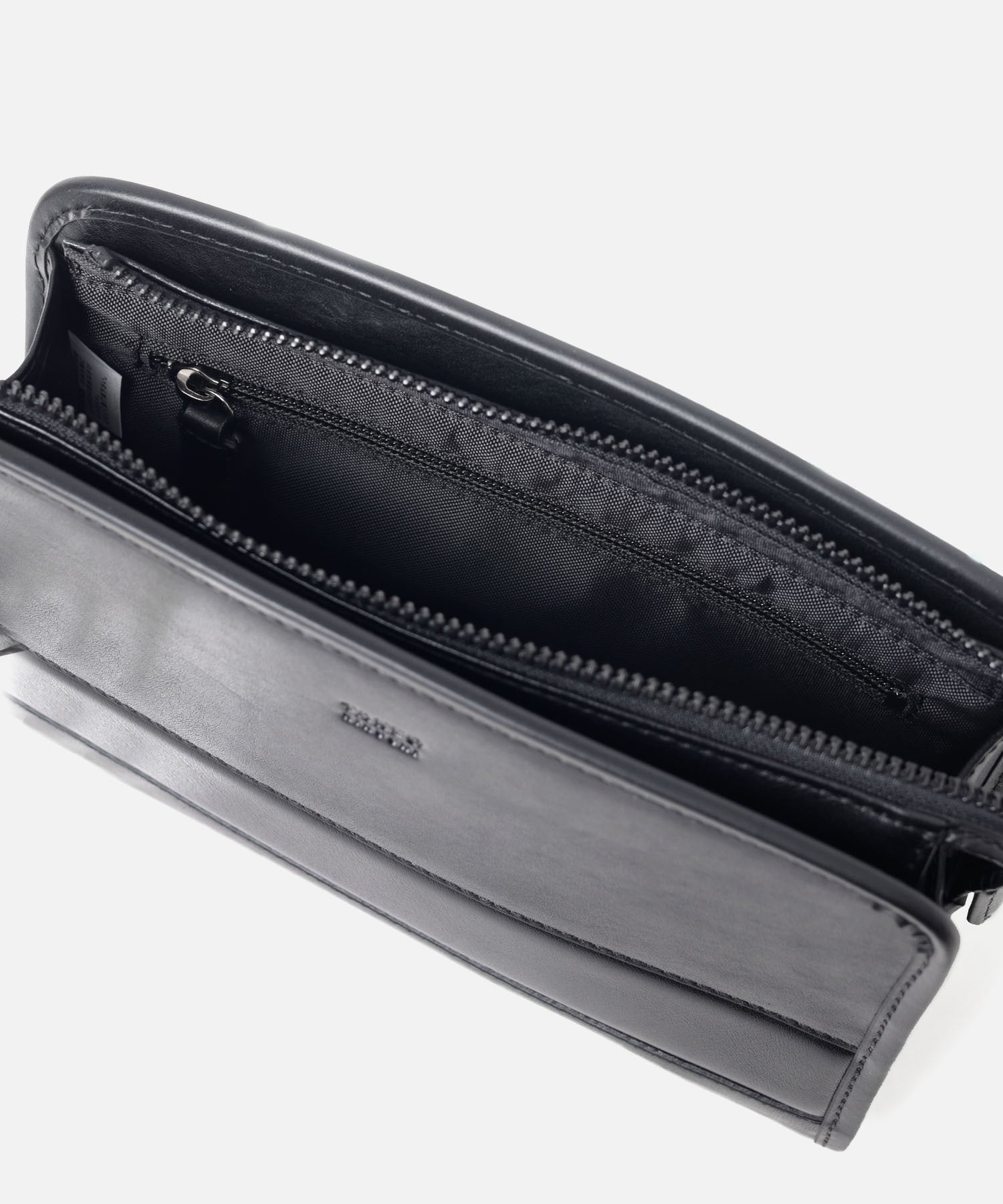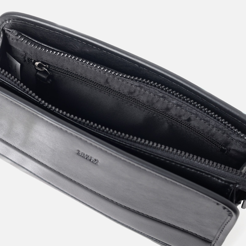 前面にあおりポケットがあり、内装にはファスナーポケットとマチ付きポケットが搭載されています。コンパクトながらもスッキリと荷物を収納できます。ラウンドファスナーがぴったり入るサイズ感のメンズポーチです。