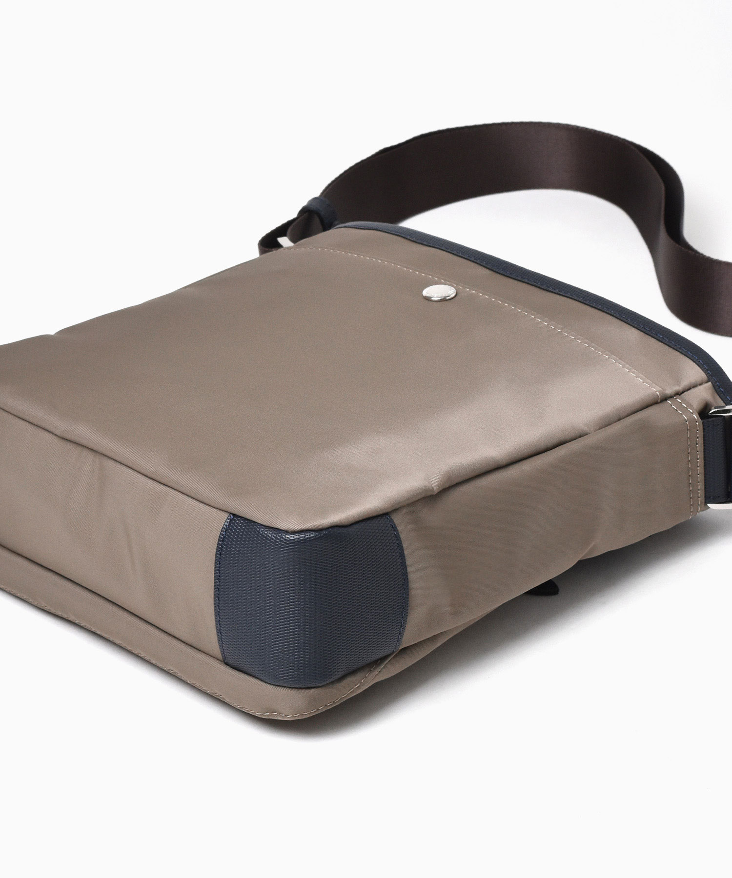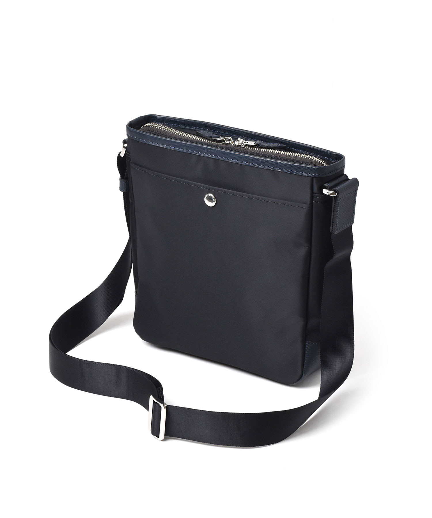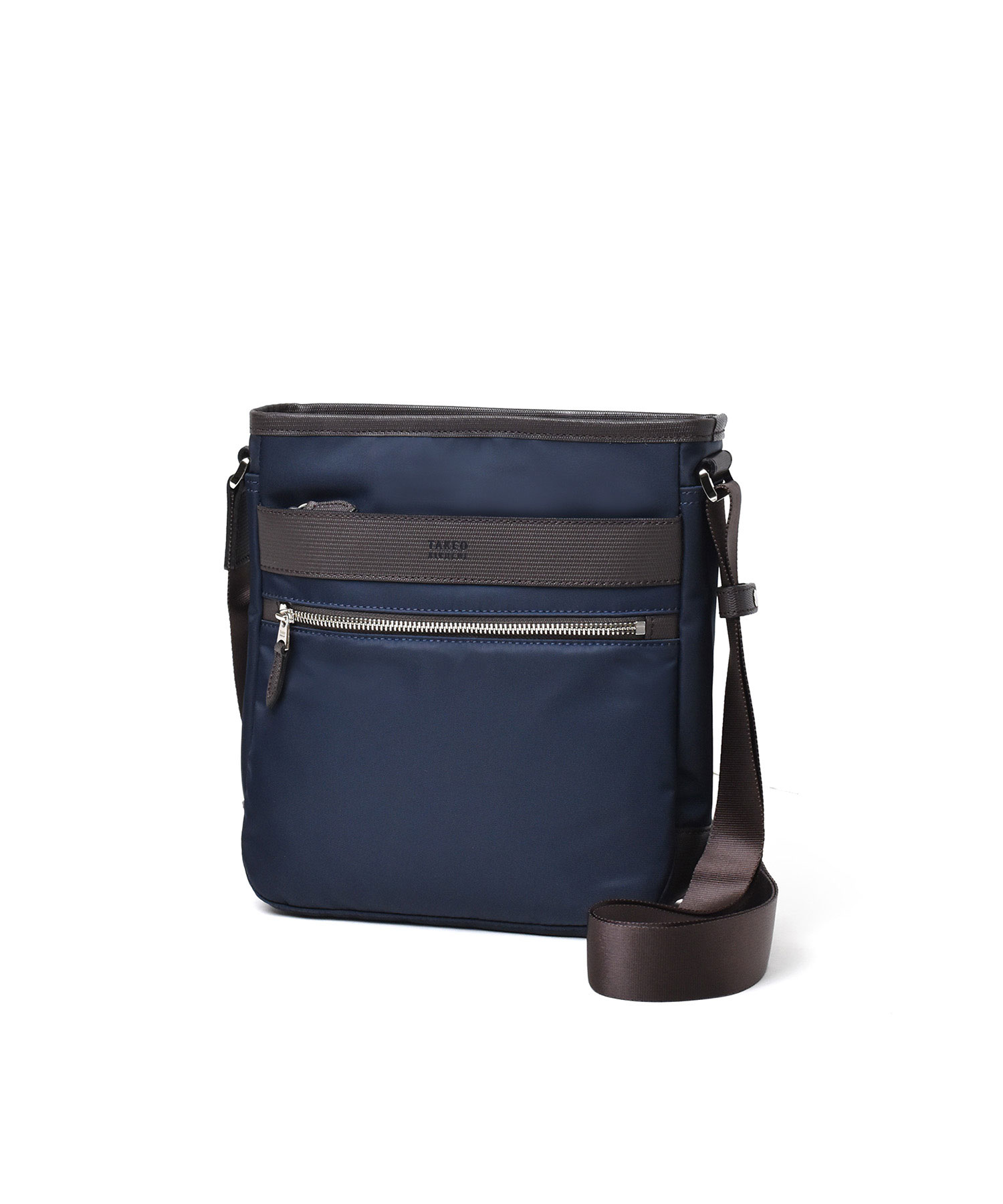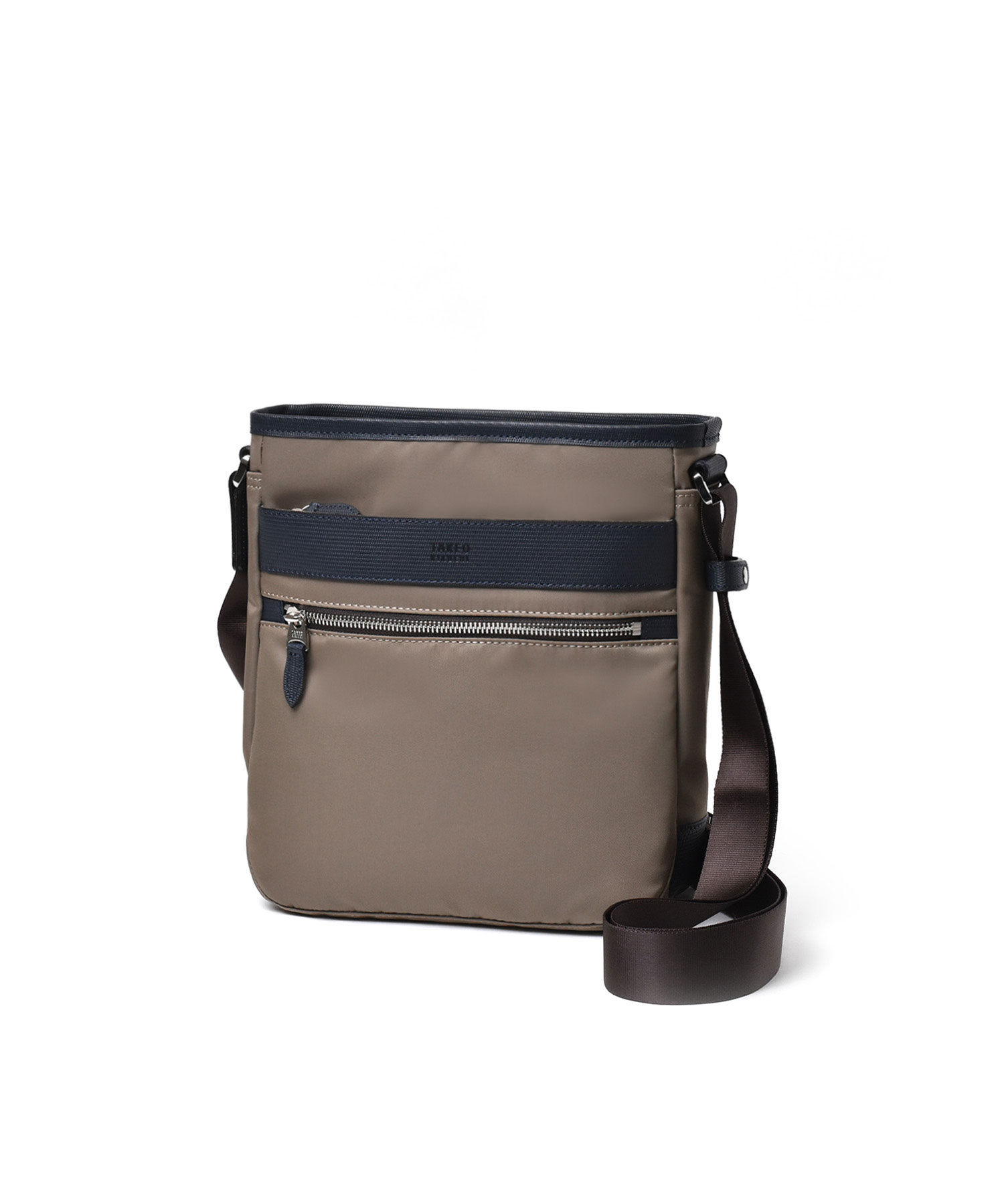 上品な光沢感と発色の良さが特徴のナイロンツイルを使用した、カジュアルショルダーバッグ。シンプルで使いやすいデザインの中に、付属革やメタルパーツでタケオキクチらしいこだわりを表現しています。