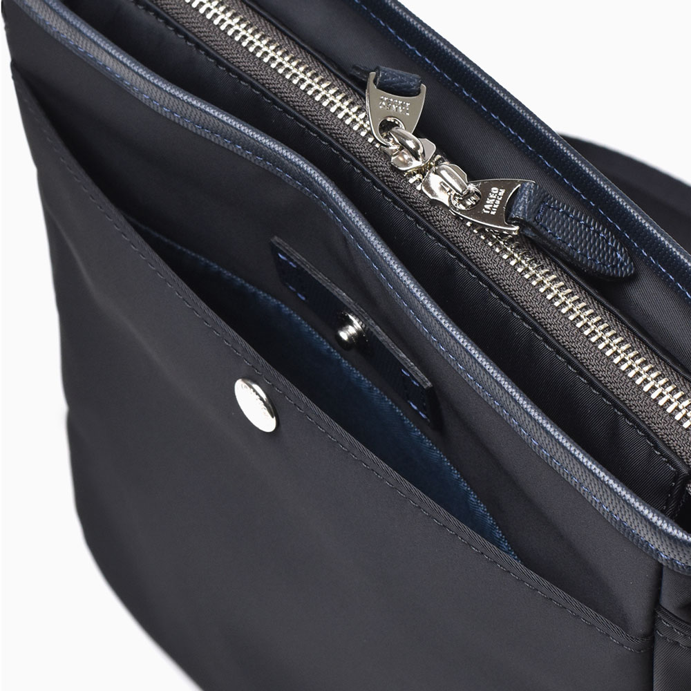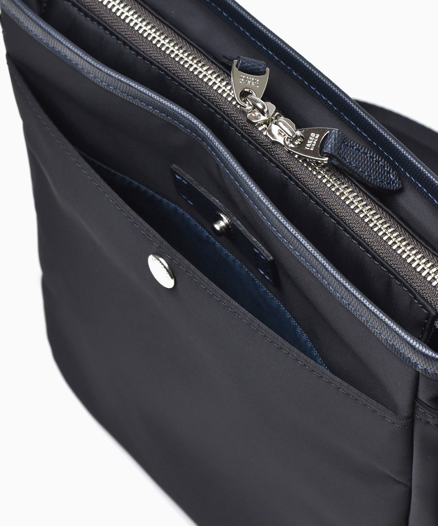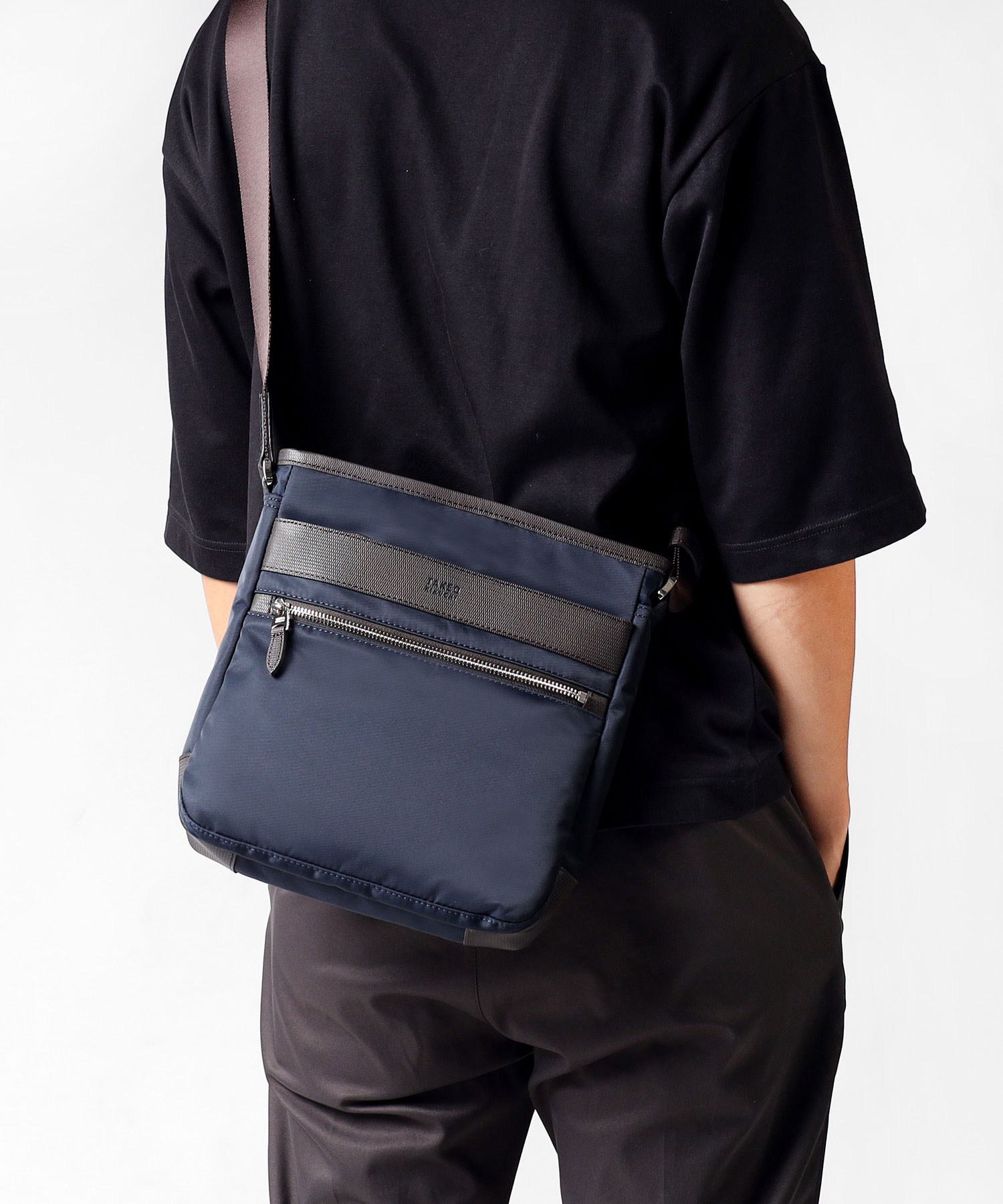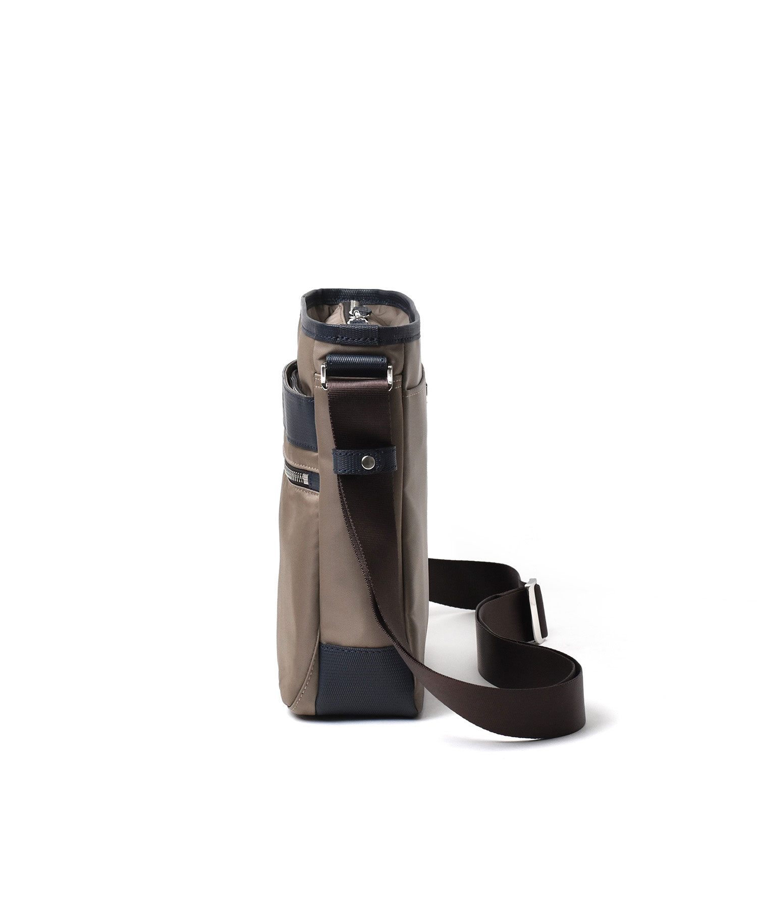上品な光沢感と発色の良さが特徴のナイロンツイルを使用した、カジュアルショルダーバッグ。シンプルで使いやすいデザインの中に、付属革やメタルパーツでタケオキクチらしいこだわりを表現しています。