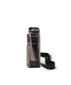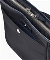 本体素材には、上品な光沢感と発色の良さが特徴のナイロンツイルを使用しています。付属革にはミニメッシュエンボスレザーを使用。マットブラック色の箔押しを施すことで、ブランドネームをさり気なく引き立てています。