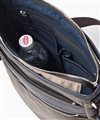 メインルームはA4ファイルが入るサイズで、ファスナーポケット、オープンポケットが2つ、ペットボトルホルダーがあります。前面にはファスナーポケットが2つあり、上の内側にはオープンポケットとペン差しが2つあります。背面にはホック付きポケットがあり、すぐに取り出したい物の収納に便利です。