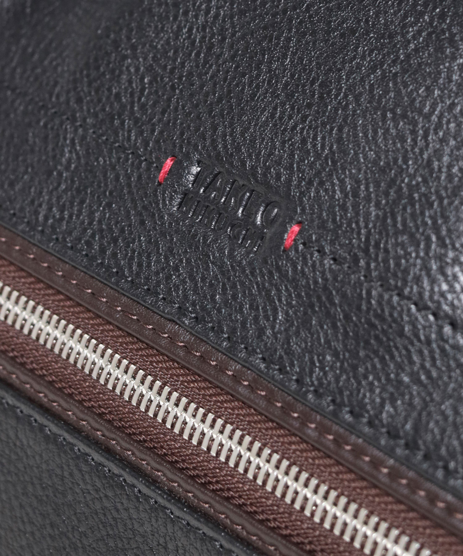 本体素材には、撥水加工を施したエンボスシュリンクシボの牛革を使用。傷が目立ちにくいのが特徴で、雨の日も安心してお使いいただけます。