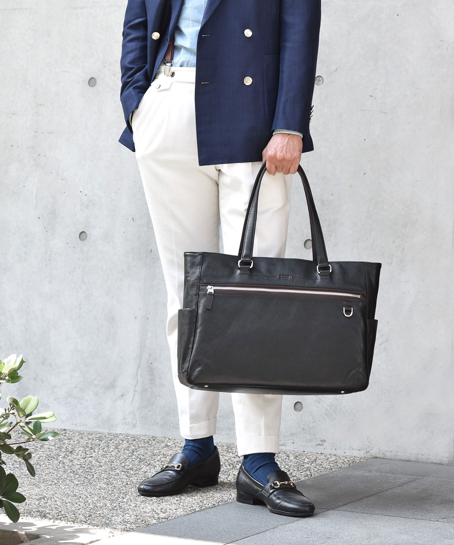 ON/OFF問わず使える ビジネスレザートートバッグ