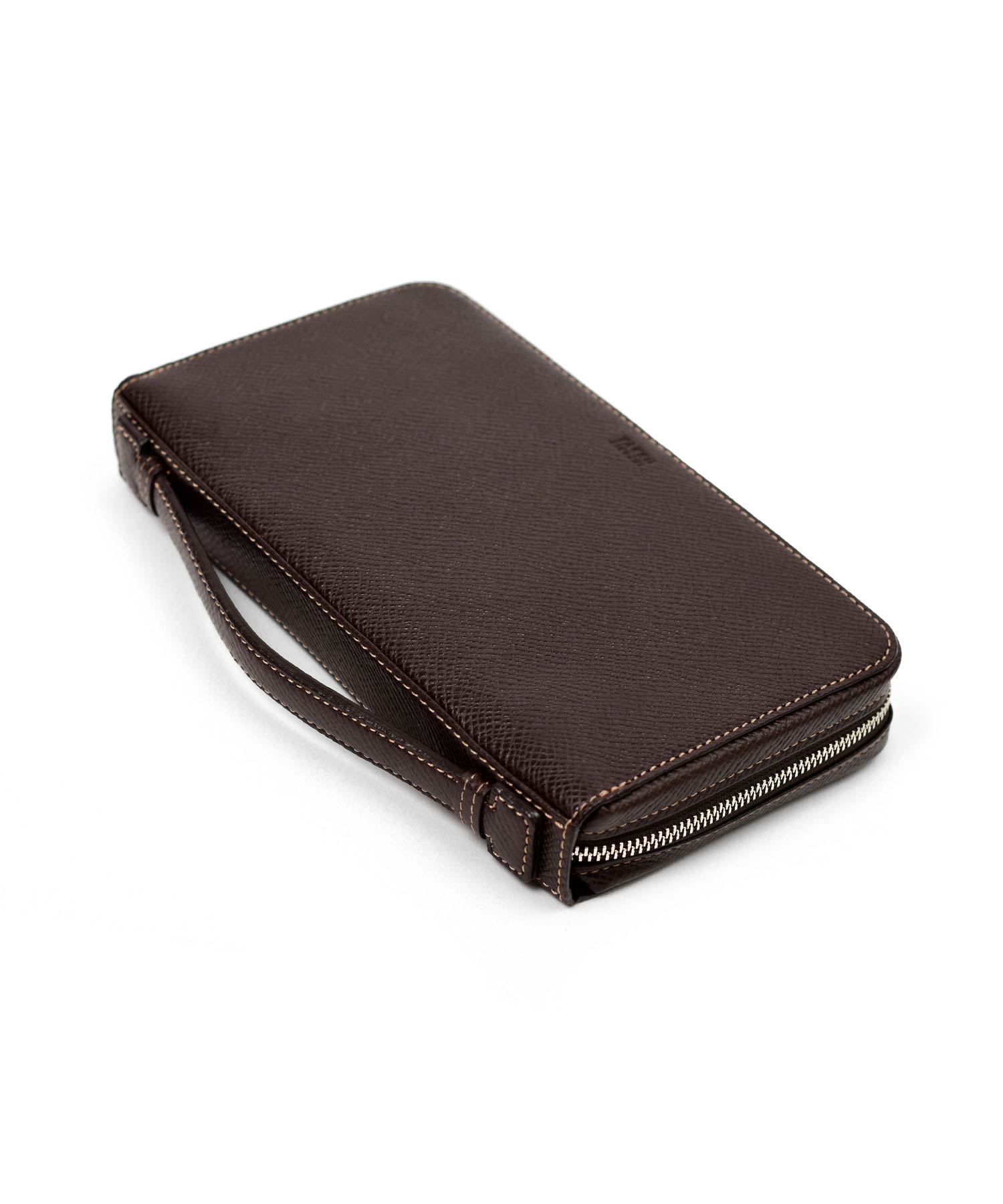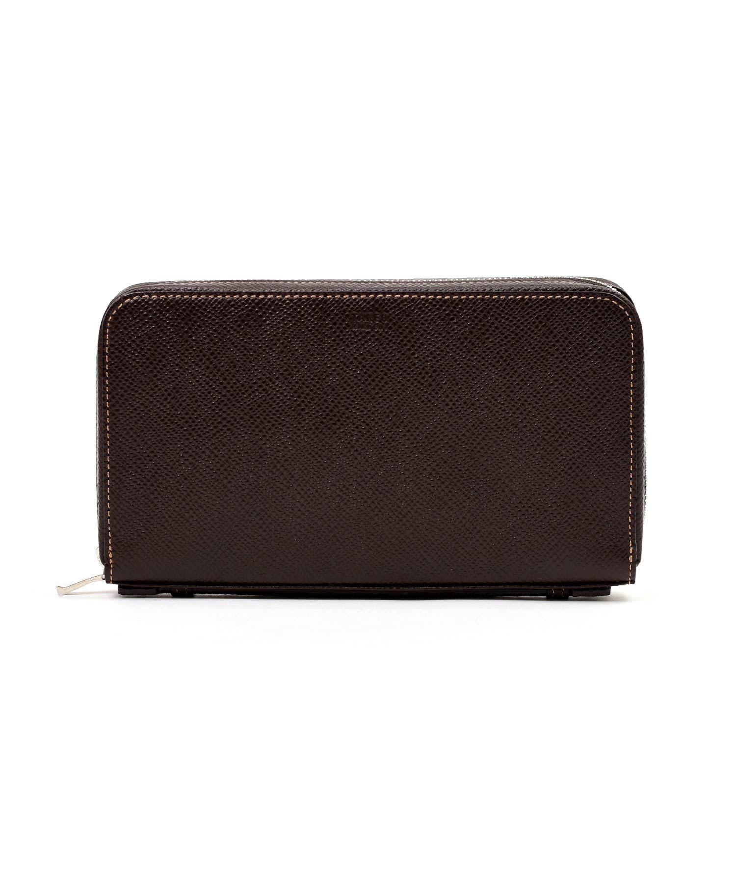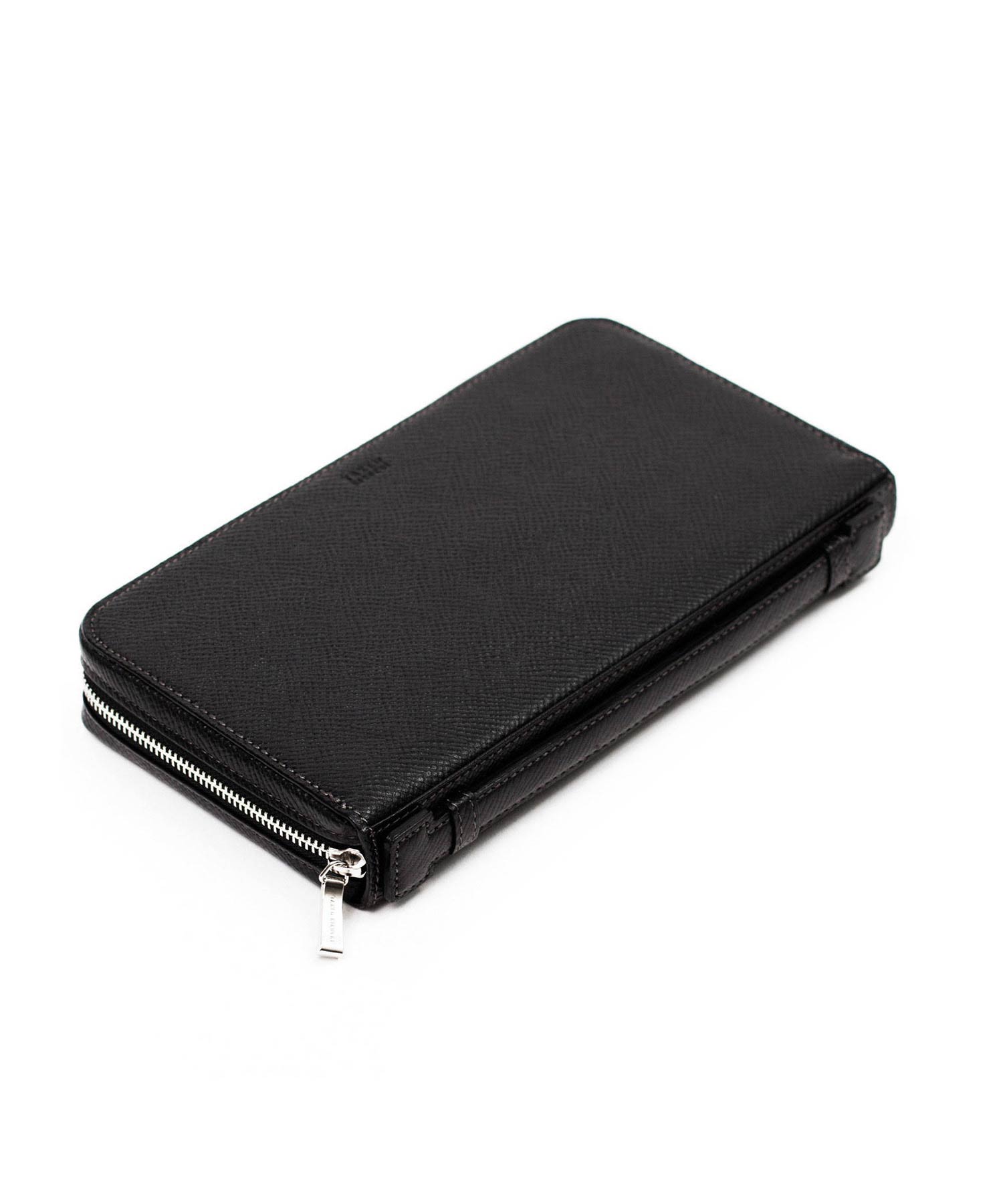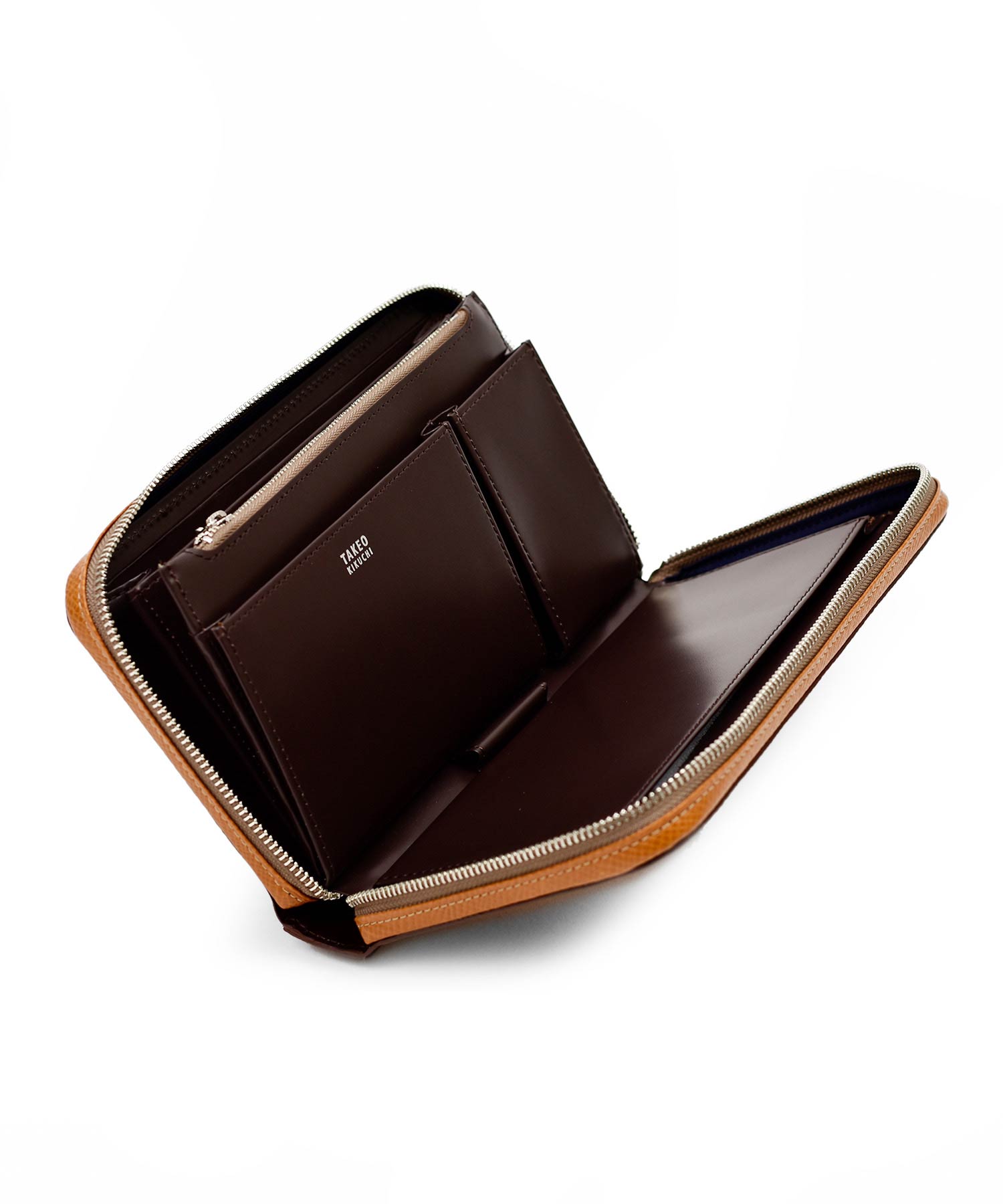 通常の財布としての機能に、スマートフォンや周辺機器、スマートキー等の収納機能をプラスしたTAKEO KIKUCHIのスマートセルバッグ。日々持ち歩く貴重品(カード、現金、スマホ、etc)を一つにまとめられる機能的なアイテムです。本体素材は、角シボのエンボス加工を施したレザーにアイロン加工を施し、ナチュラルなツヤ感を出しています。