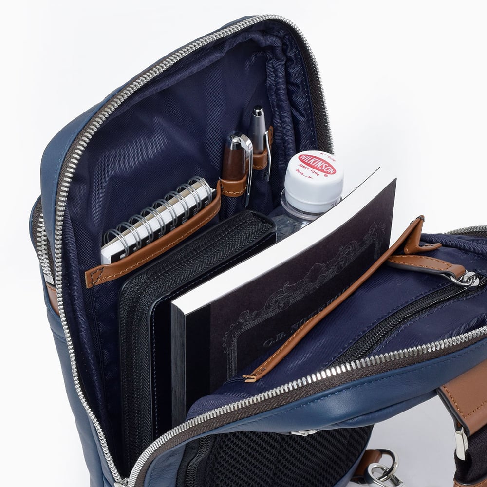 本体素材には「モンフリーニ社」のナチュラルソフトレザーを使用しています。肌触りがやわらかく、軽量に仕上げました。