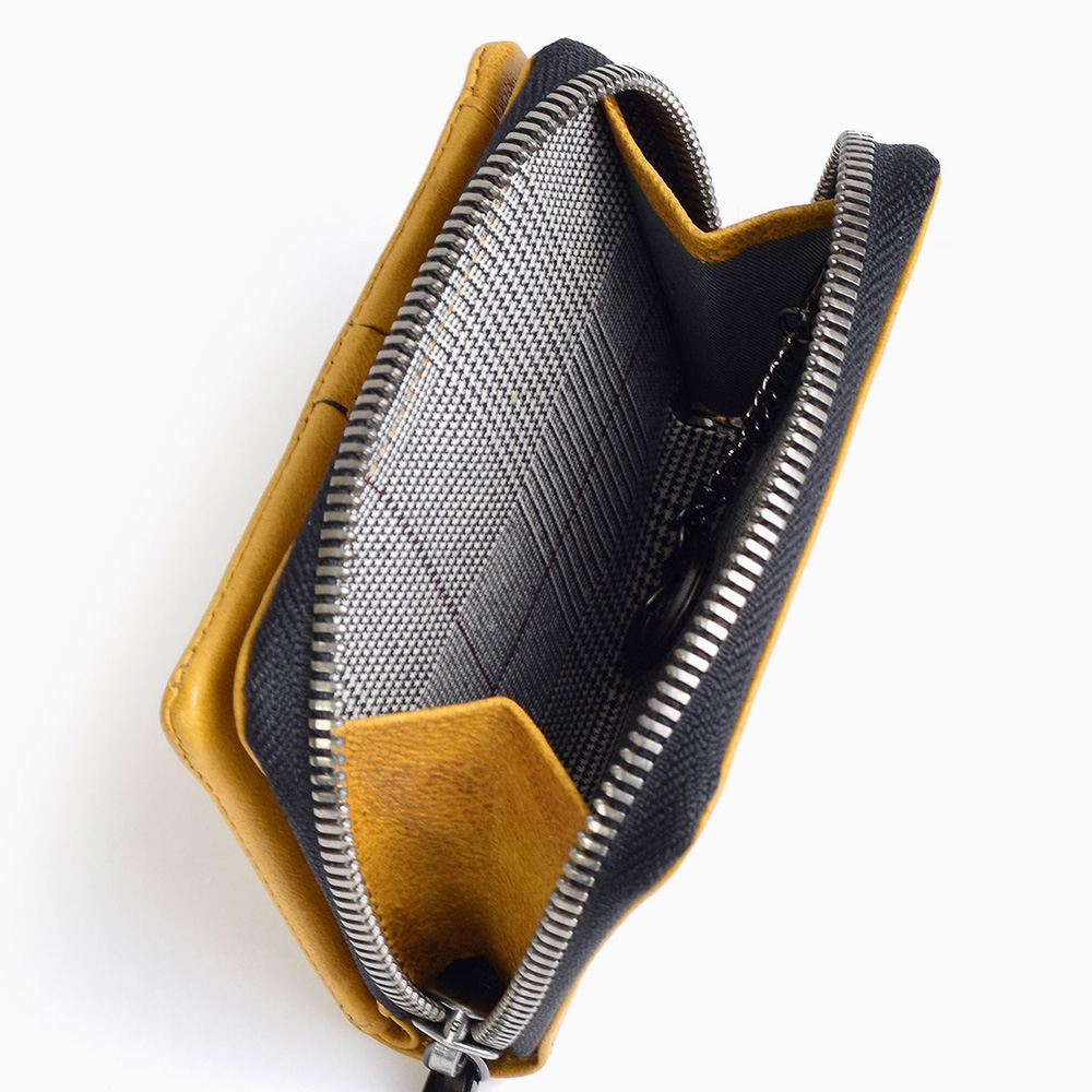 収納力抜群のマルチケースは、カードポケットが4つ、ファスナー小銭入れが1つ、小銭入れ内にキーチェーンが1つあります。窓付きのカードポケットもあり、身分証明書などの収納にも便利です。鍵、カード類、ちょっとしたお金をこれ1つに入れて持ち歩け、キャッシュレス社会にも対応したマルチケースです。