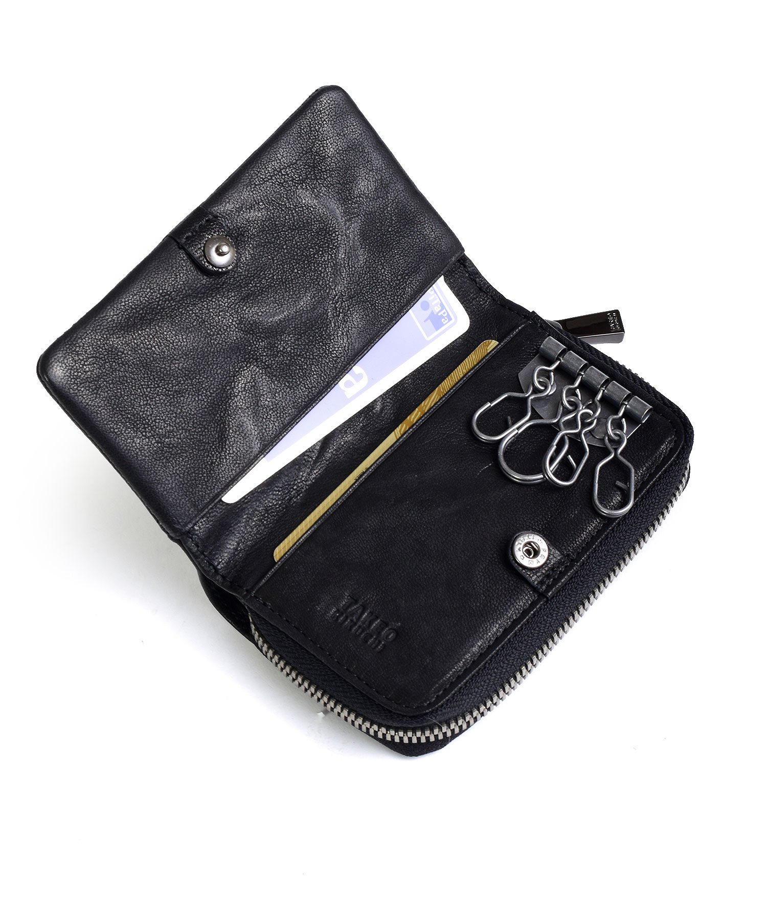 ソフトでふっくらとした質感で、革を楽しめるTAKEO KIKUCHIのキーケース。カードや小銭も持ち歩けるマルチケースです。イタリア産モントーネ(雄羊革)を使用しており、ワイルドなシボ感とウォッシュ加工によりカジュアルに仕上げています。使い込む程に変化を楽しめる大人カジュアルウォレットです。