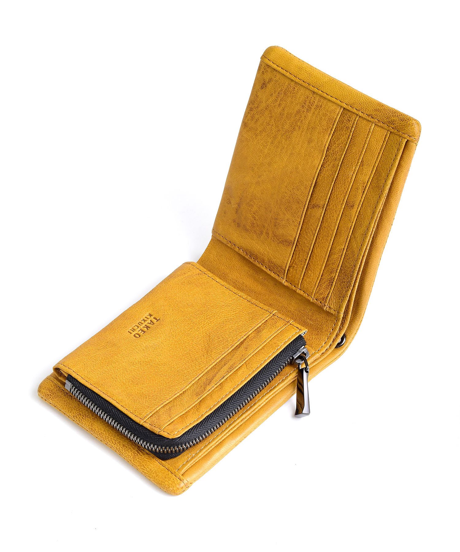 ソフトでふっくらとした質感で、革を楽しめるTAKEO KIKUCHIの二つ折り財布。イタリア産モントーネ(雄羊革)を使用しており、ワイルドなシボ感とウォッシュ加工によりカジュアルに仕上げています。使い込む程に変化を楽しめる大人カジュアルウォレットです。