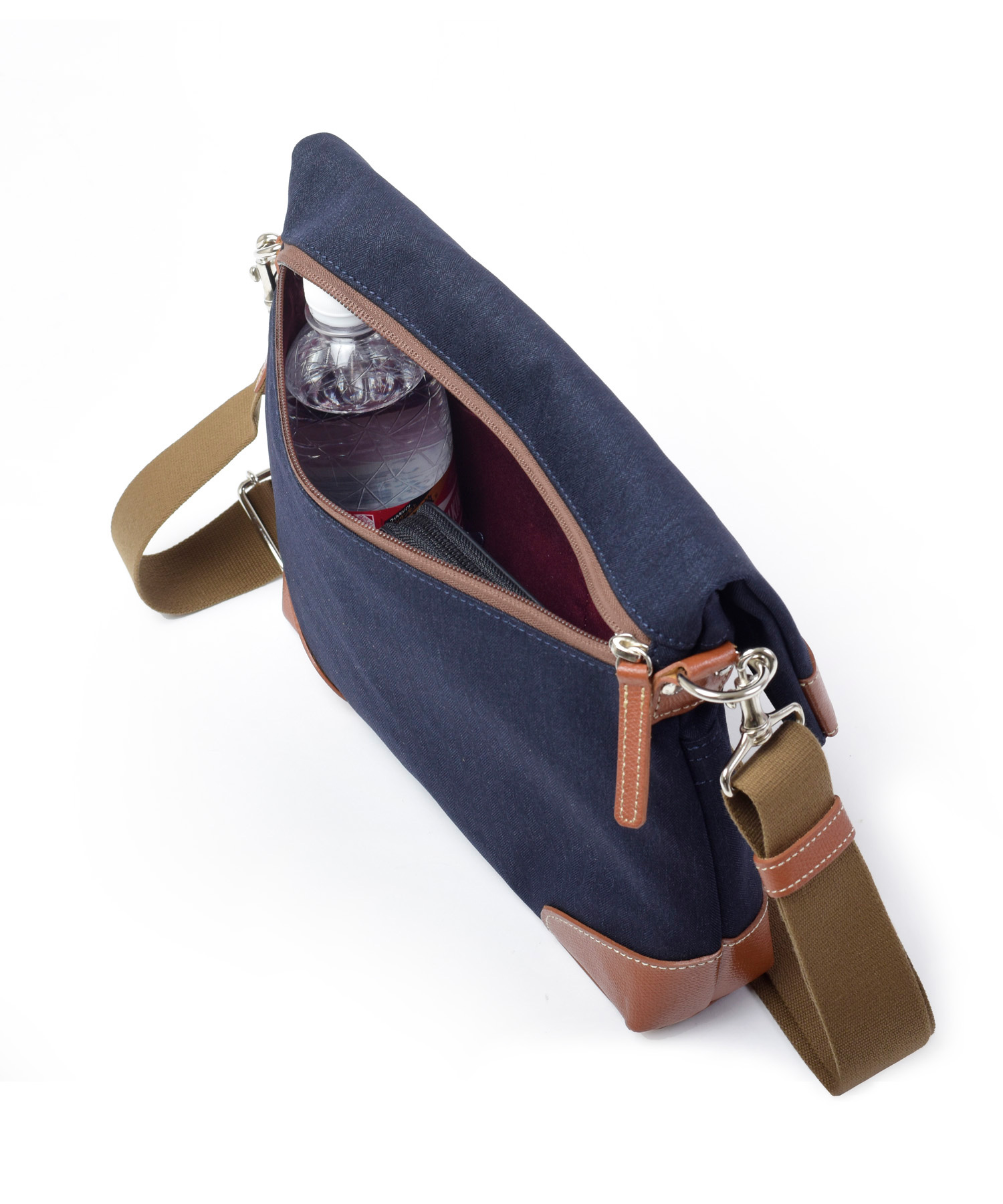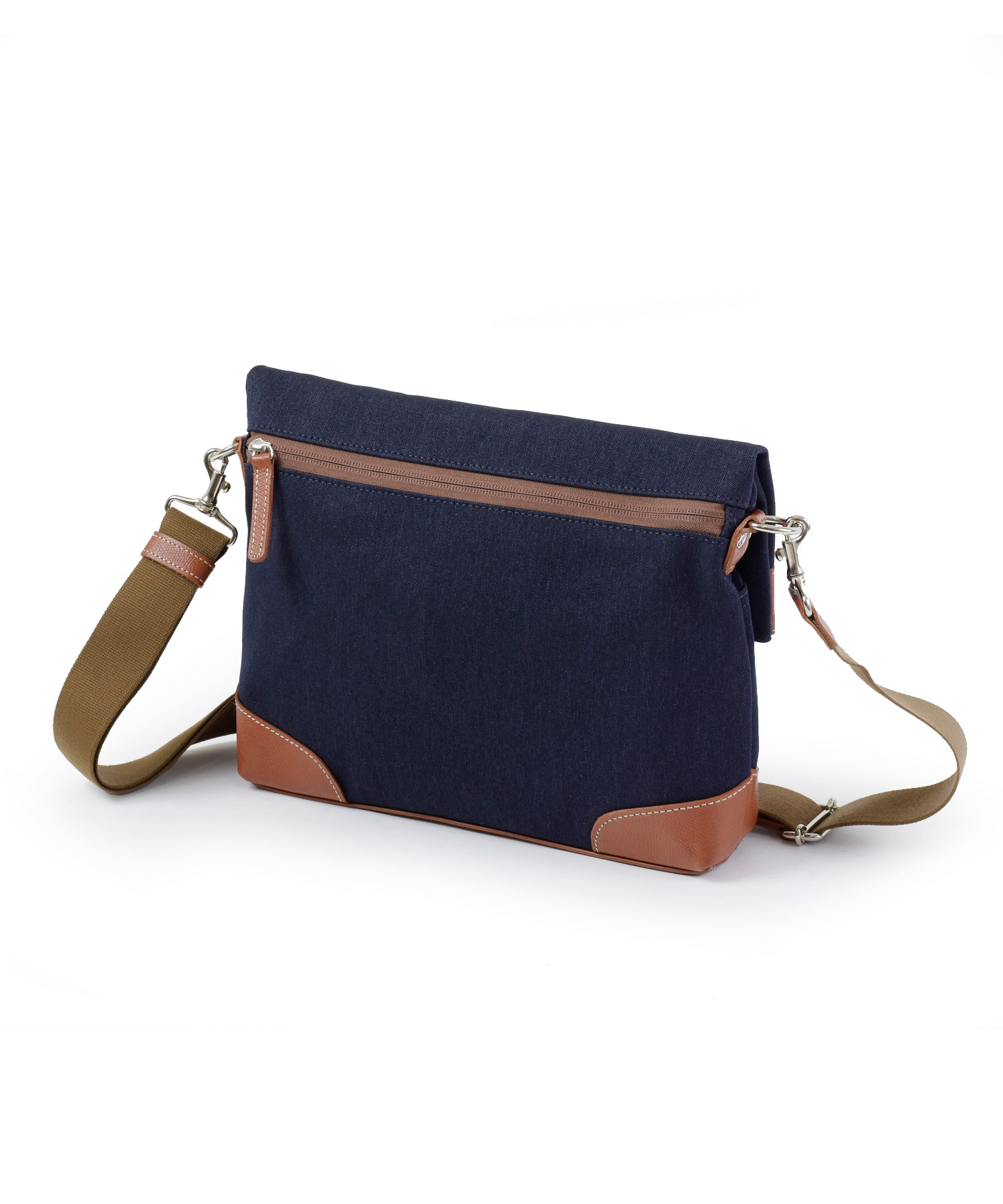 かぶせファスナーからも、背面ファスナーからもメインルームにアクセスが可能。カバンを伸ばしてファスナーを開けなくても、背面からスムーズにモノを取り出すことができます。