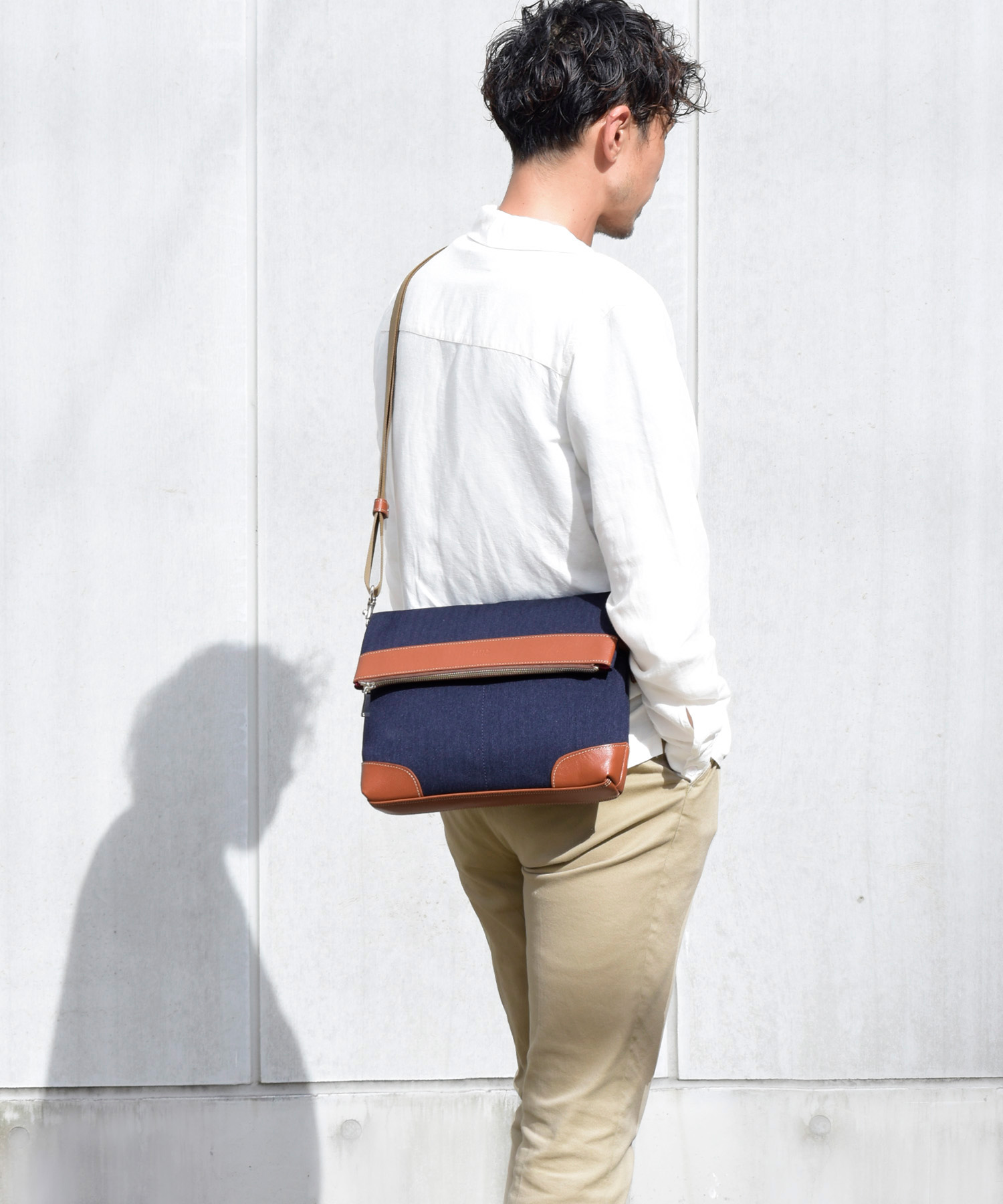 大人な雰囲気の杢調ヘリンボーン生地を使用した、TAKEO KIKUCHIのカジュアルショルダーバッグ。タブレット・スマホが入れられるクッションつきポケットの搭載や、かぶせ部分を開けなくてもメインルームに繋がる背面ファスナーなど、機能面も高めた、安心の日本製バッグです。 本体素材には汚れが付きにくく、水が中に染み込むことがなく、耐久性もある鞄用素材を使用しました。実際にTAKEO KIKUCHIのアパレルでも同様の生地が使用され、アパレルブランドらしい布帛生地を使用したデザイン性と、多機能素材を併せ持ちます。